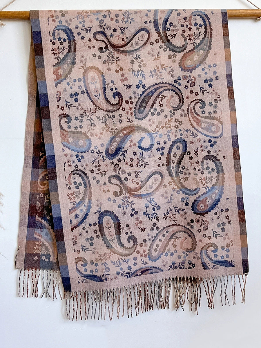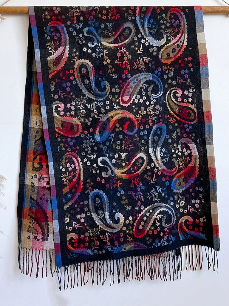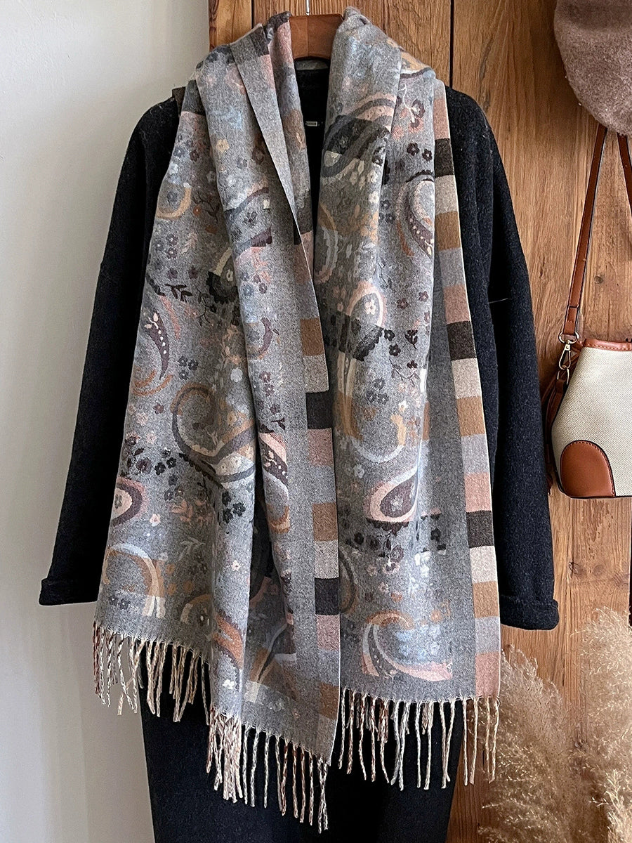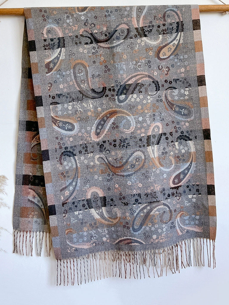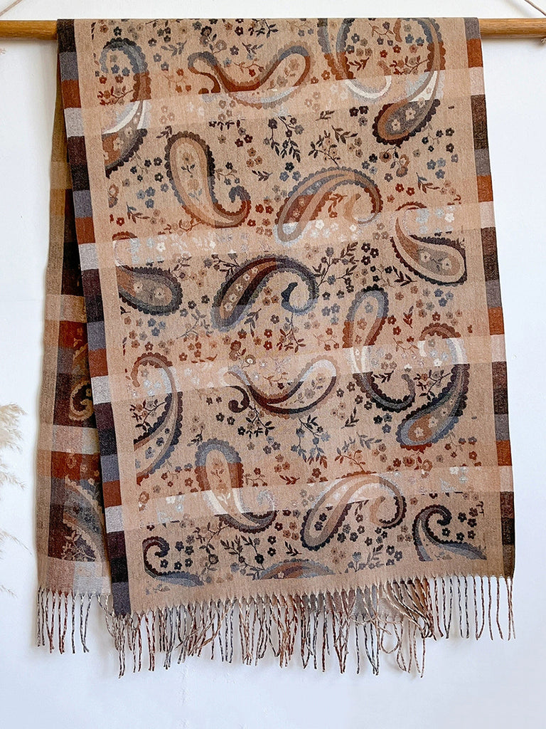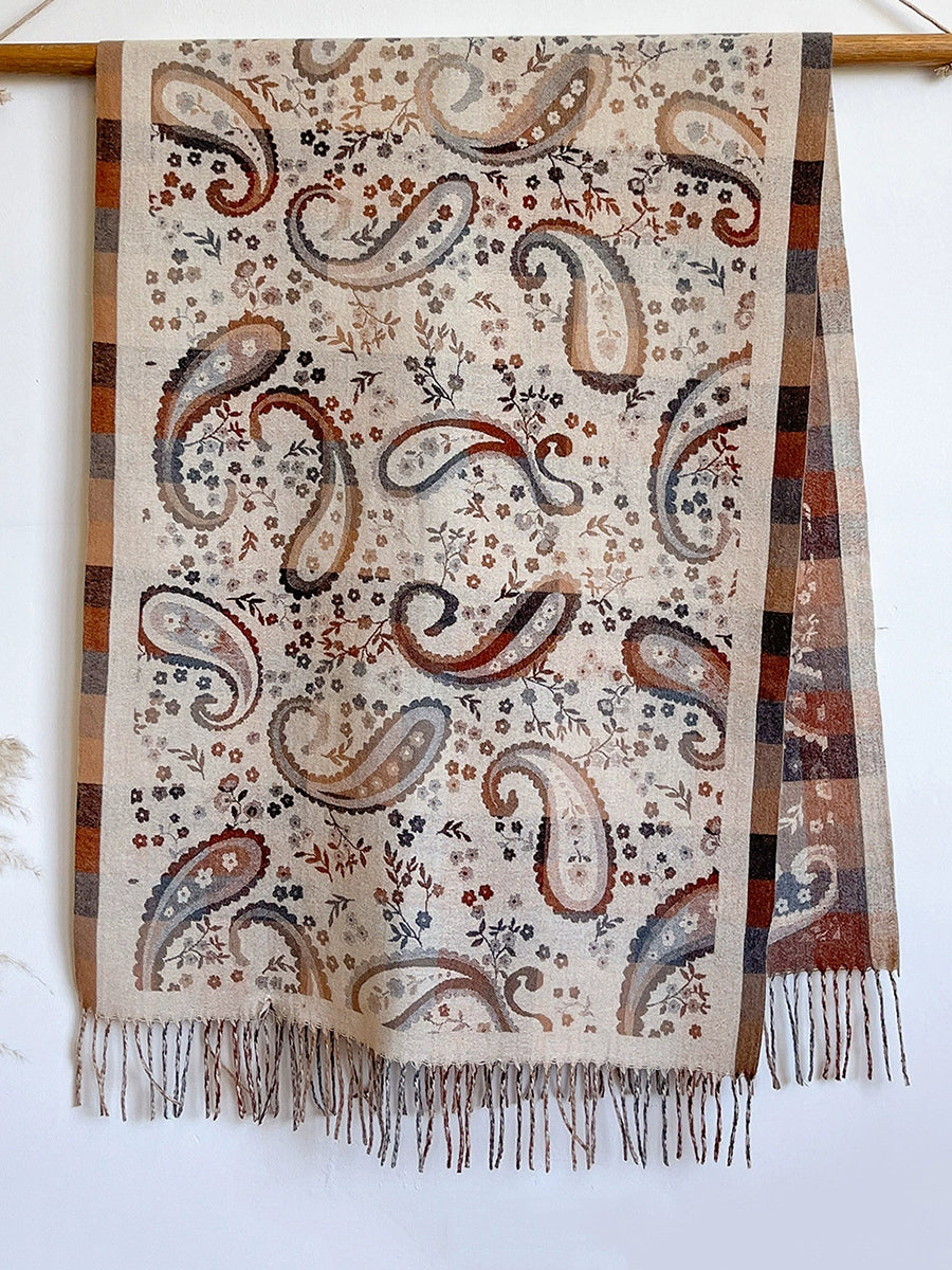 Winter Ethnic Plaid Tassel Shawl Scarf