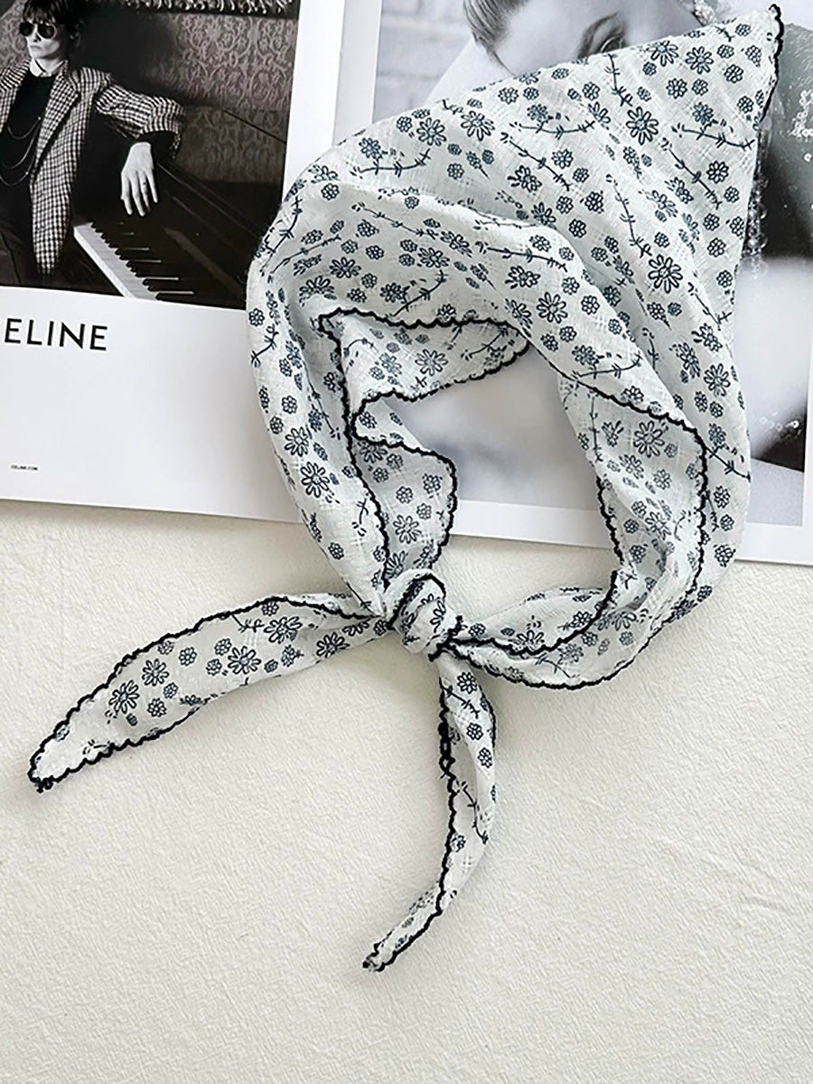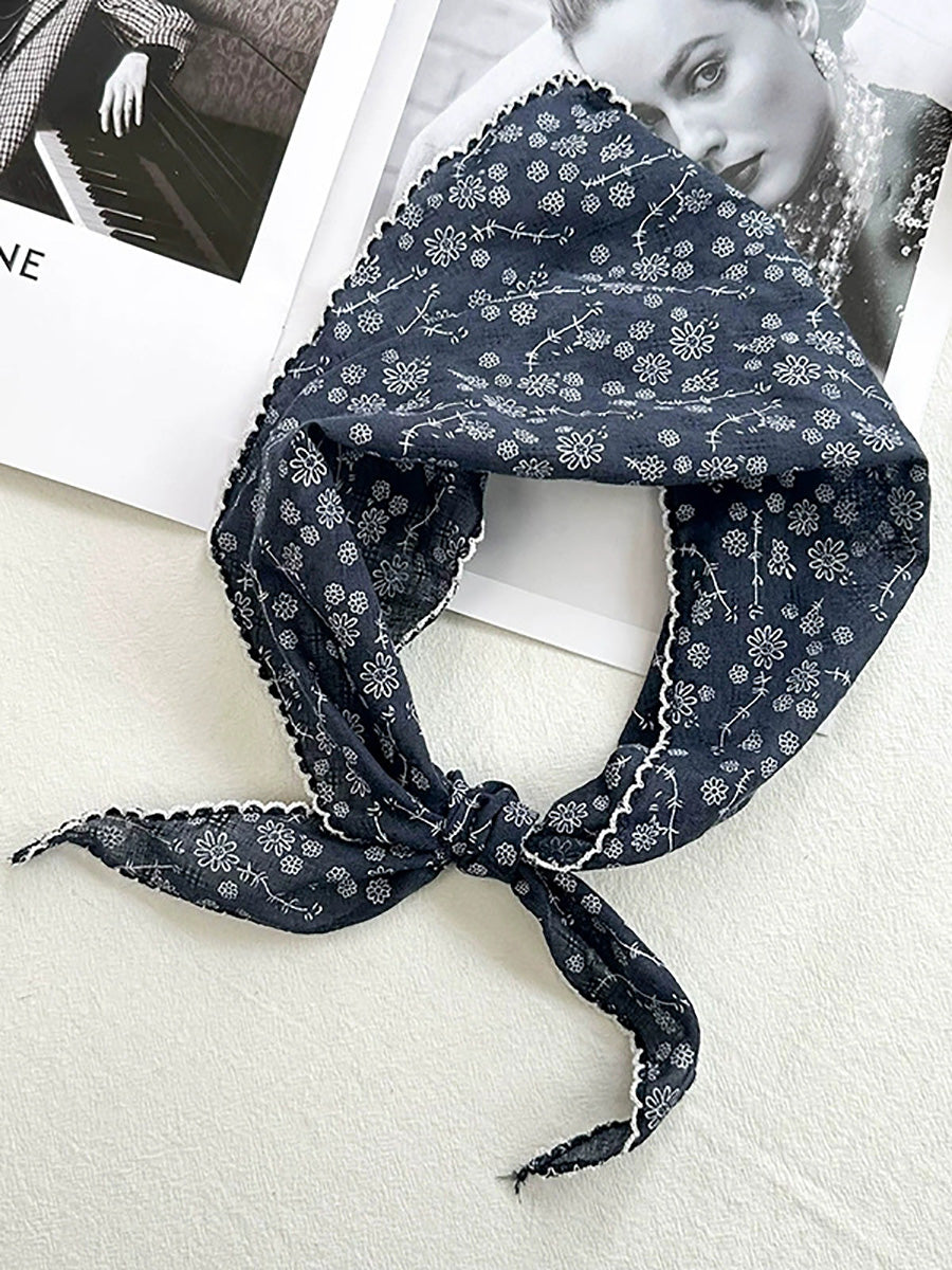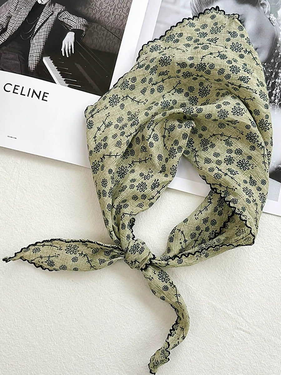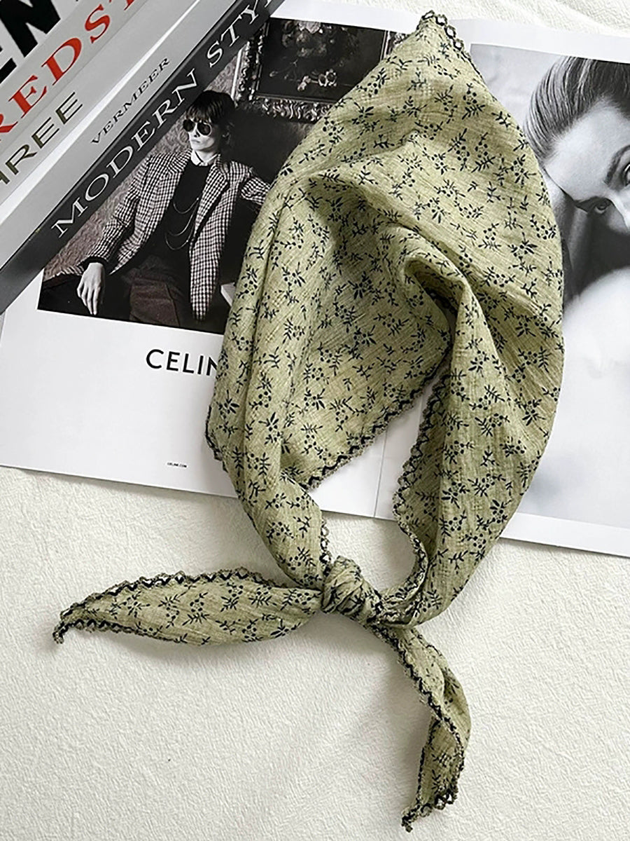 Women Artsy Floral Triangle Cotton Scarf