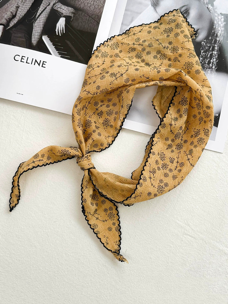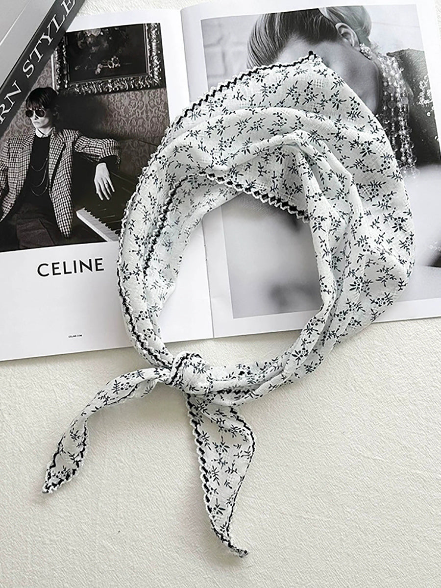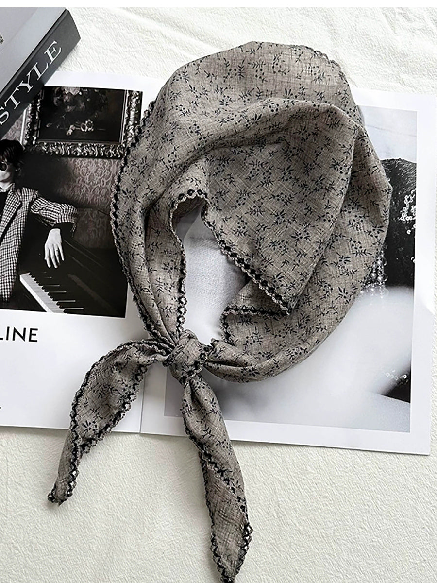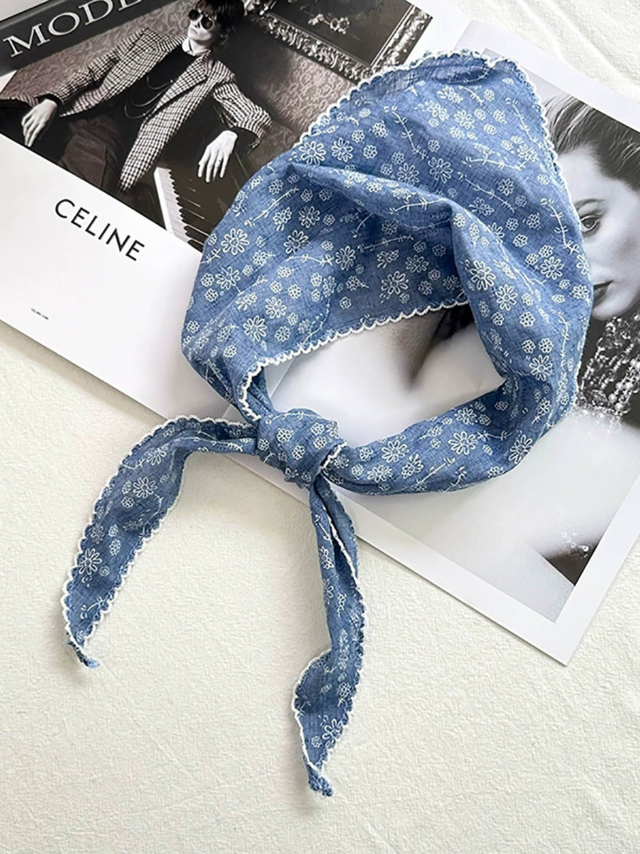 Women Artsy Floral Triangle Cotton Scarf