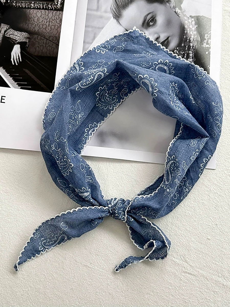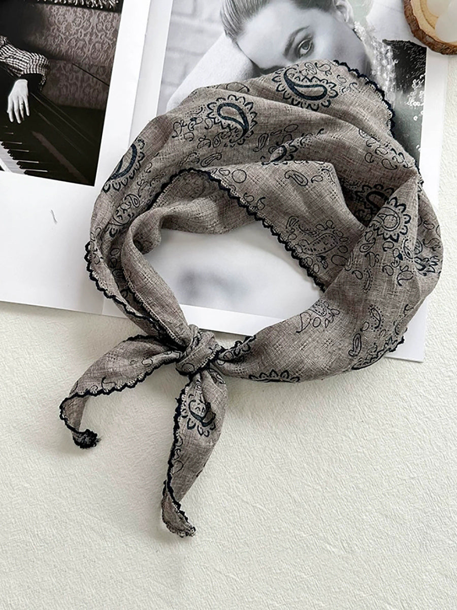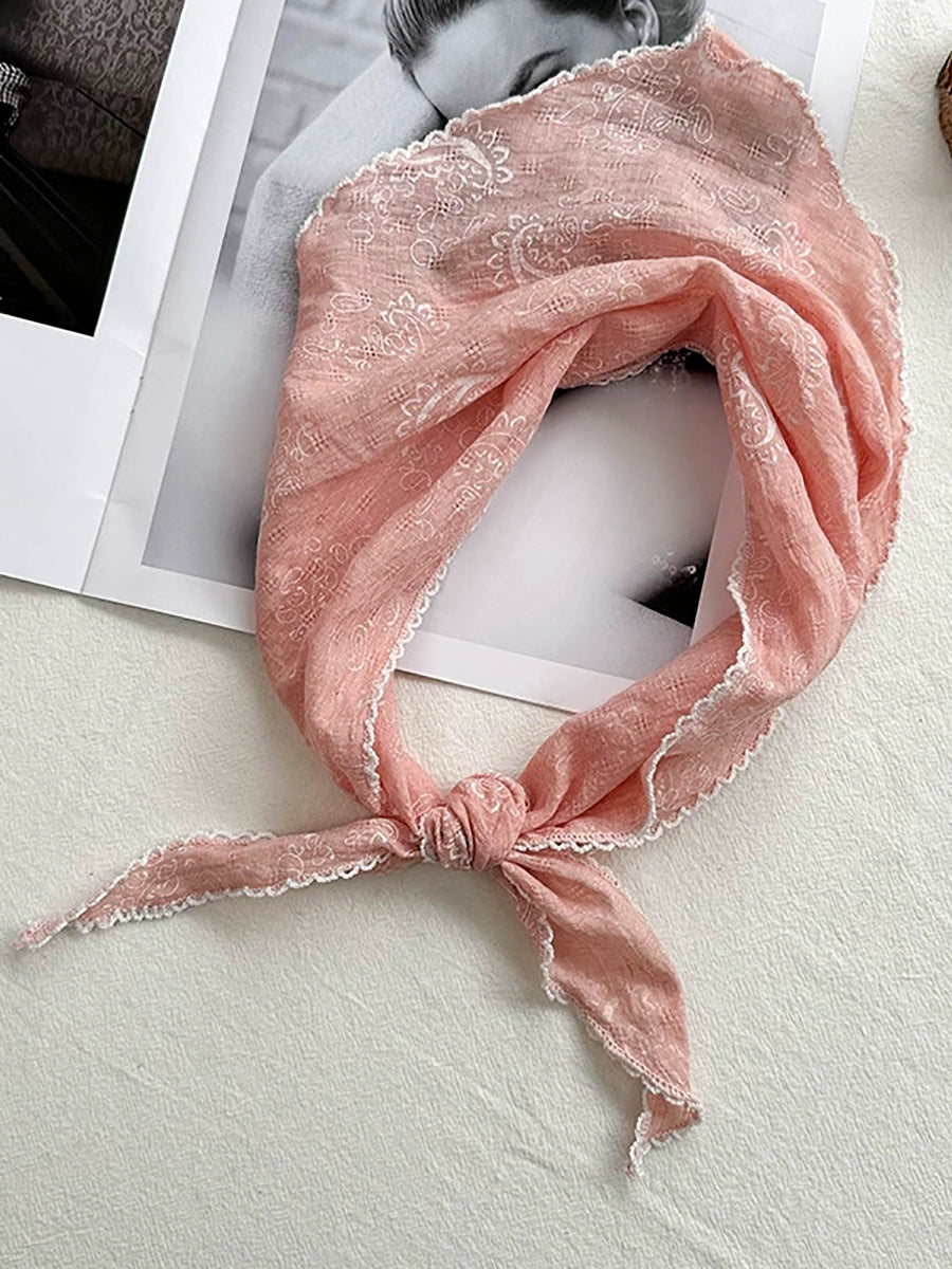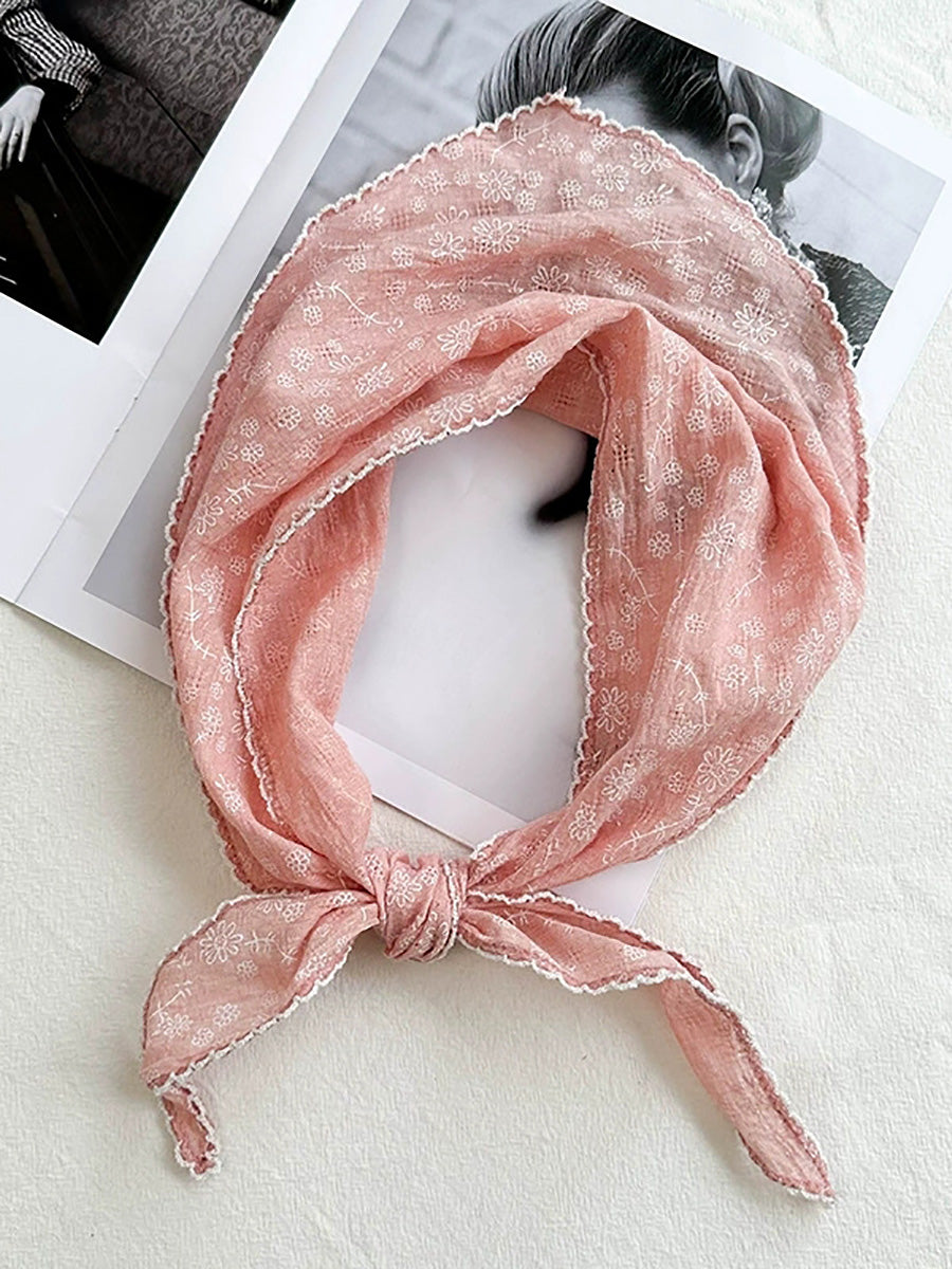 Women Artsy Floral Triangle Cotton Scarf