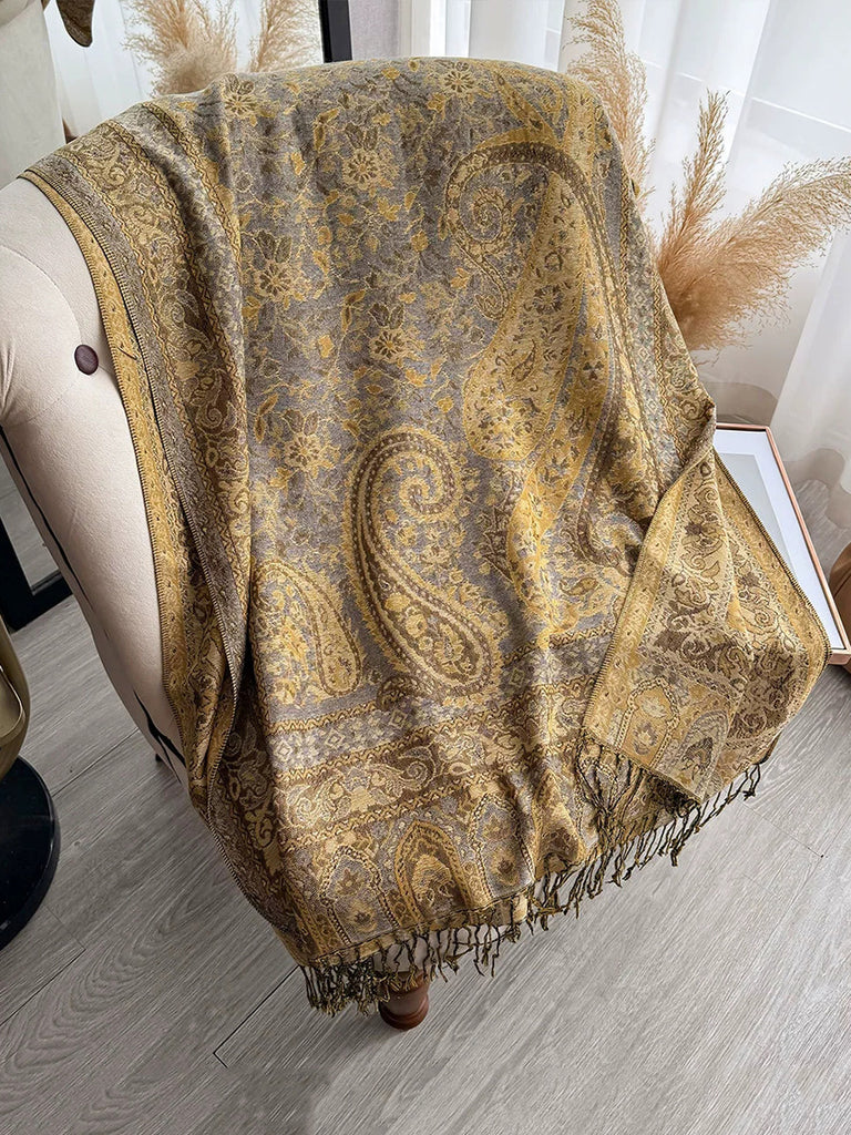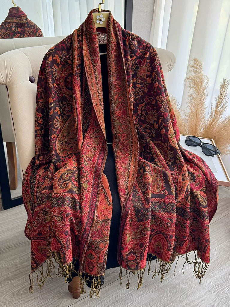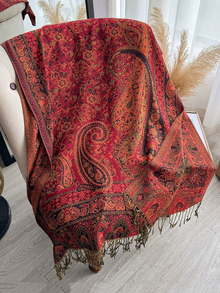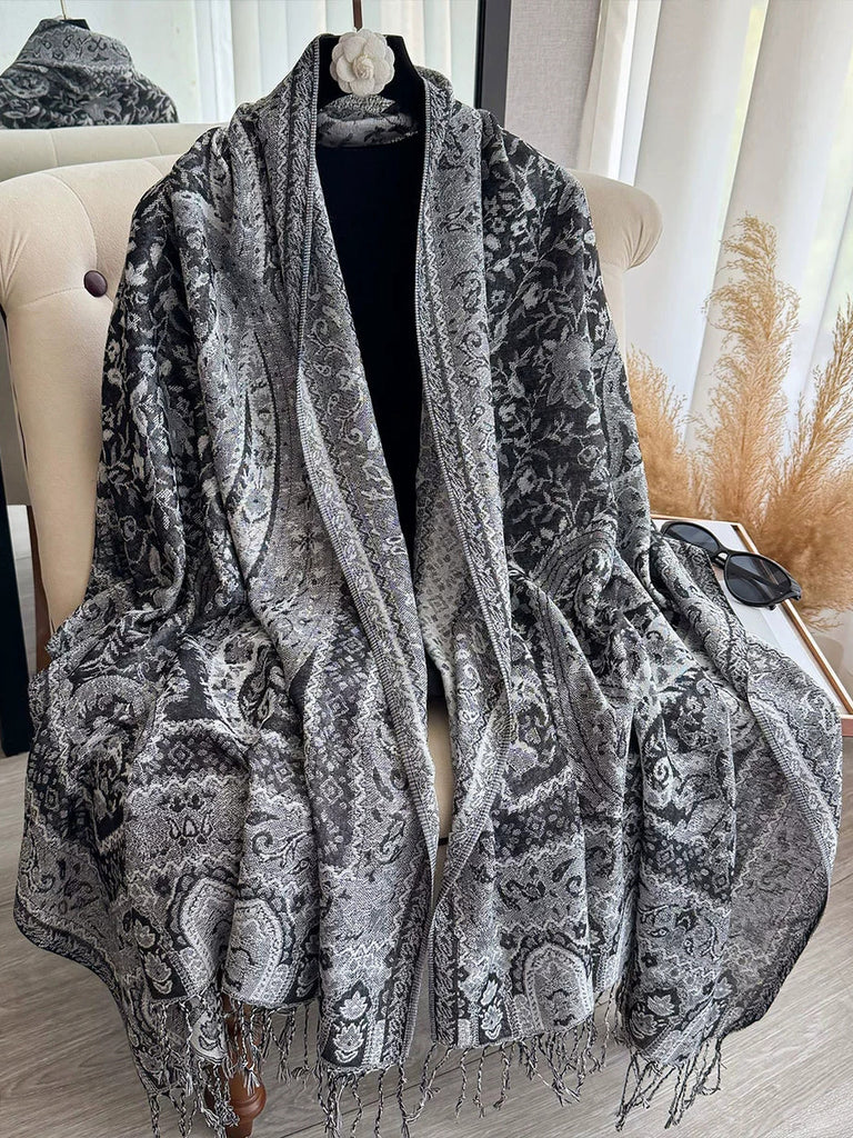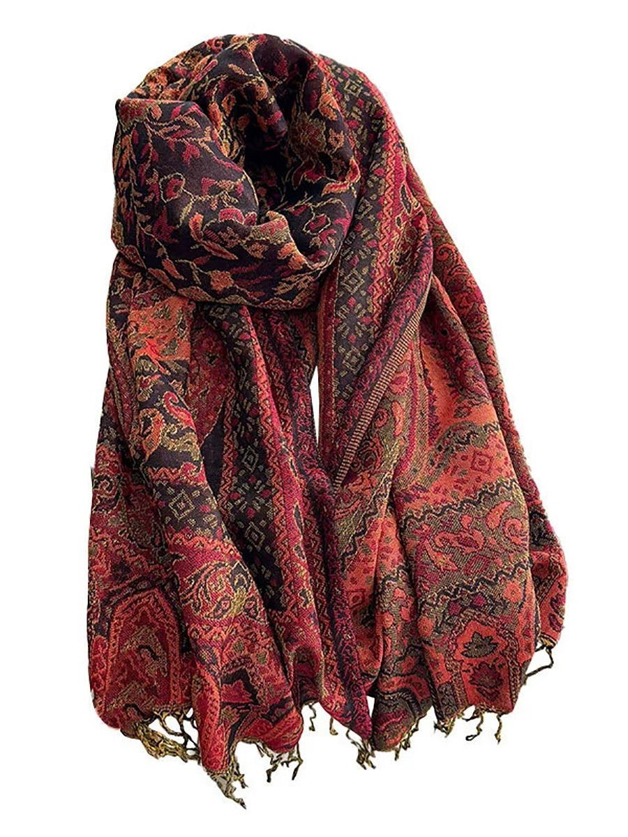 Women Ethnic Flower Tassel Shawl Scarf