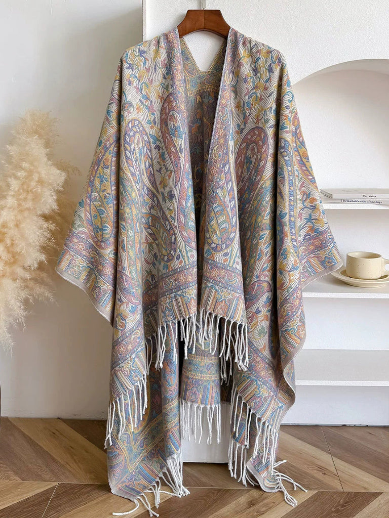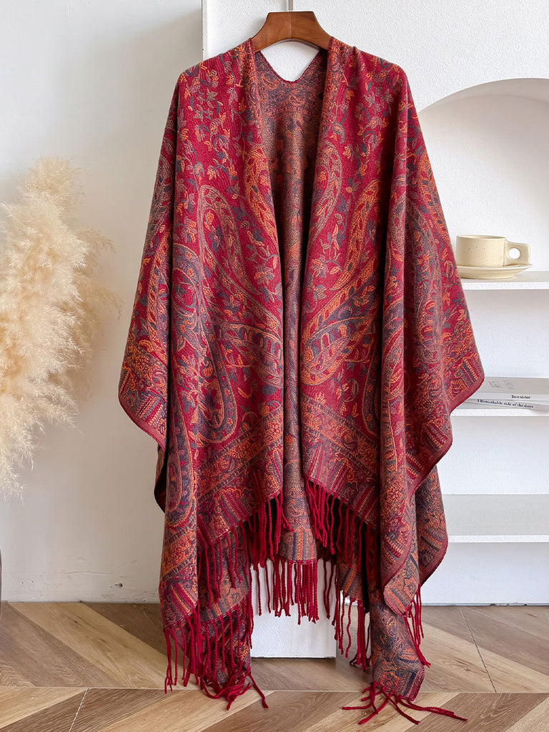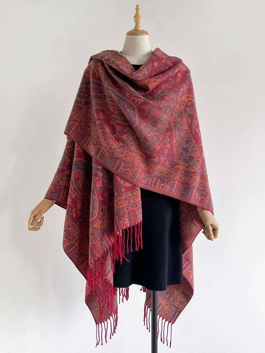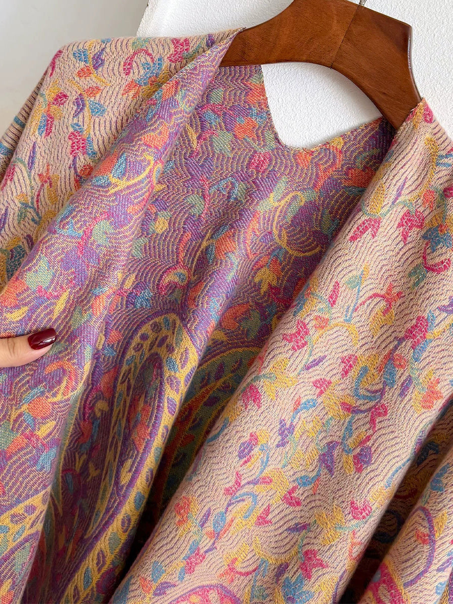 Women Winter Ethnic Flower Tassel Shawl Scarf