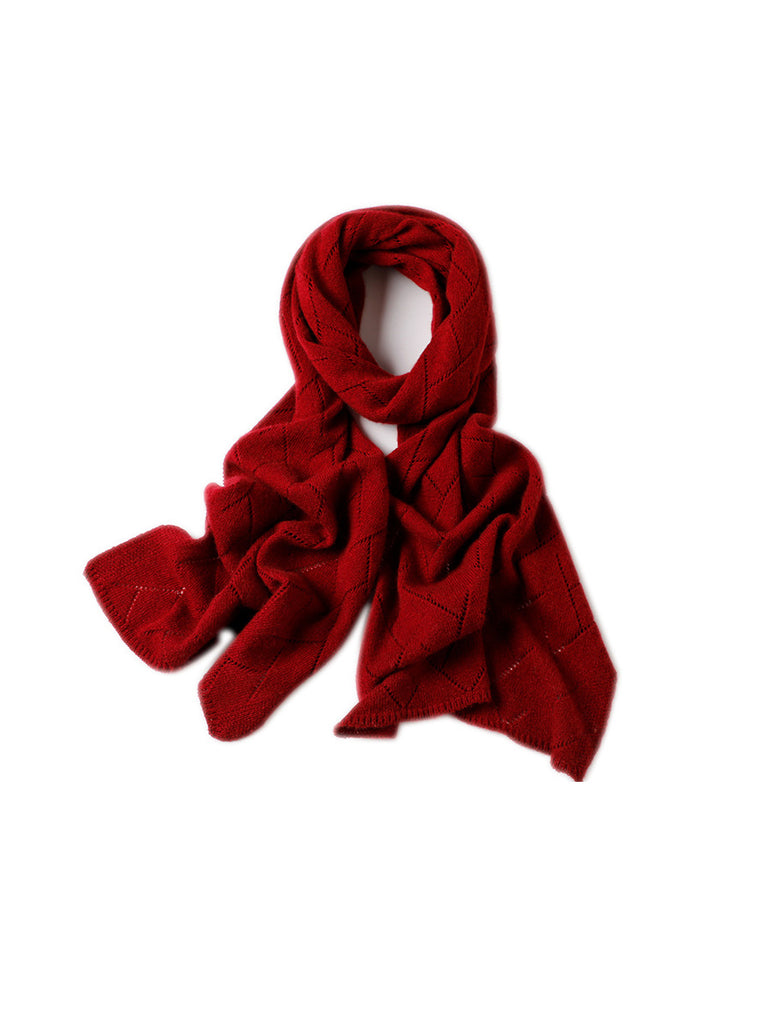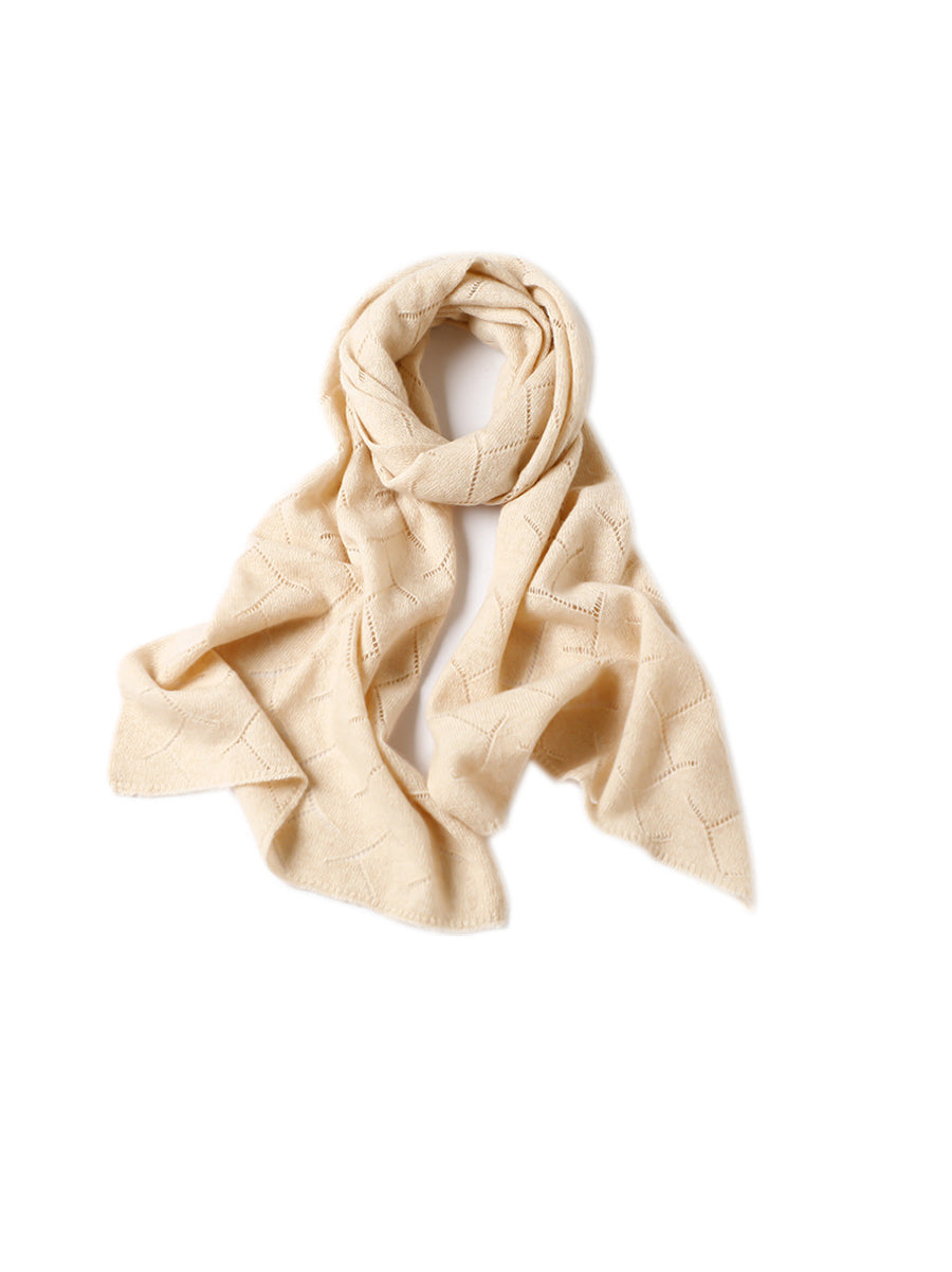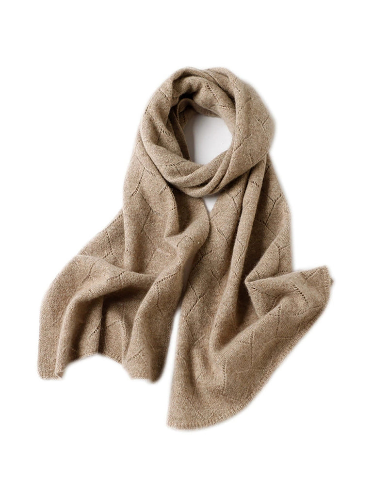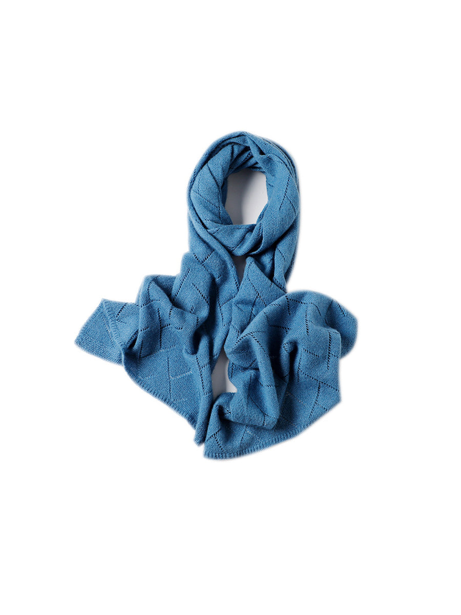 Women Winter Pure Color Hollow Out Knitted Shawl Scarf