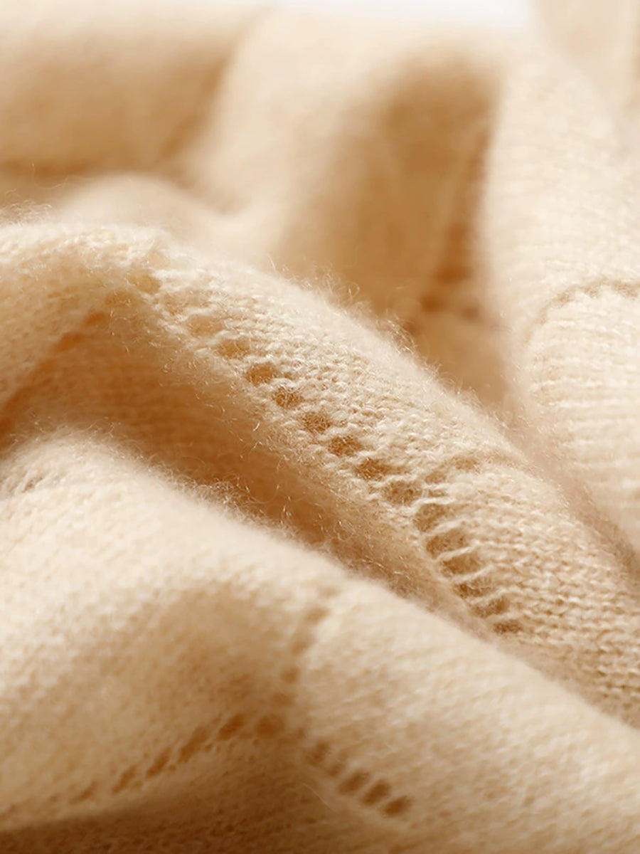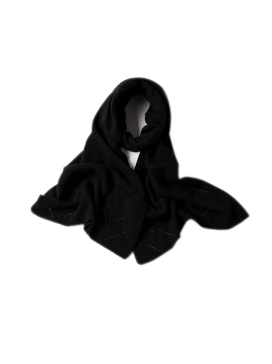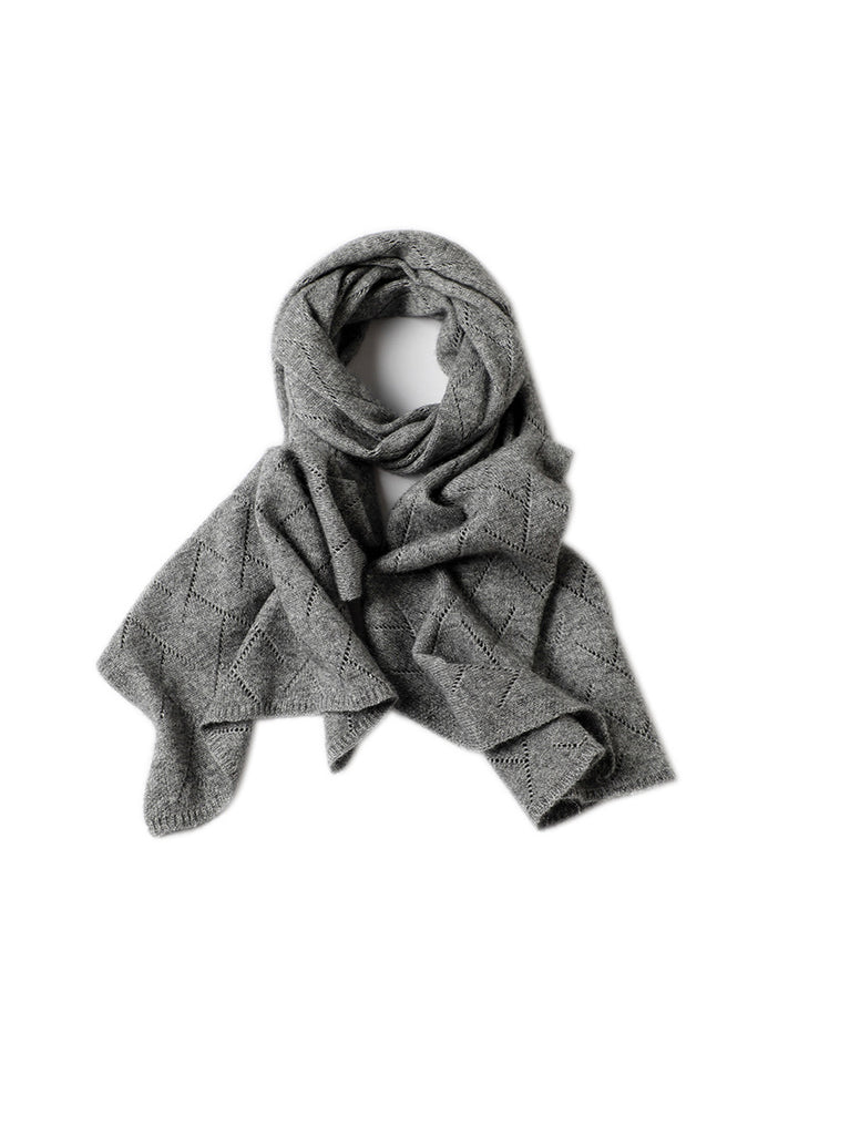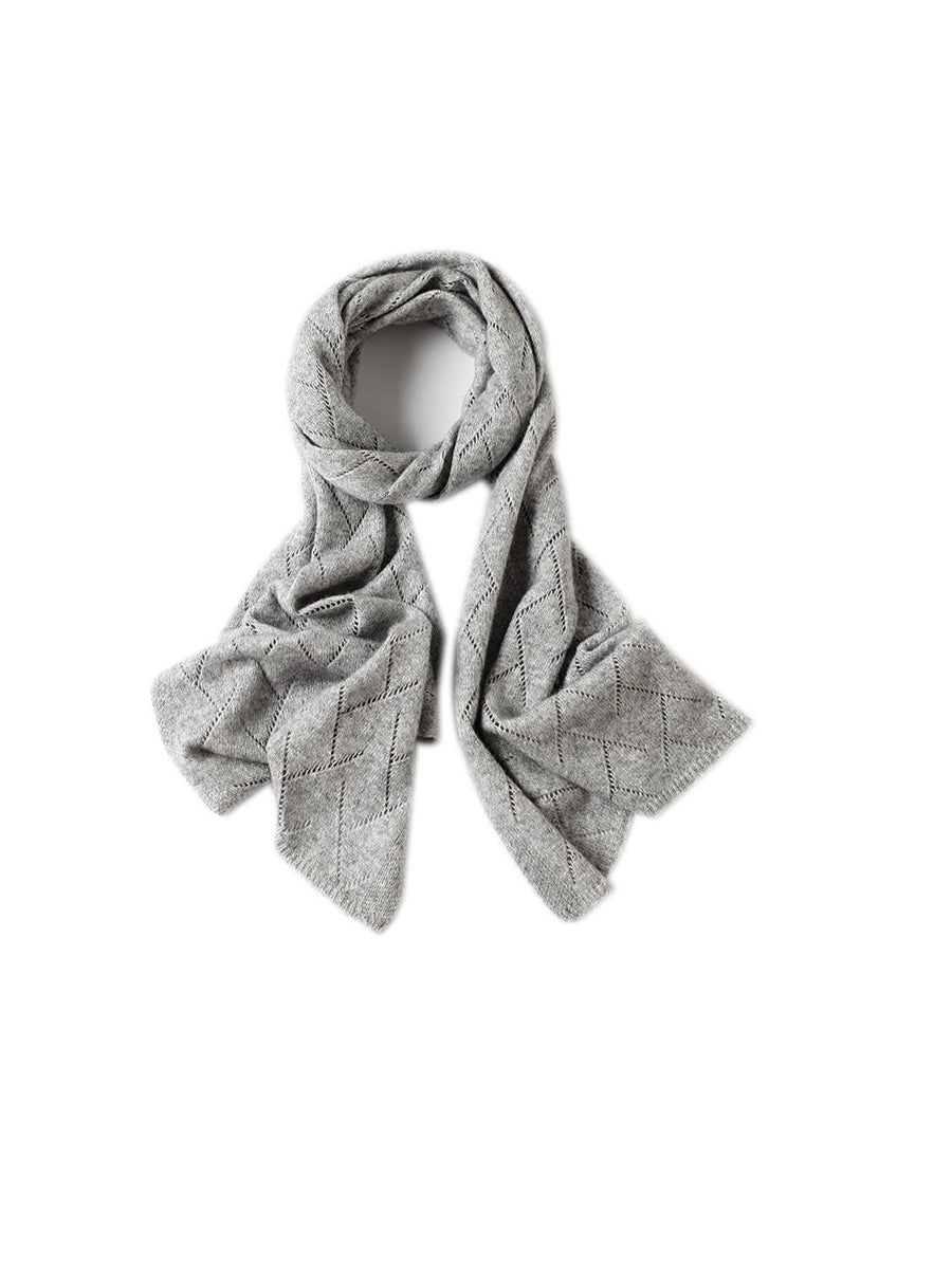 Women Winter Pure Color Hollow Out Knitted Shawl Scarf