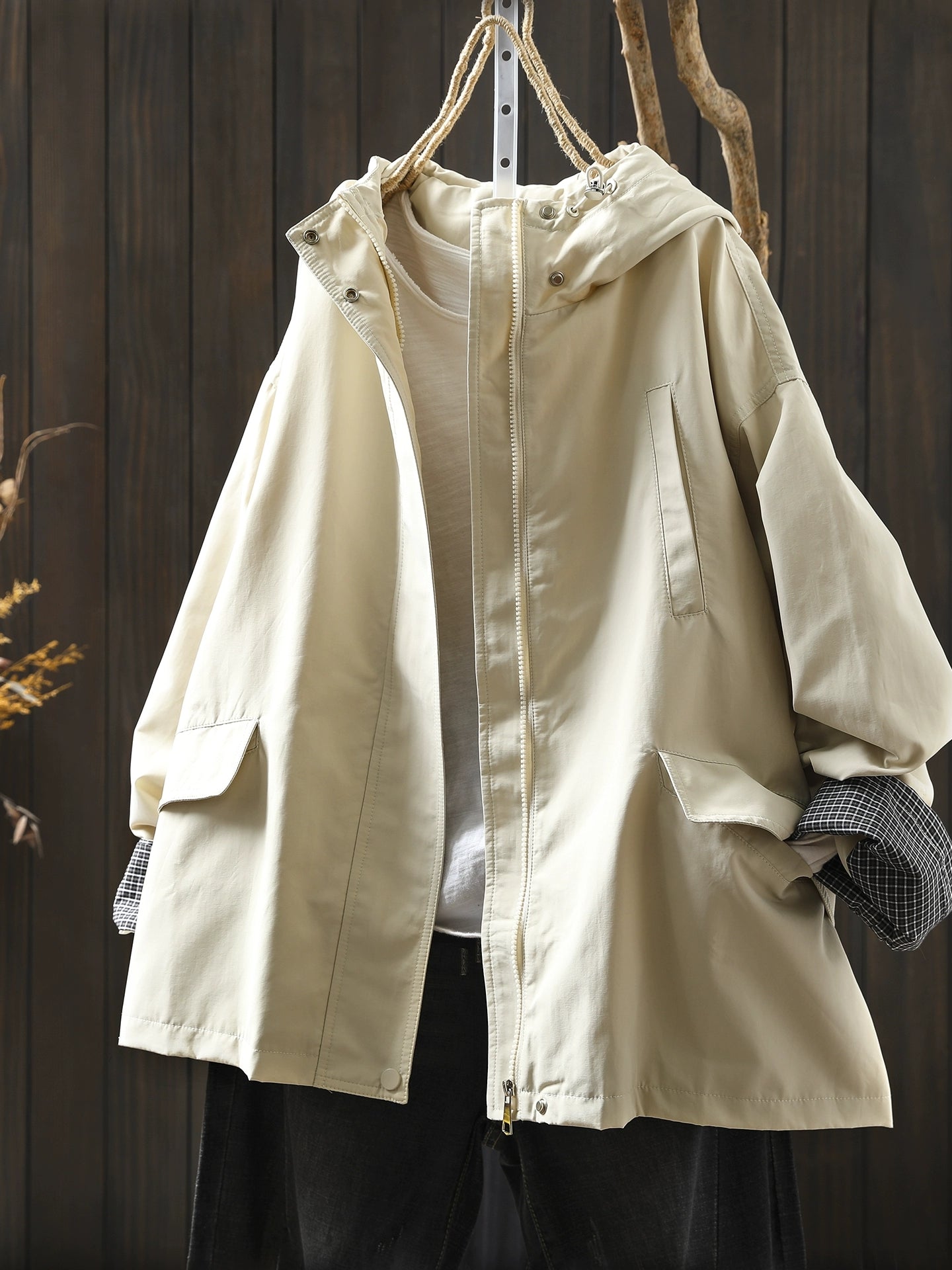 Women Autumn Casual Pure Color Windproof Hooded Jacket