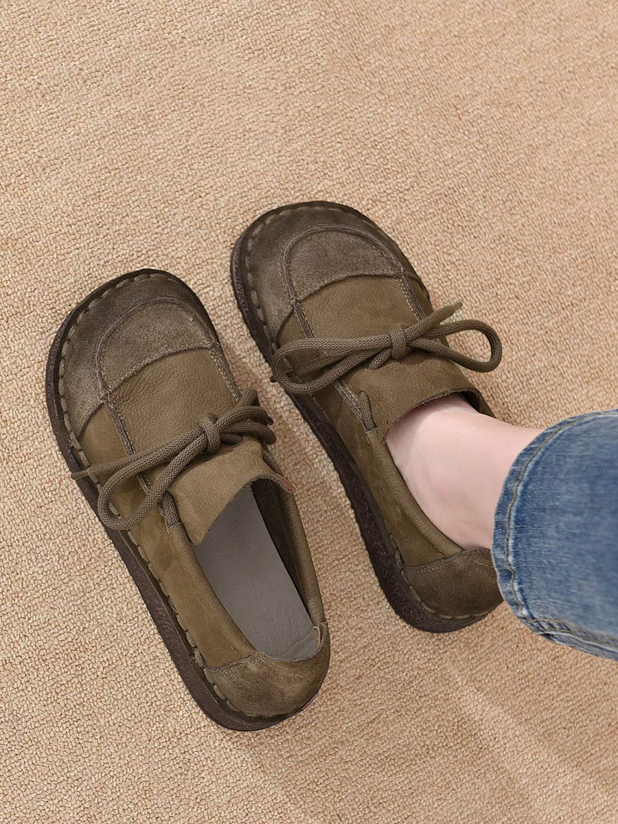 Women Autumn Genuine Leather Spliced Flat Shoes