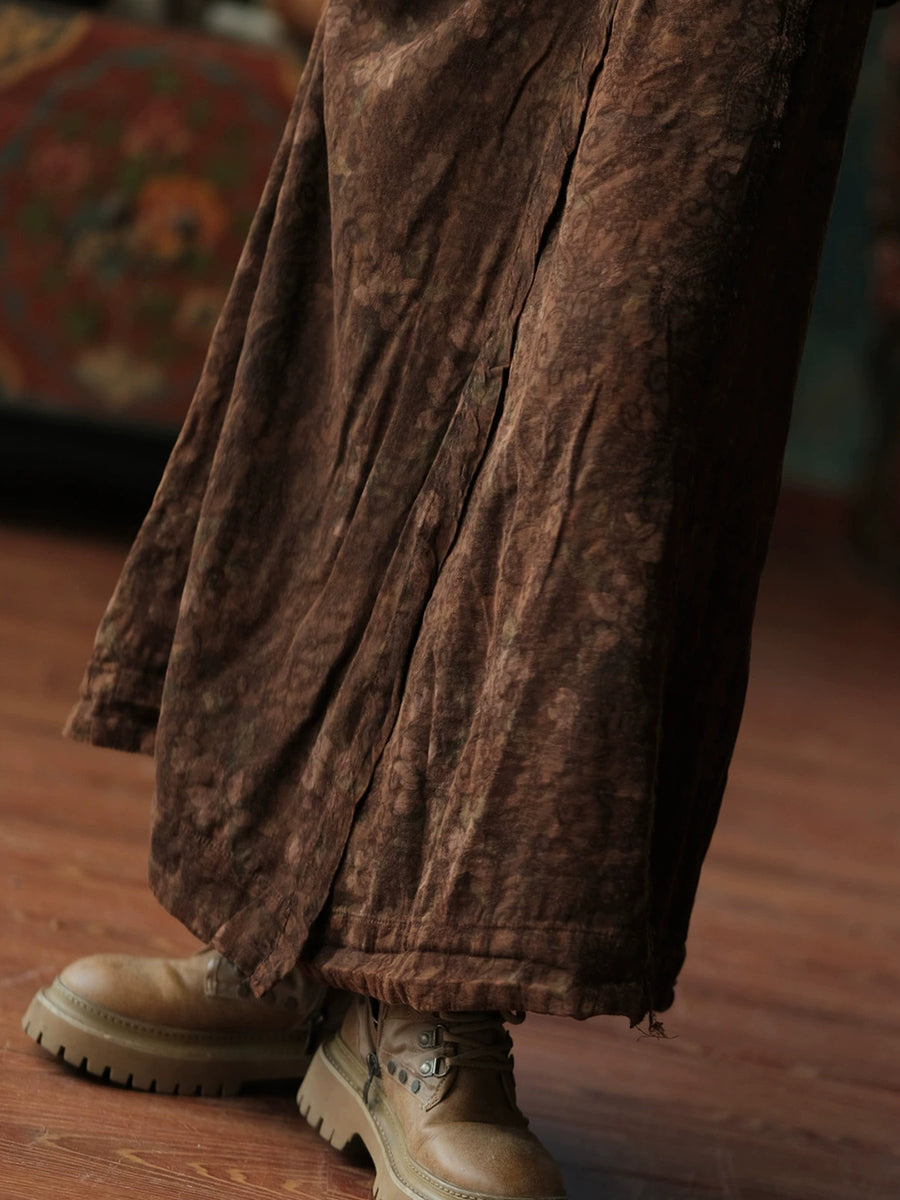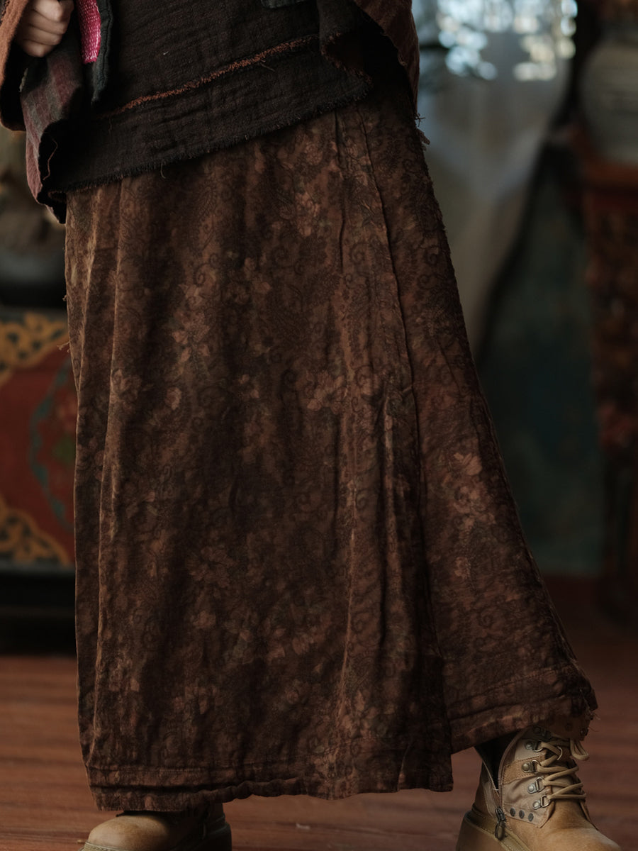 Women Autumn Retro Flower Cotton Straight Skirt