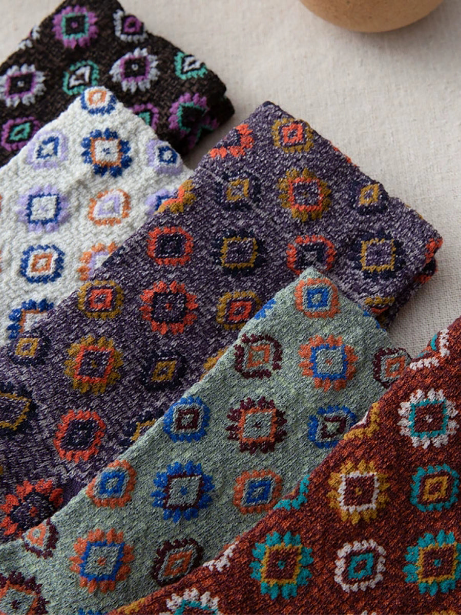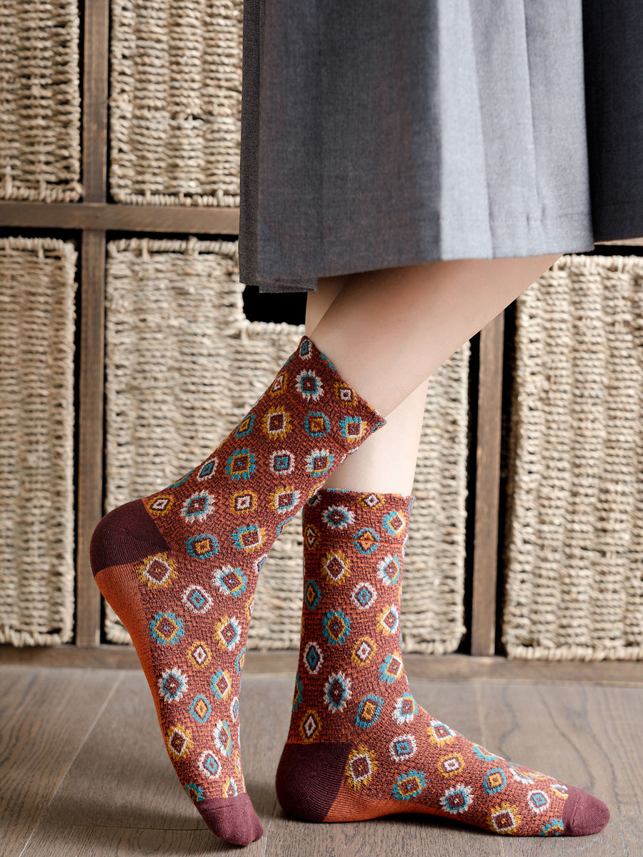 5 Pairs Women Artsy Flower Cotton Mid-Heel Socks