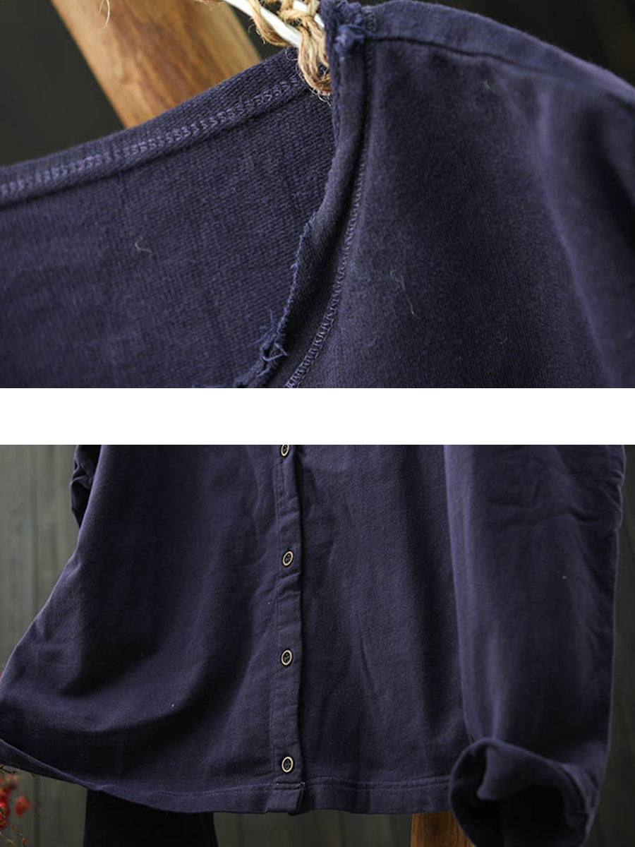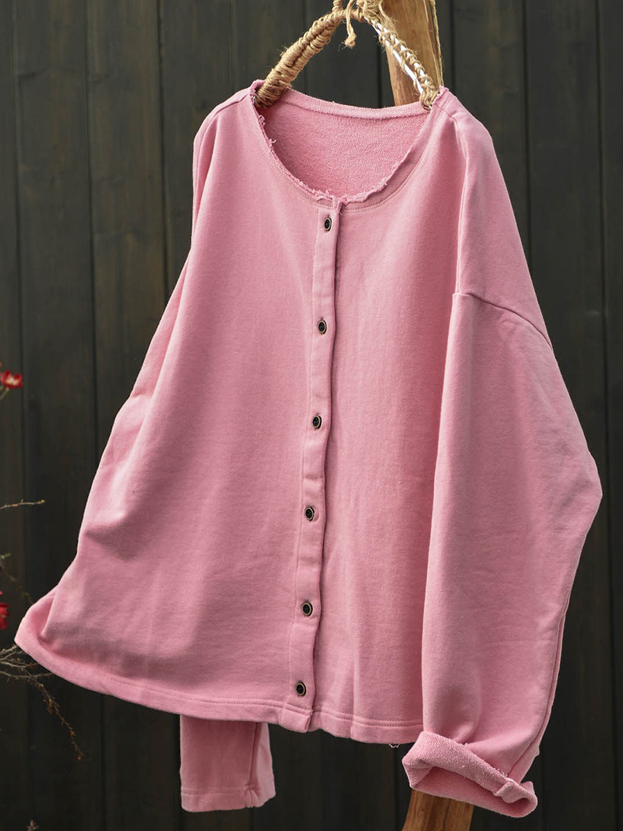 Women Artsy Spring Pure Color O-Neck Cotton Shirt