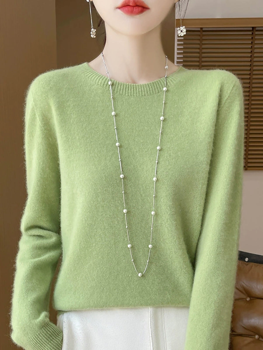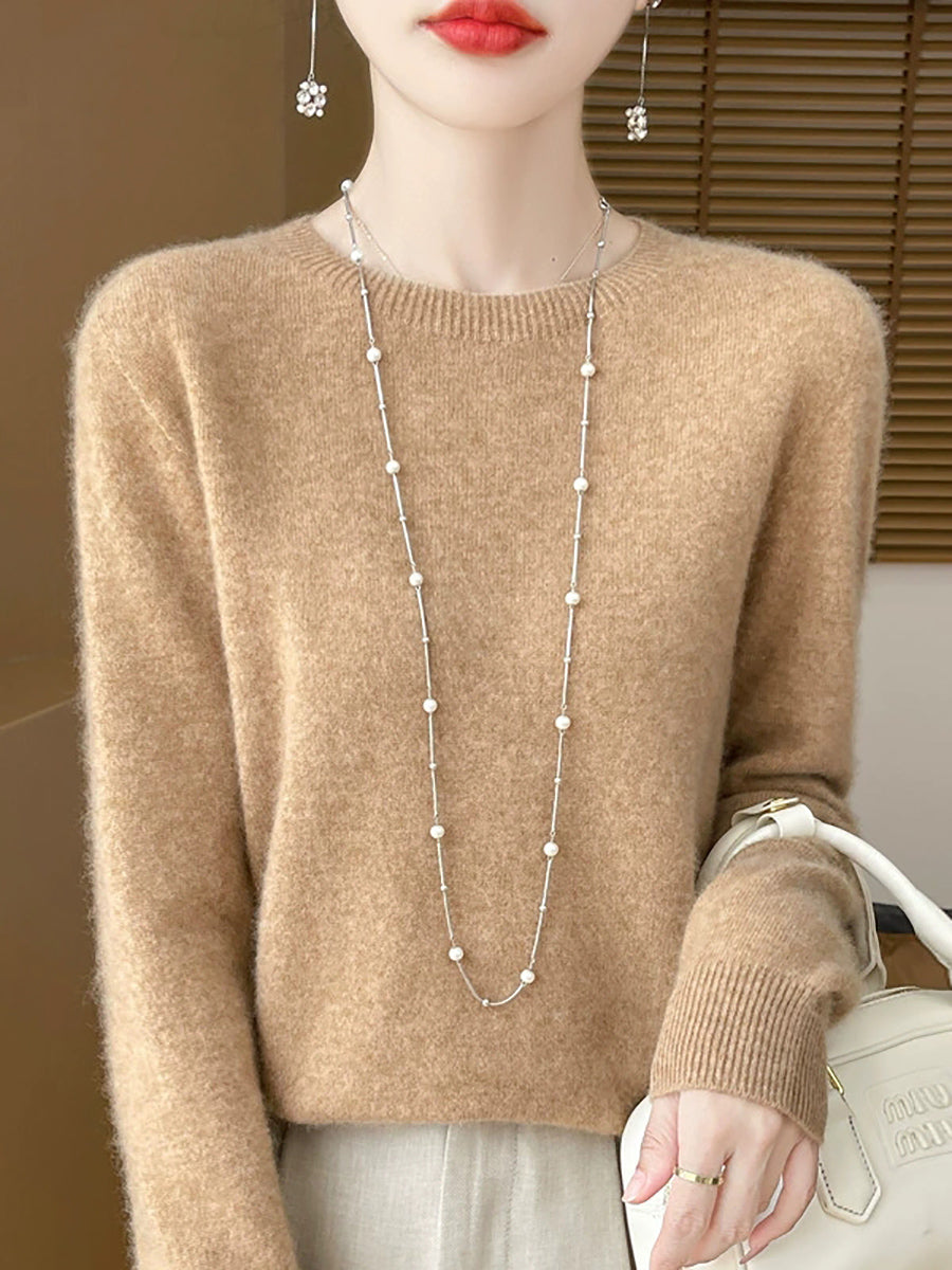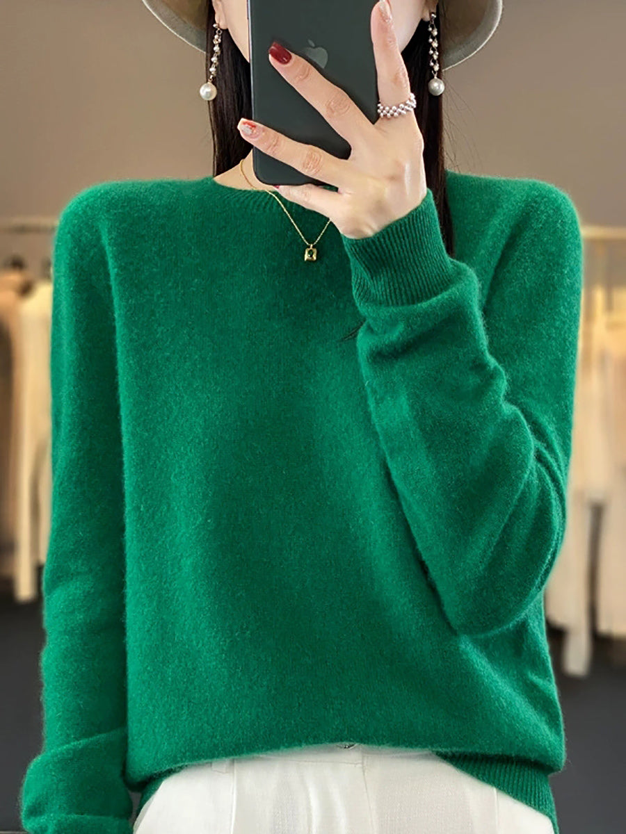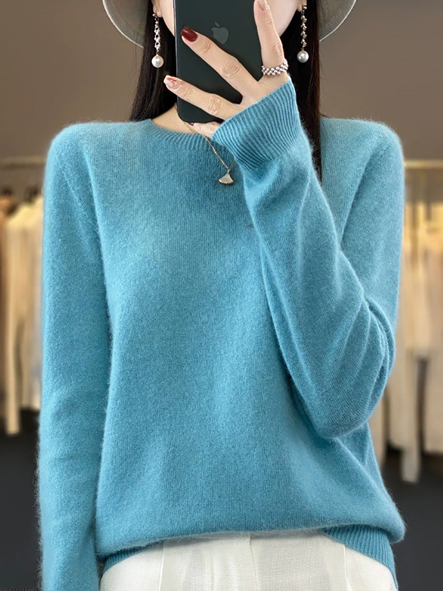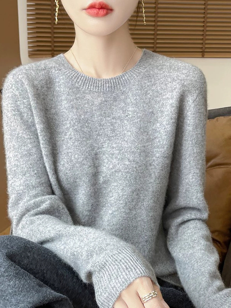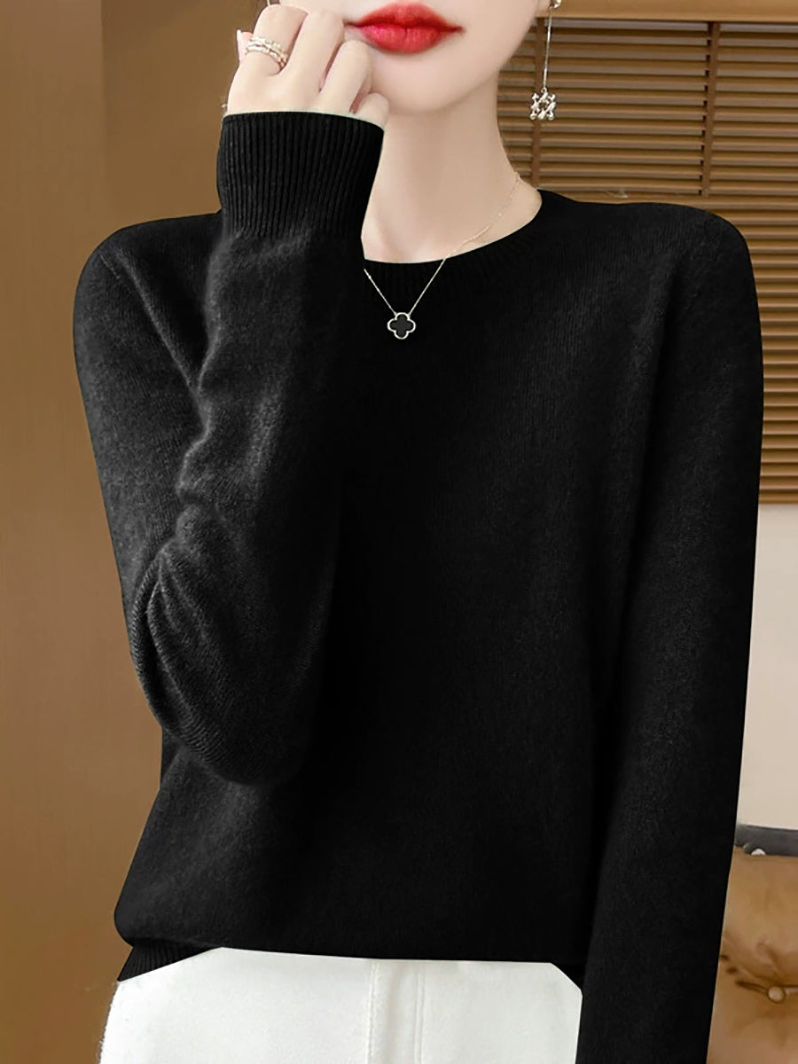 Women Spring Casual Pure Color O-Neck Sweater