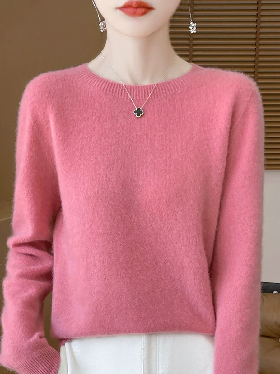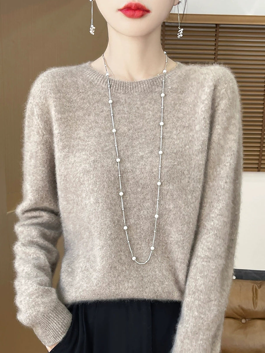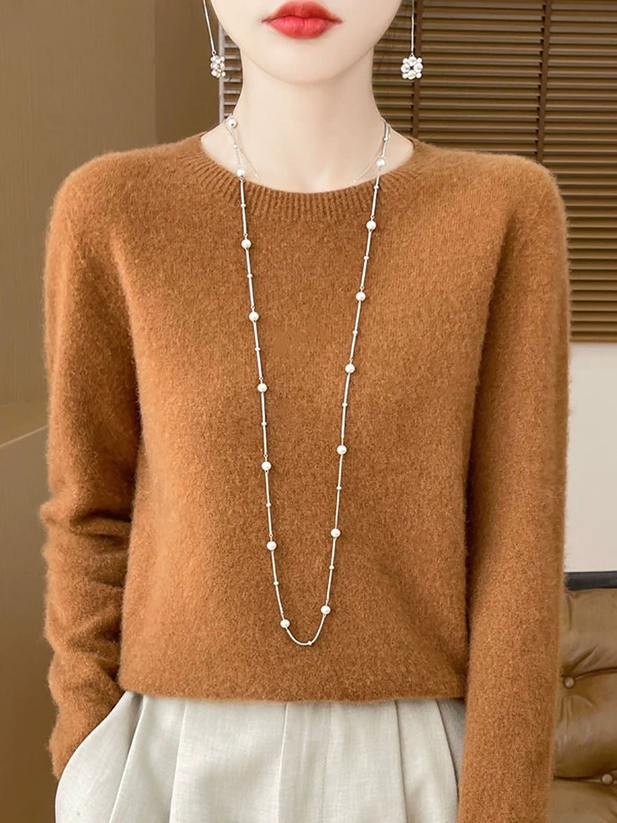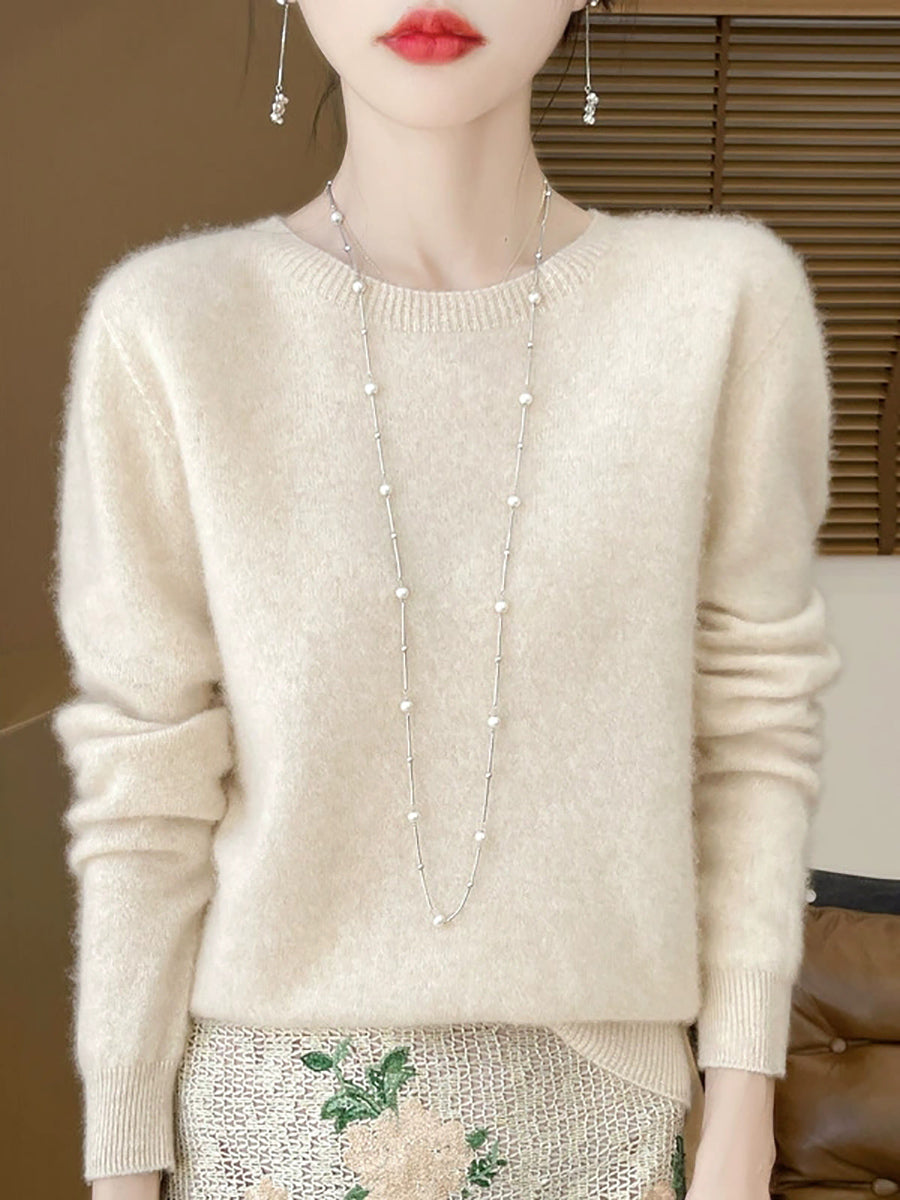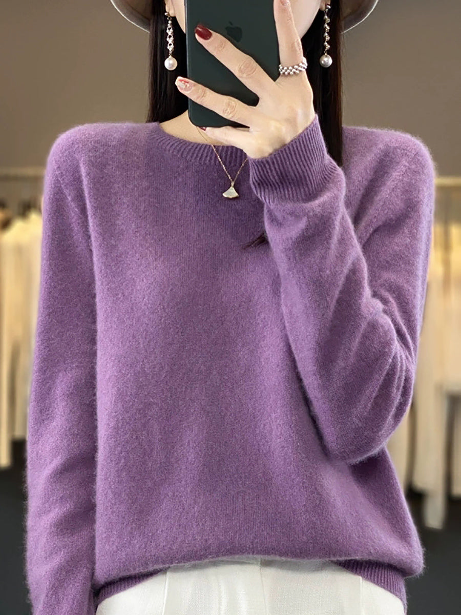 Women Spring Casual Pure Color O-Neck Sweater
