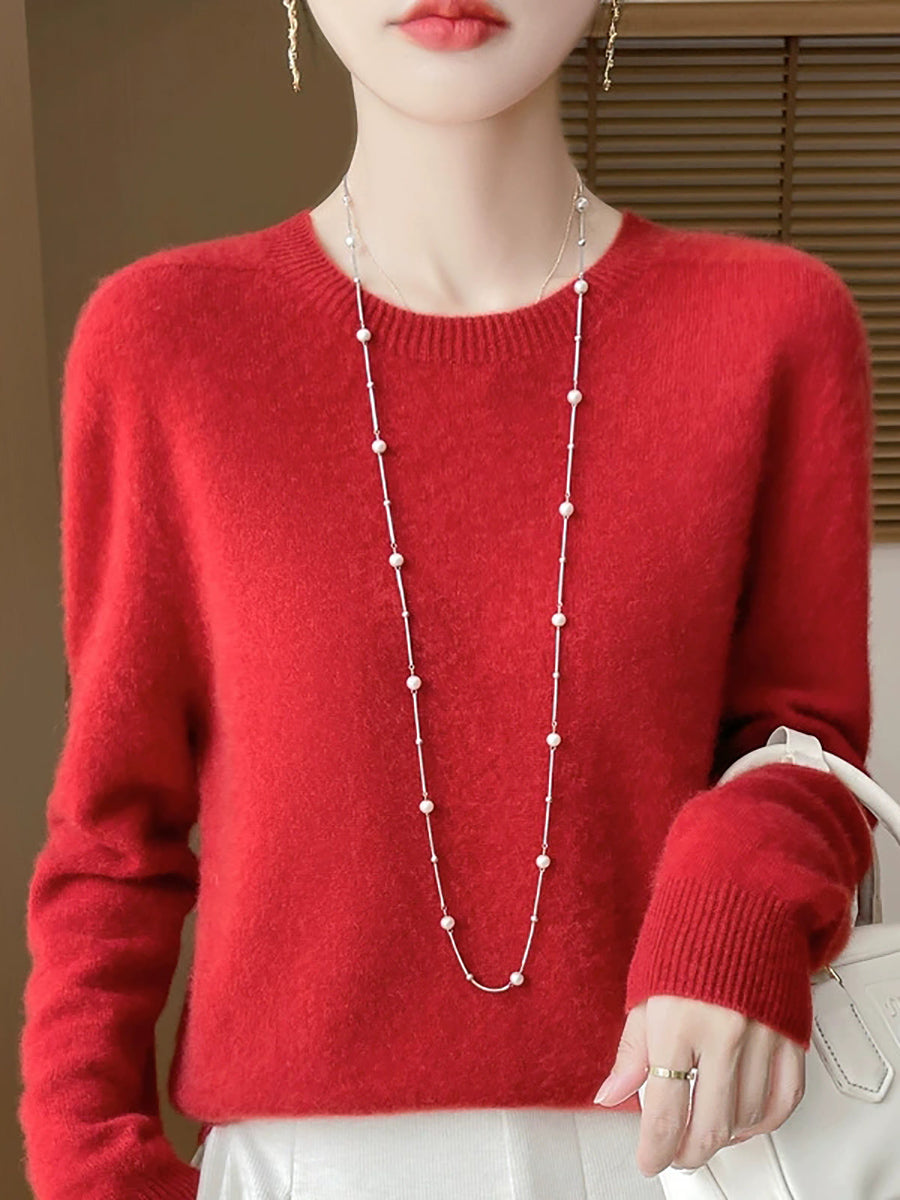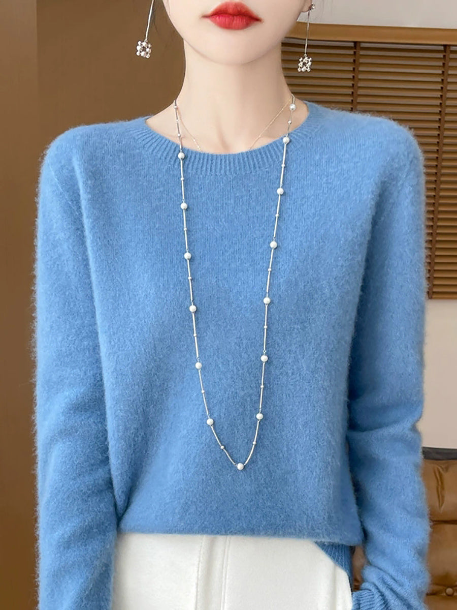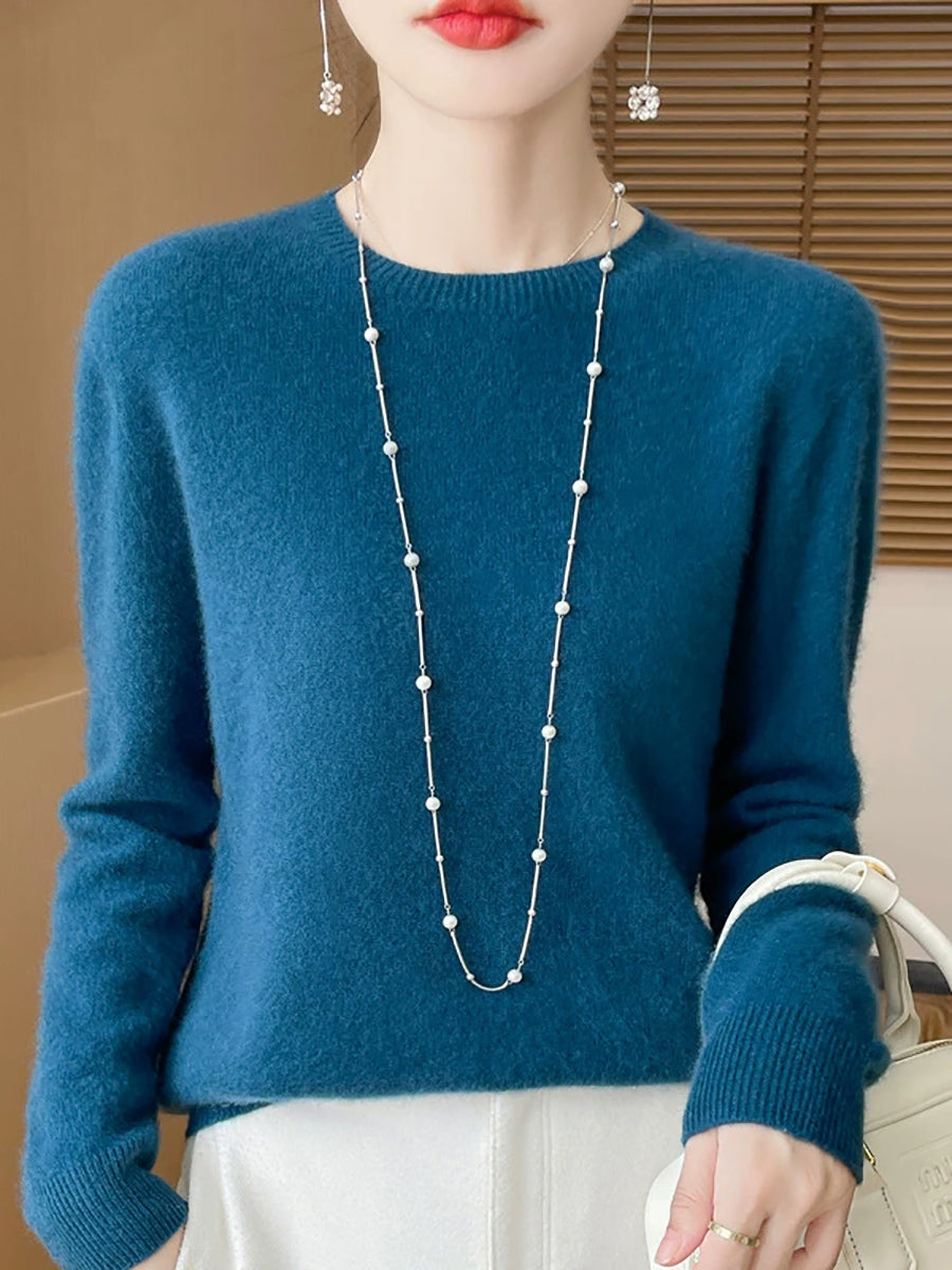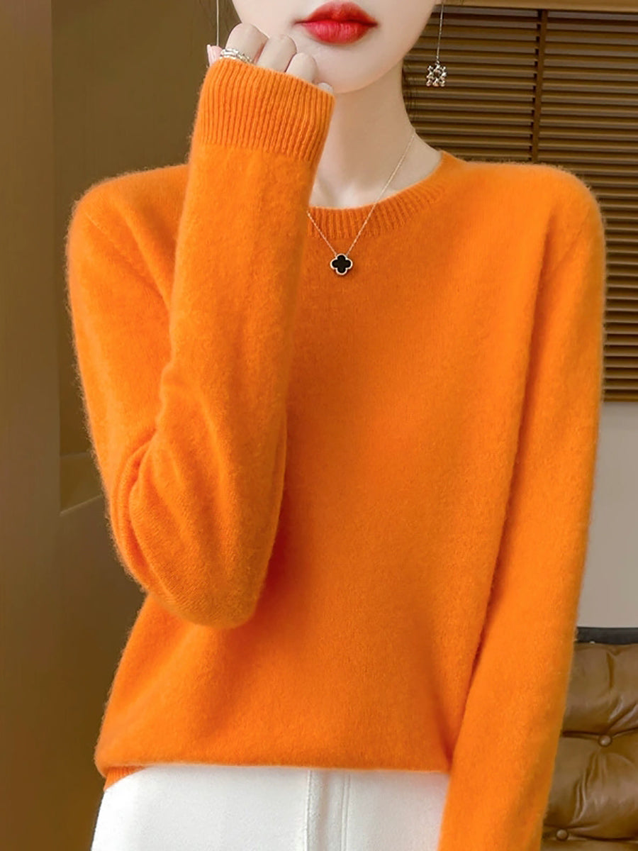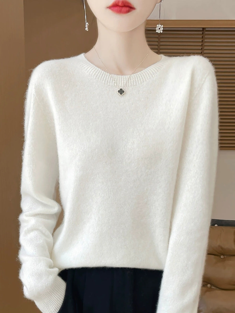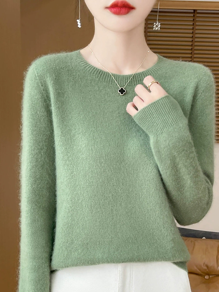 Women Spring Casual Pure Color O-Neck Sweater