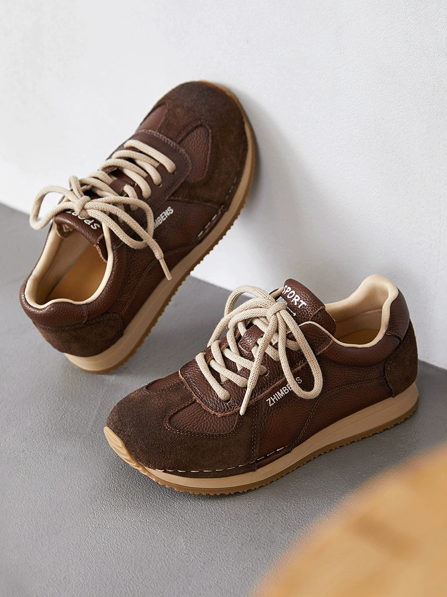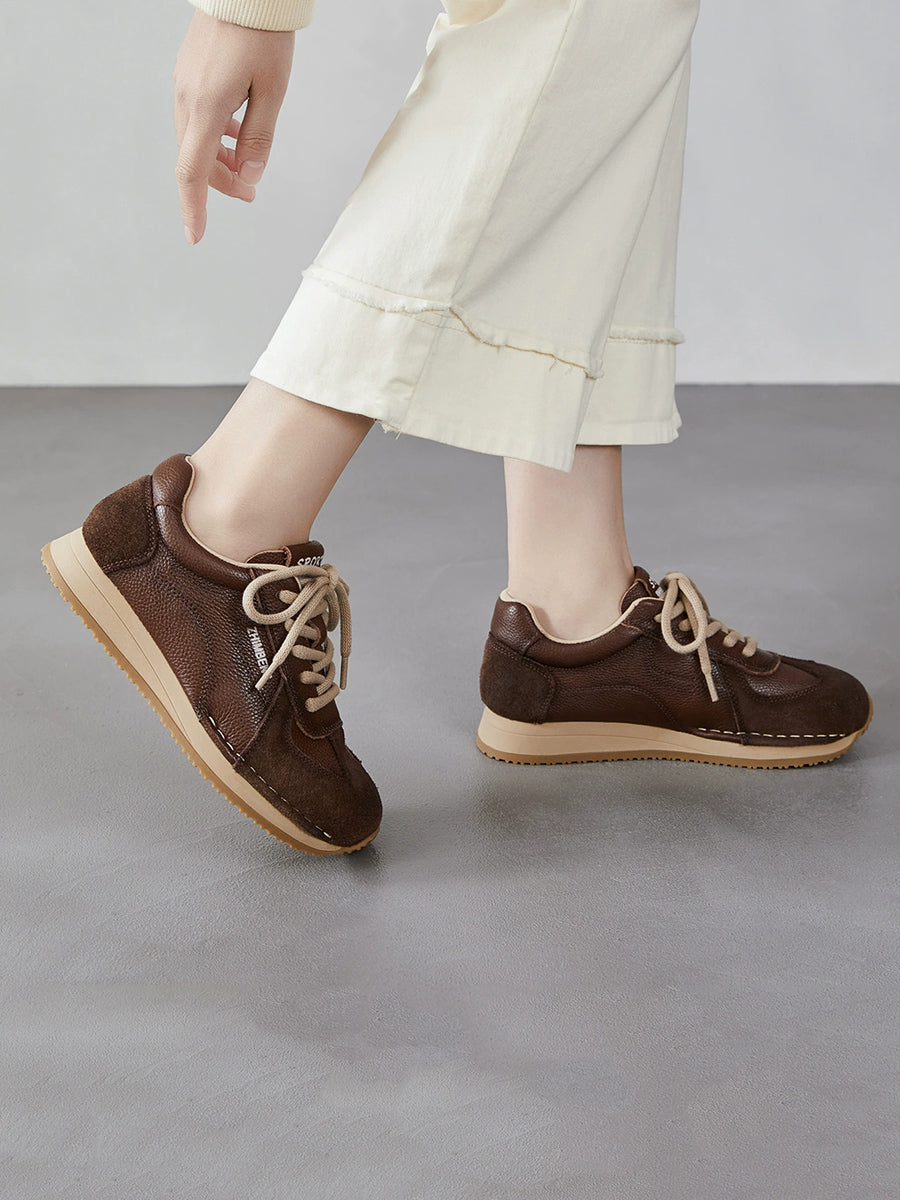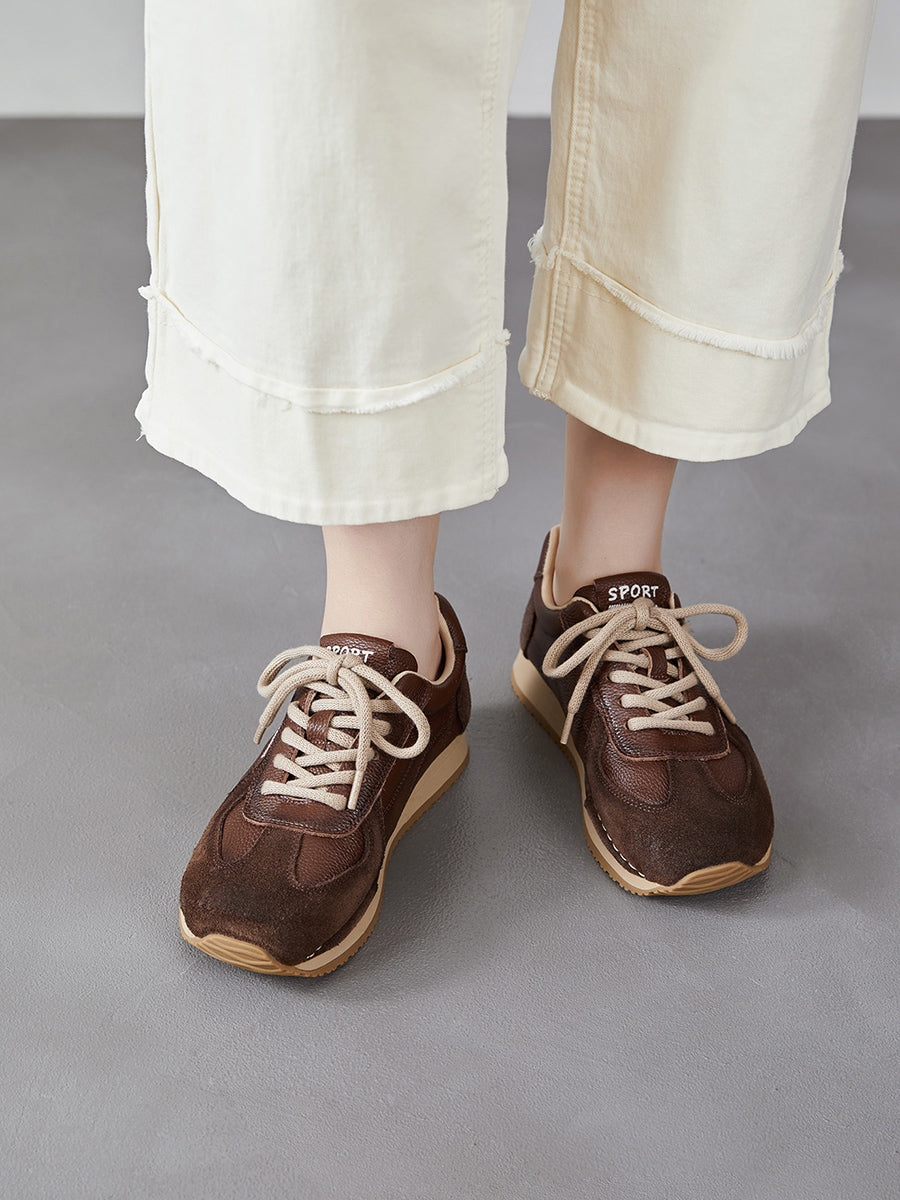 Women Spring Genuine Leather Spliced Sport Shoes