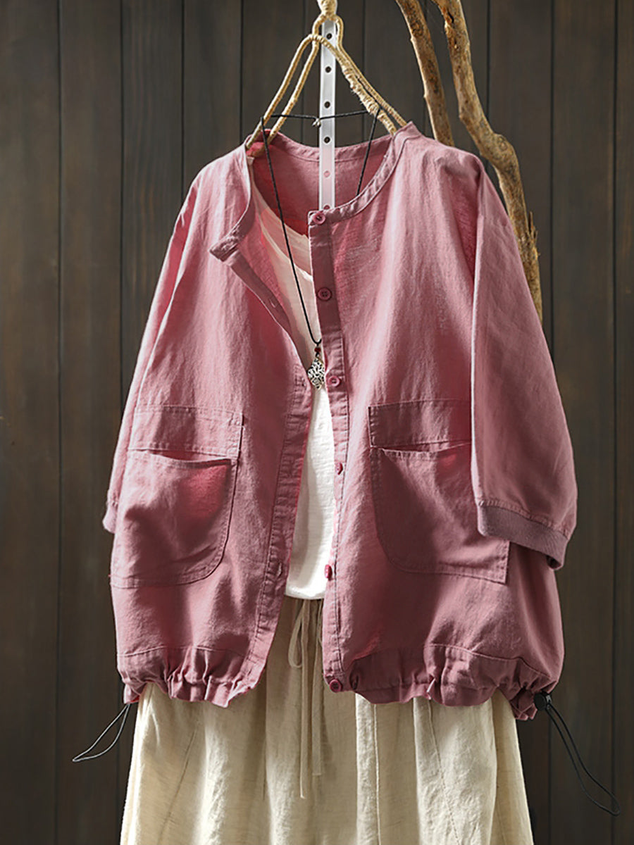 Women Summer Artsy Pure Color O-Neck Shirt