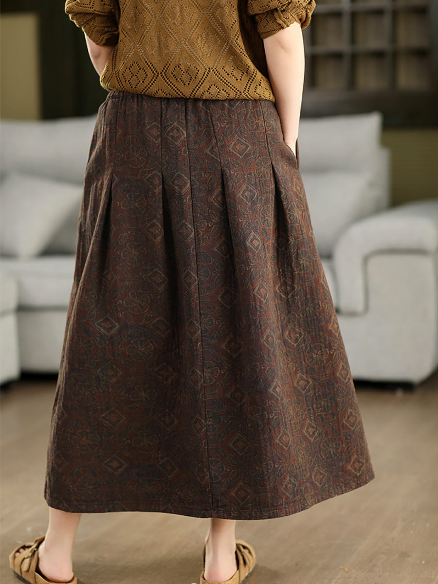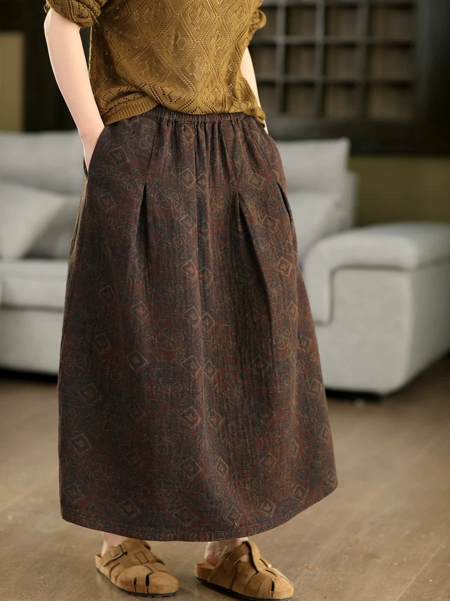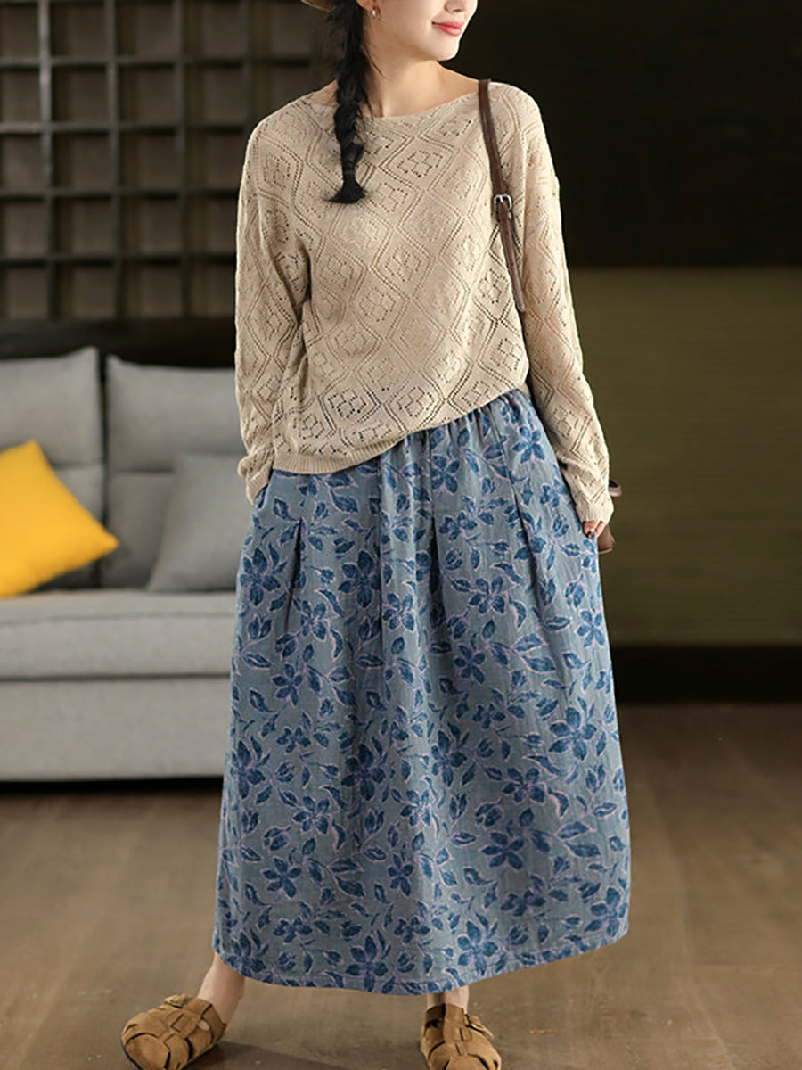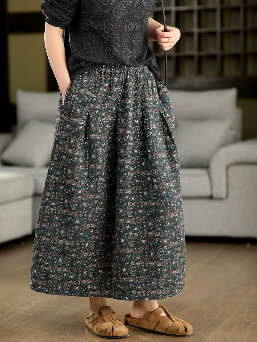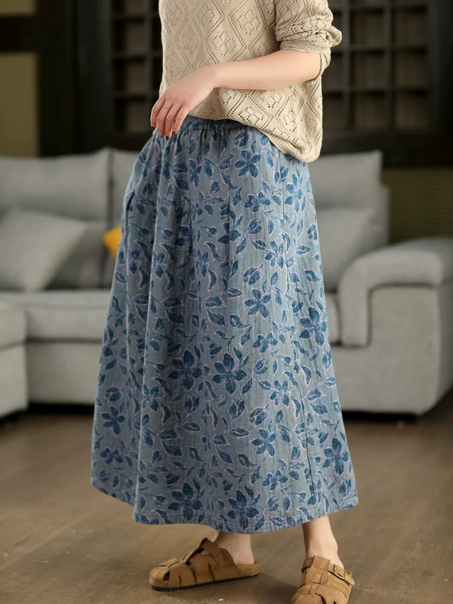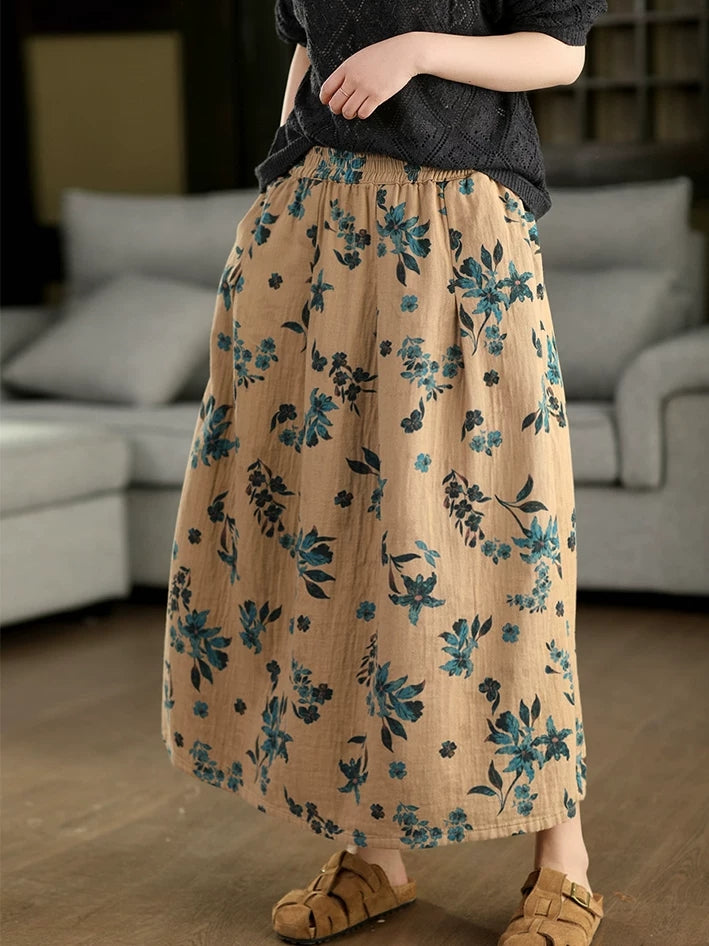 Women Summer Artsy Flower 100%Cotton Skirt