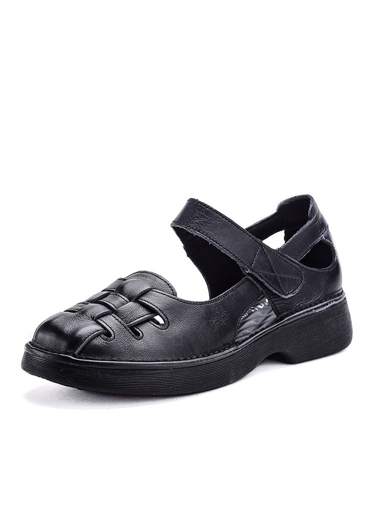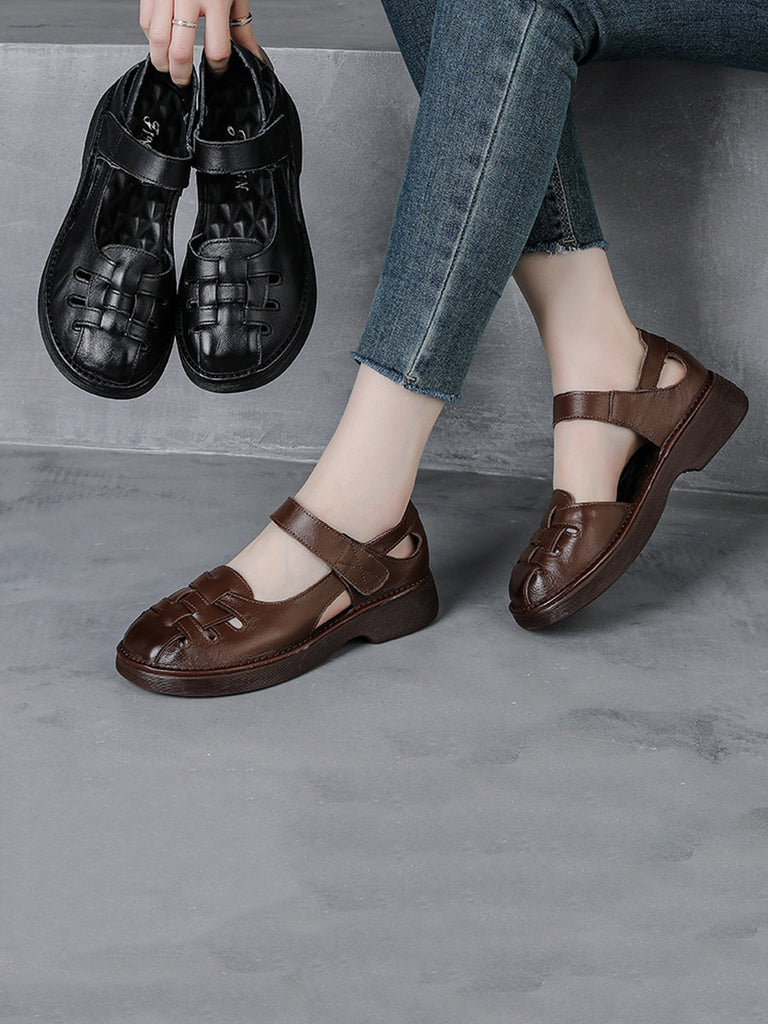 Women Casual Summer Genuine Leather Weave Platfrom Shoes