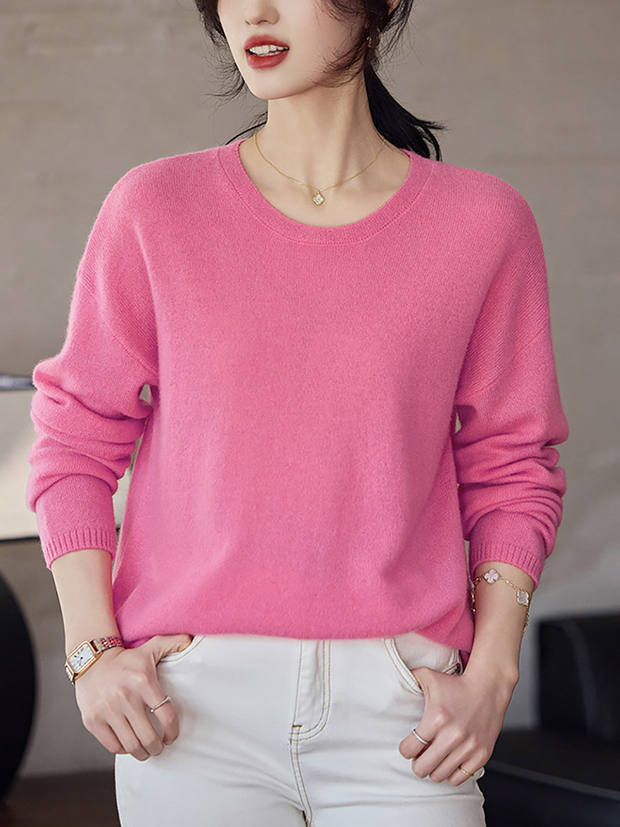 Women Spring Artsy Pure Color V-Neck Wool Sweater