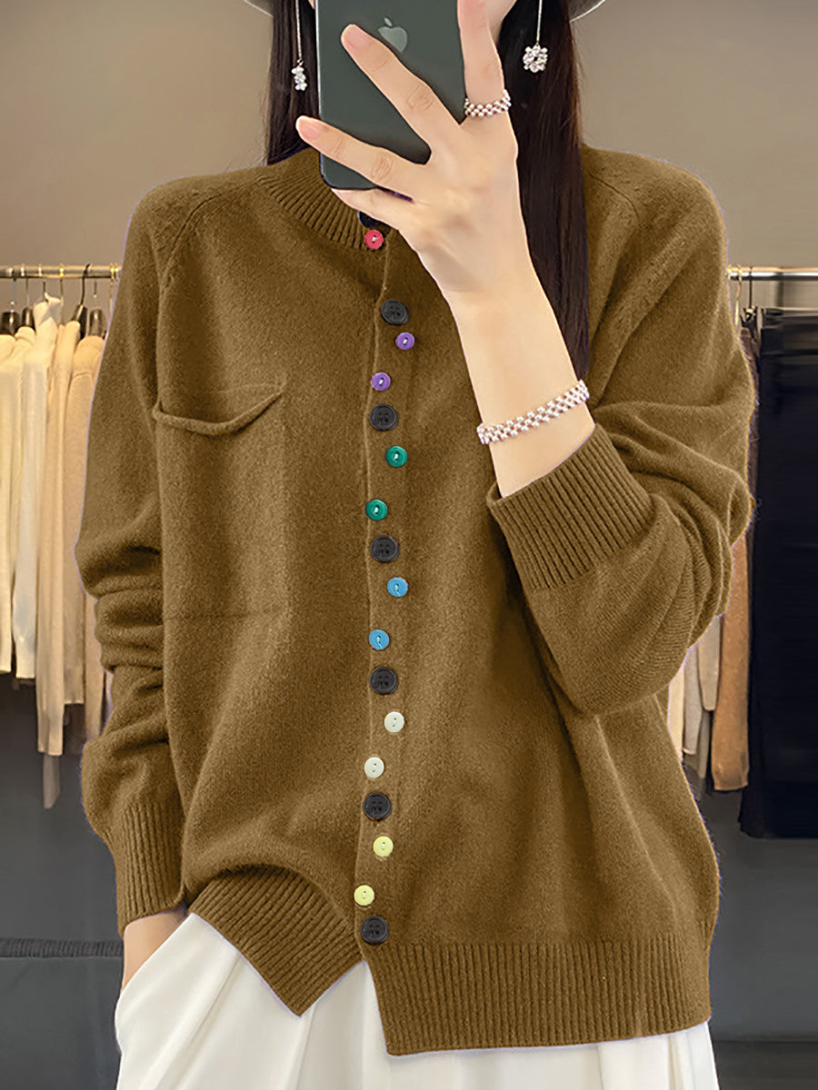 Women Autumn O-Neck Pure Color Knit Sweater