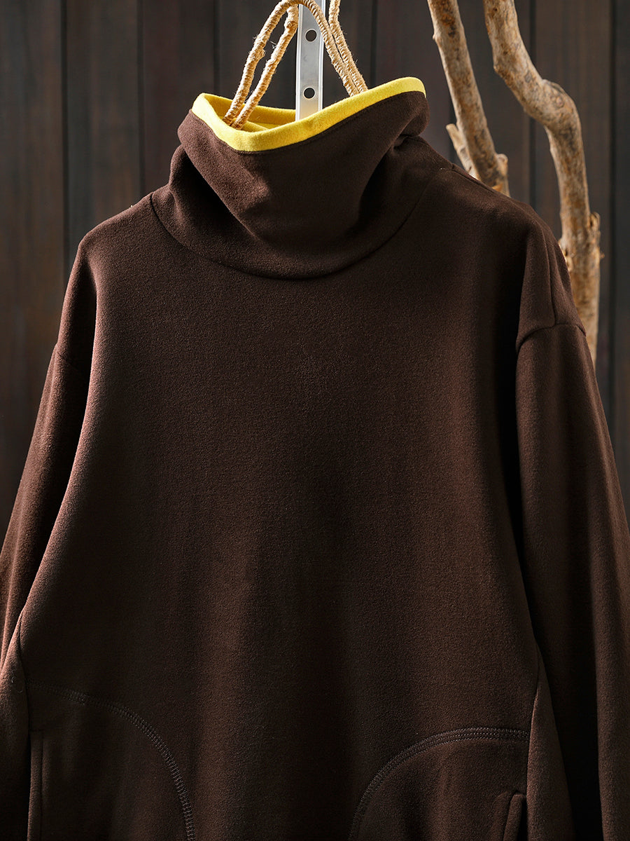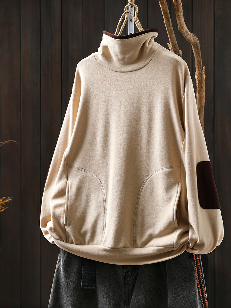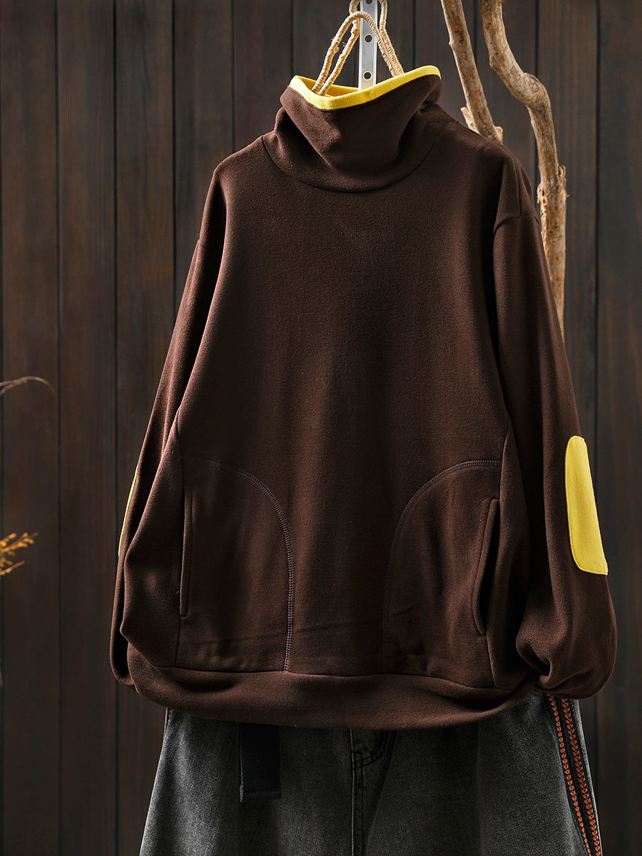 Crafted from a premium cotton-spandex blend, this autumn essential combines comfort with contemporary style. The turtleneck collar provides warmth and sophistication, while the colorblock pattern adds visual interest to your seasonal wardrobe. Full-length sleeves with a relaxed fit make it ideal for layering through fall and winter months. The fabric's natural breathability ensures all-day wearability, whether styled casually or dressed up for professional settings.