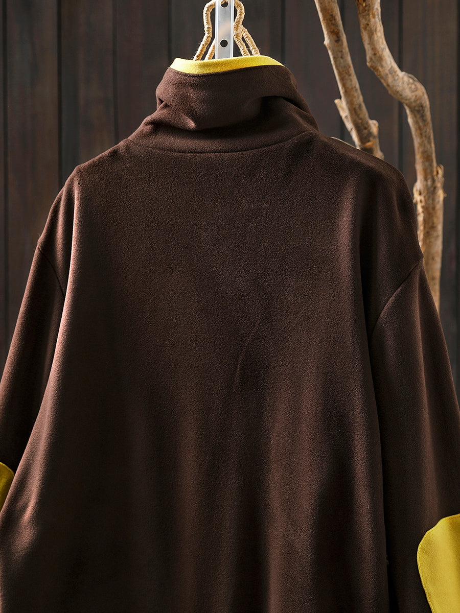 Women Casual Autumn Colorblock Turtleneck Cotton Blouse