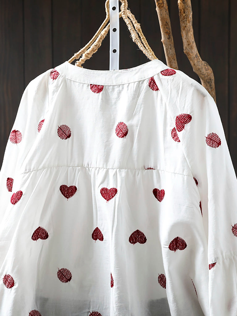 Women Artsy Heart Dot Embroidery Shirt