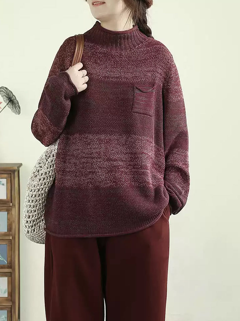 Women Autumn Ethnic Colorblock Half-Turtleneck Sweater