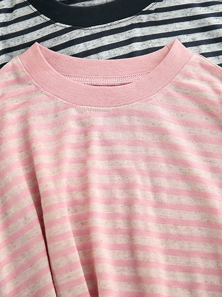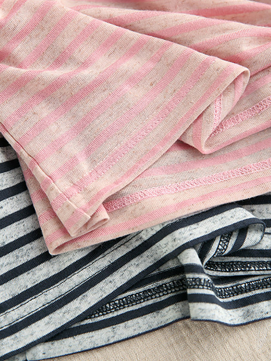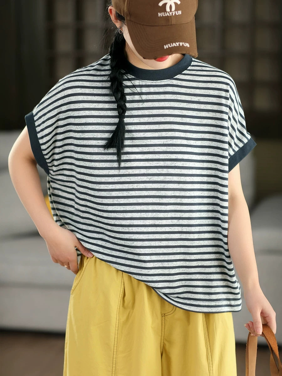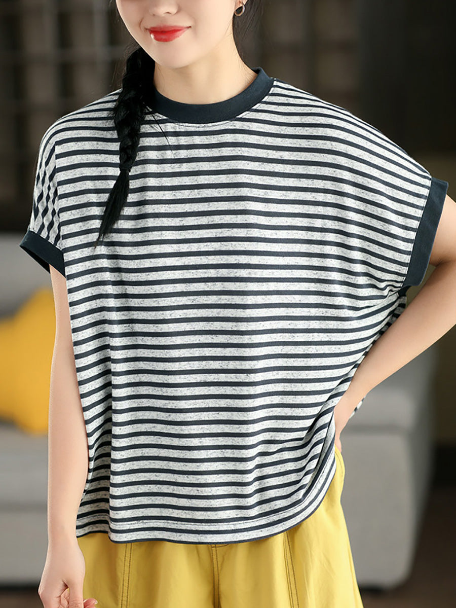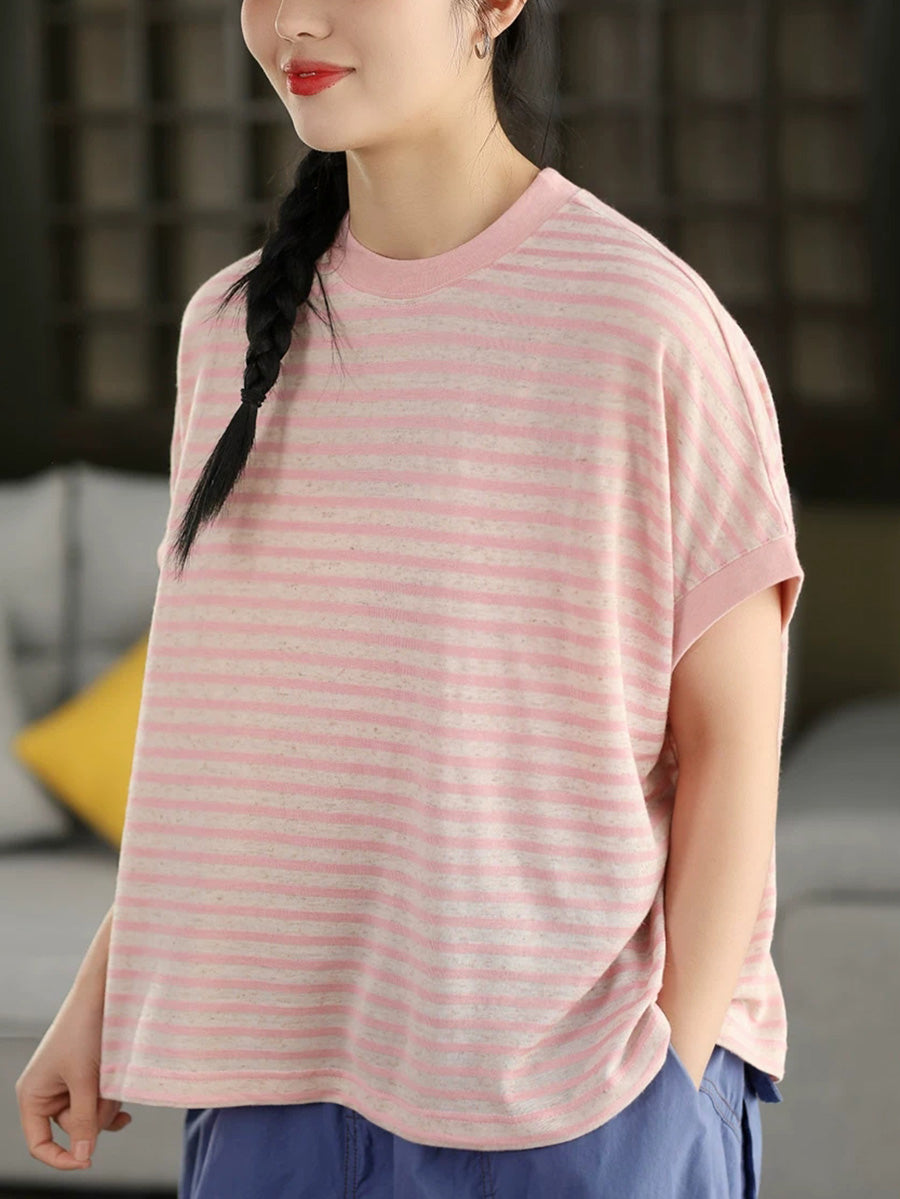 Women Summer Casual Stripe O-Neck Shirt