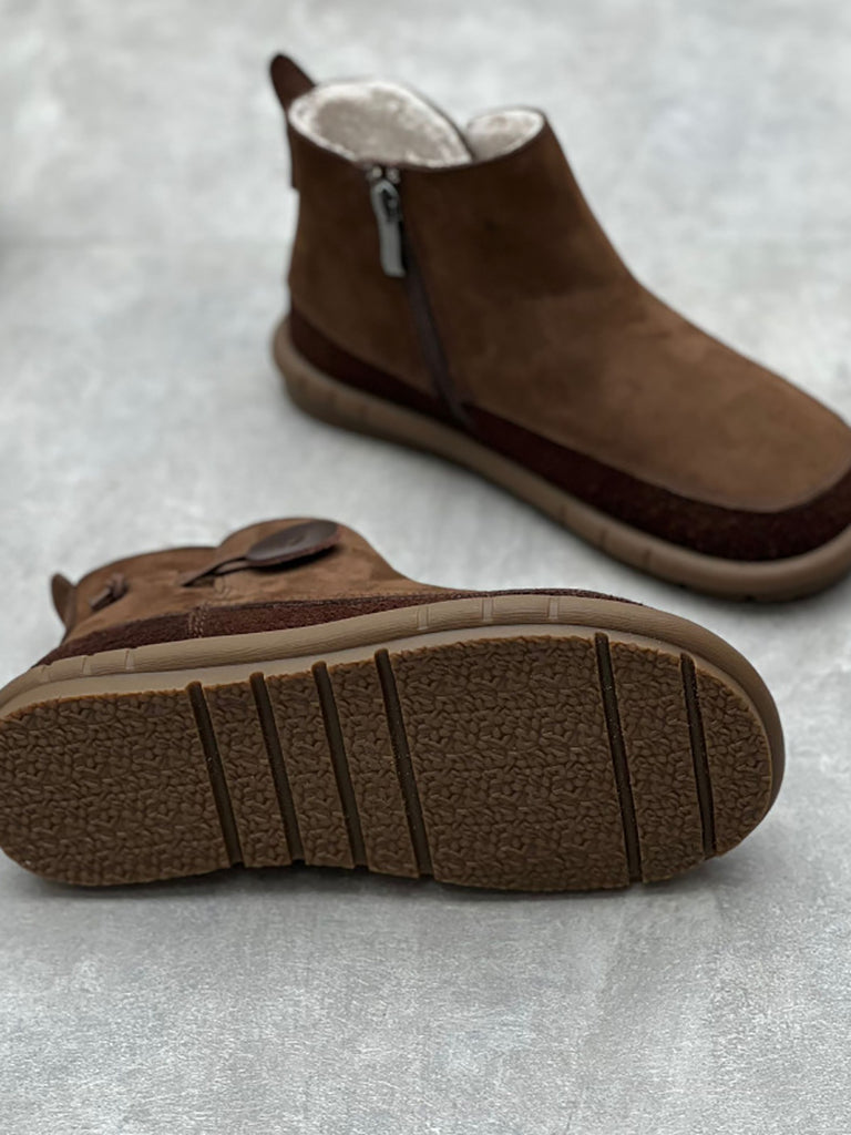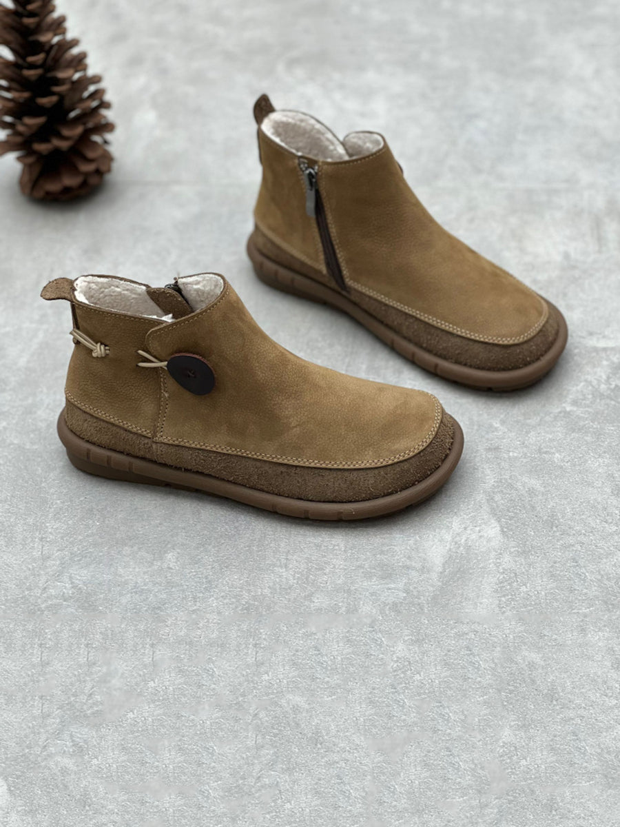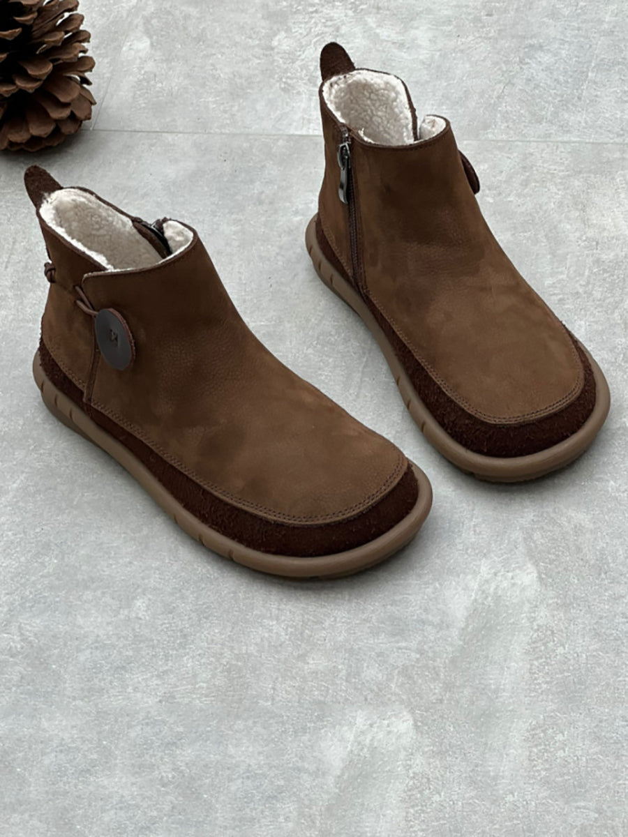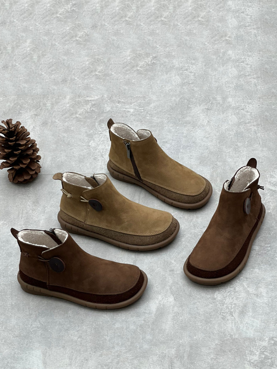 Women Retro Genuine Leather Fleece-lined Flat Shoes