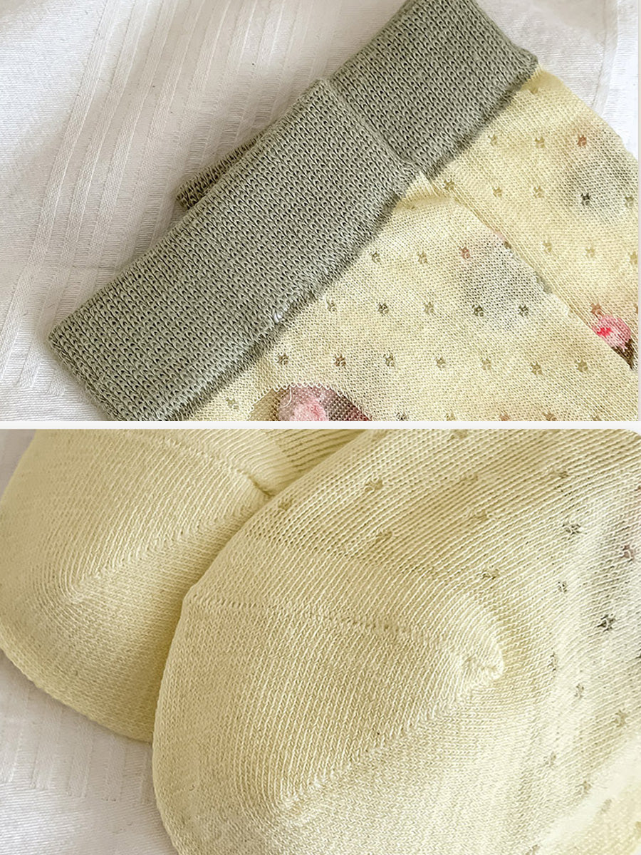 3 Pairs Summer Artsy Flower Jacquard Mid-calf Thin Socks
