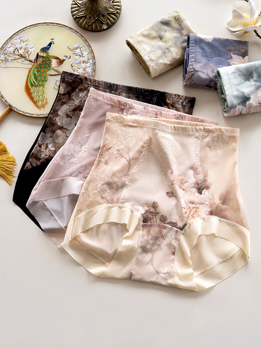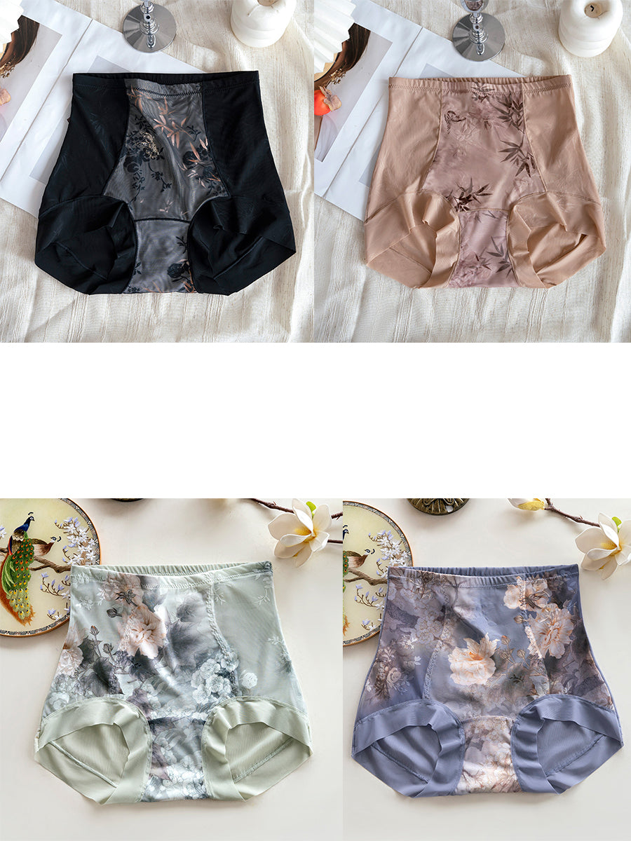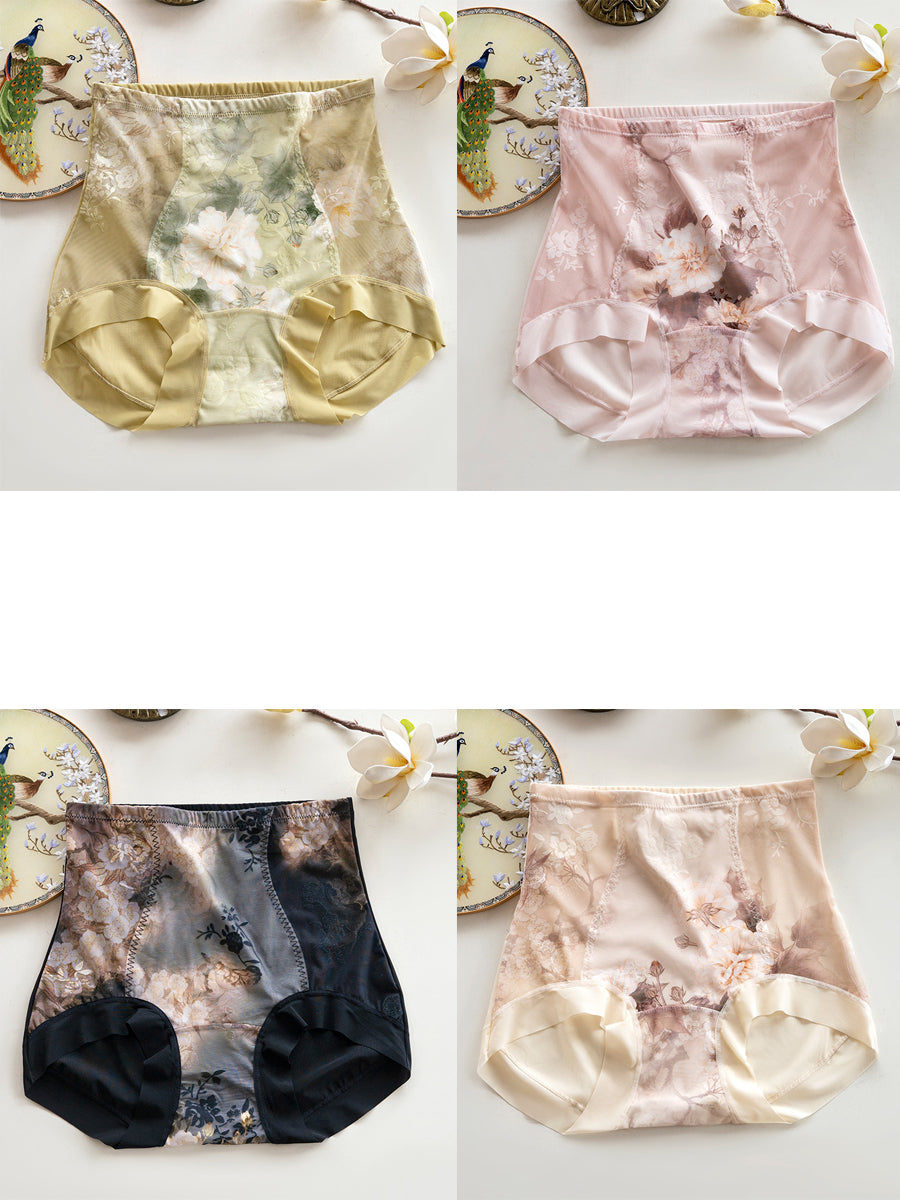 4 Pieces Women Artsy Flower High Waist Underwear