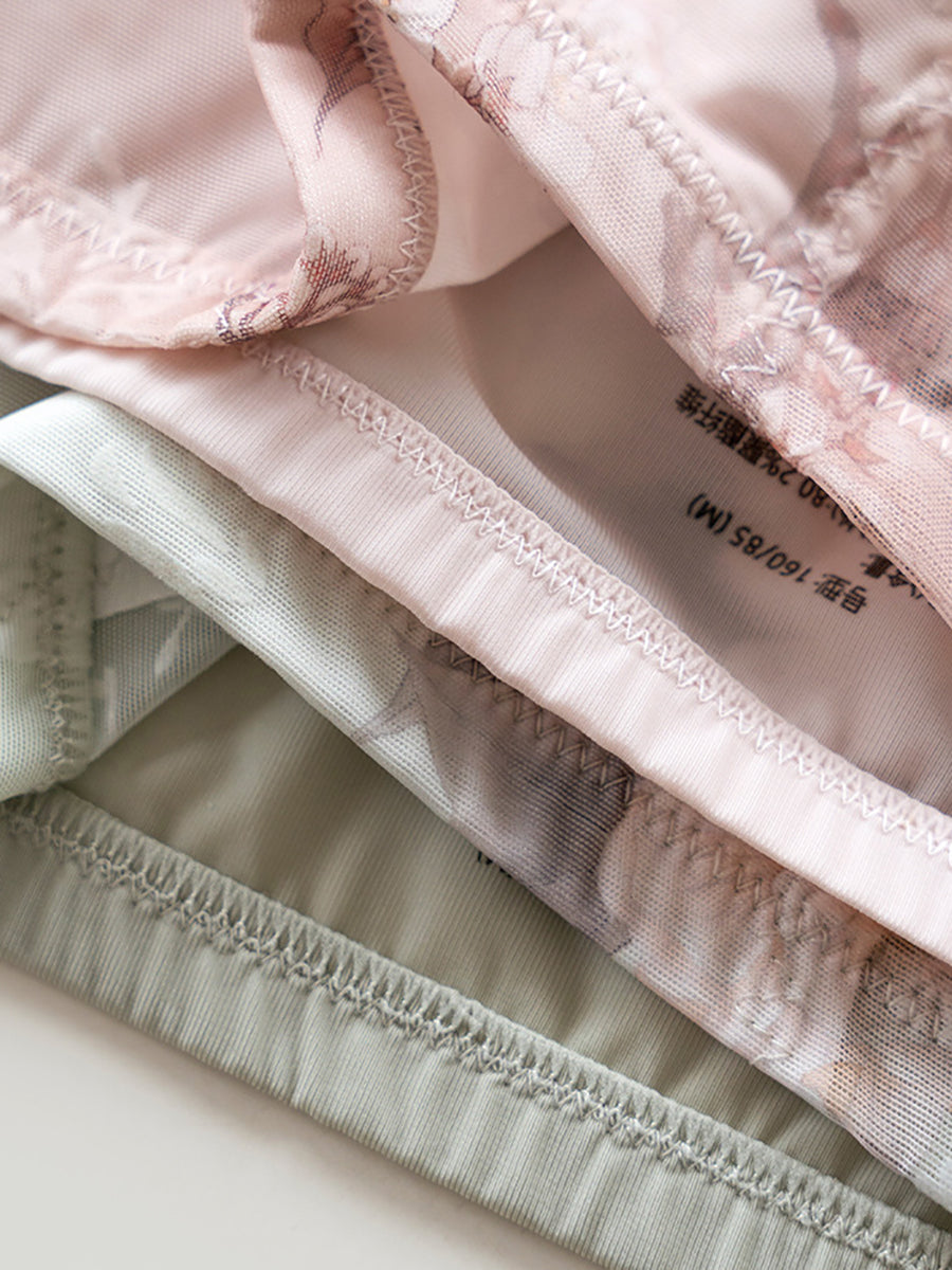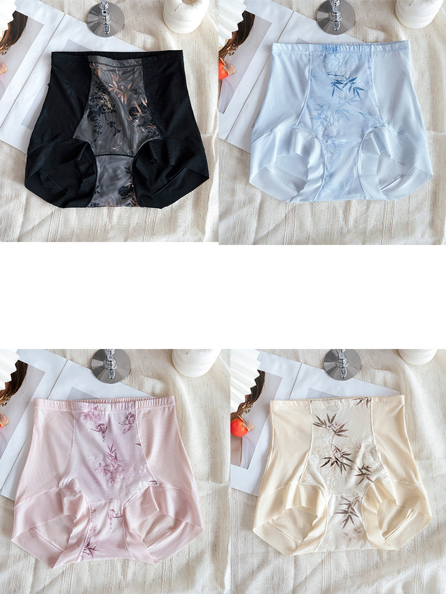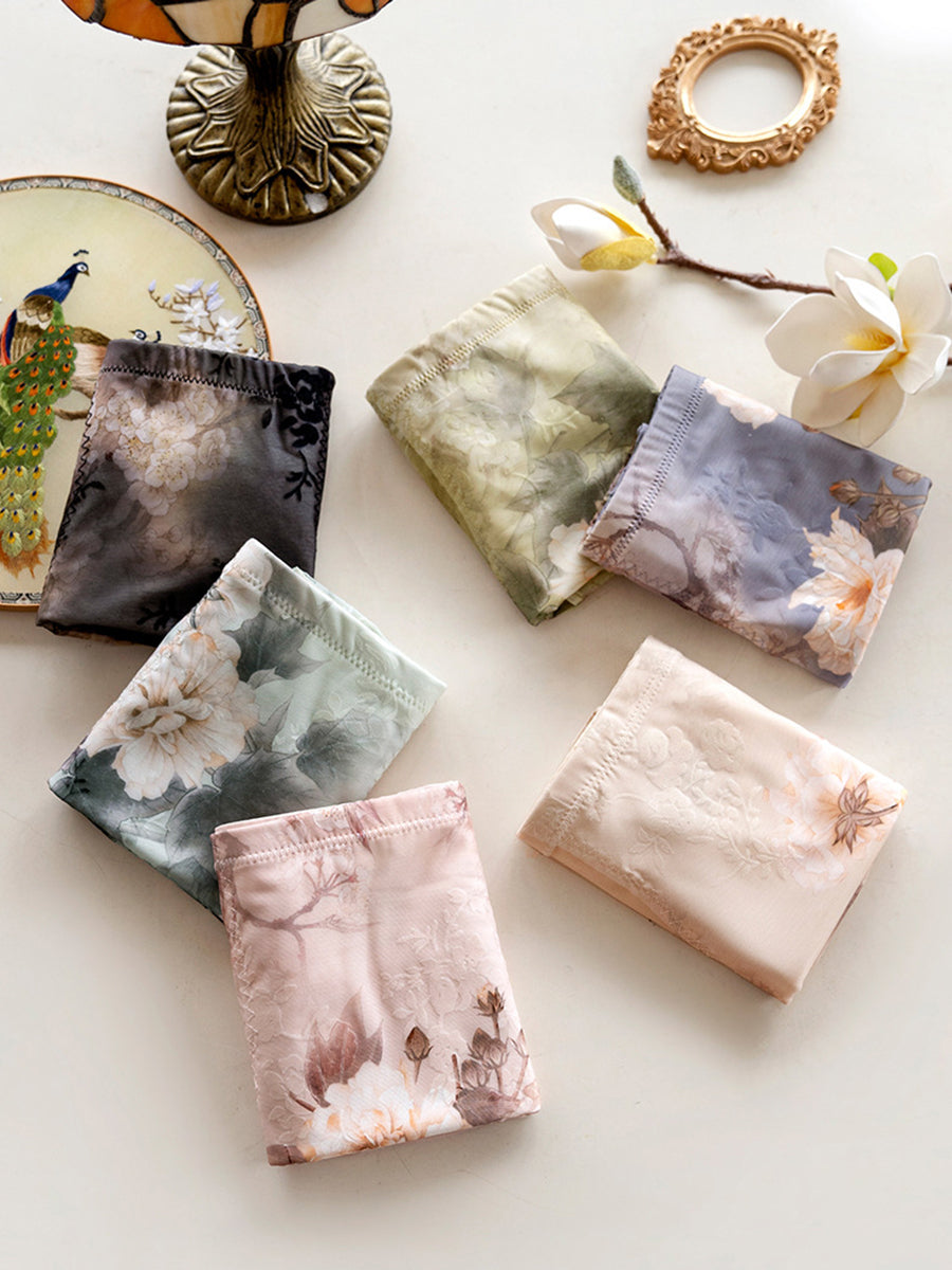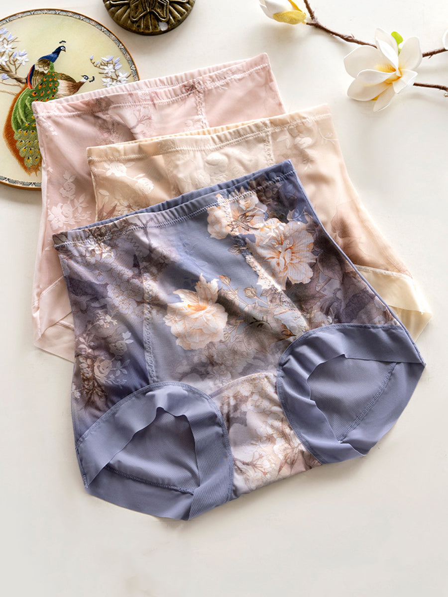 4 Pieces Women Artsy Flower High Waist Underwear