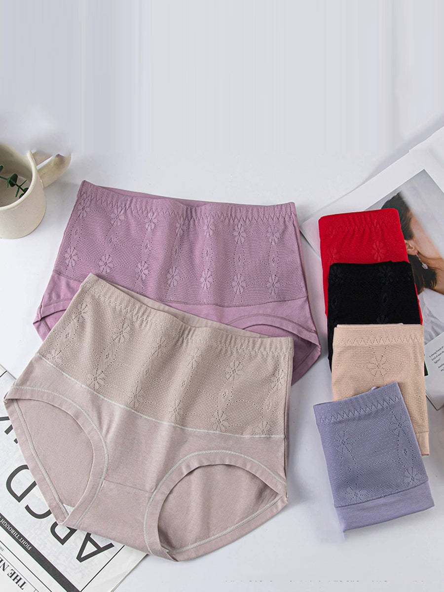 4 Pieces Women Artsy Jacquard High Waist Underwear