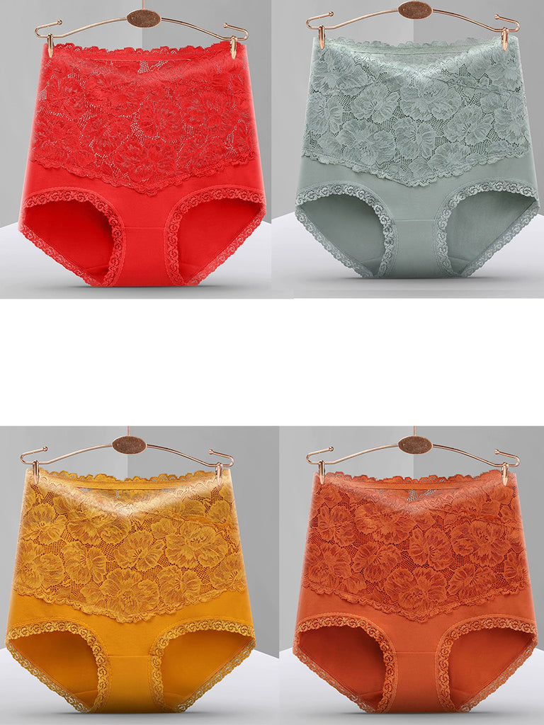 4 Pieces Women Artsy Lace High Waist Underwear