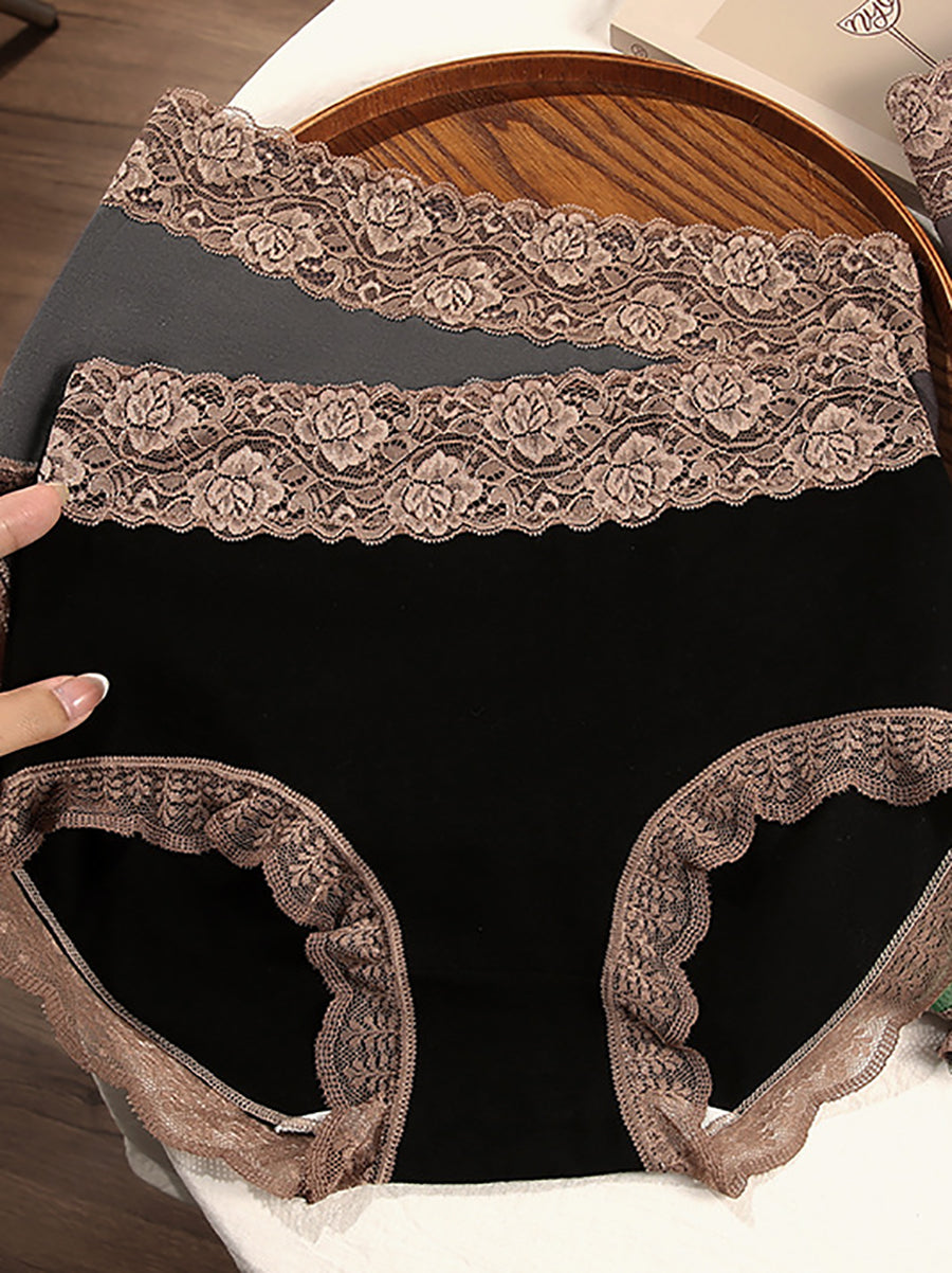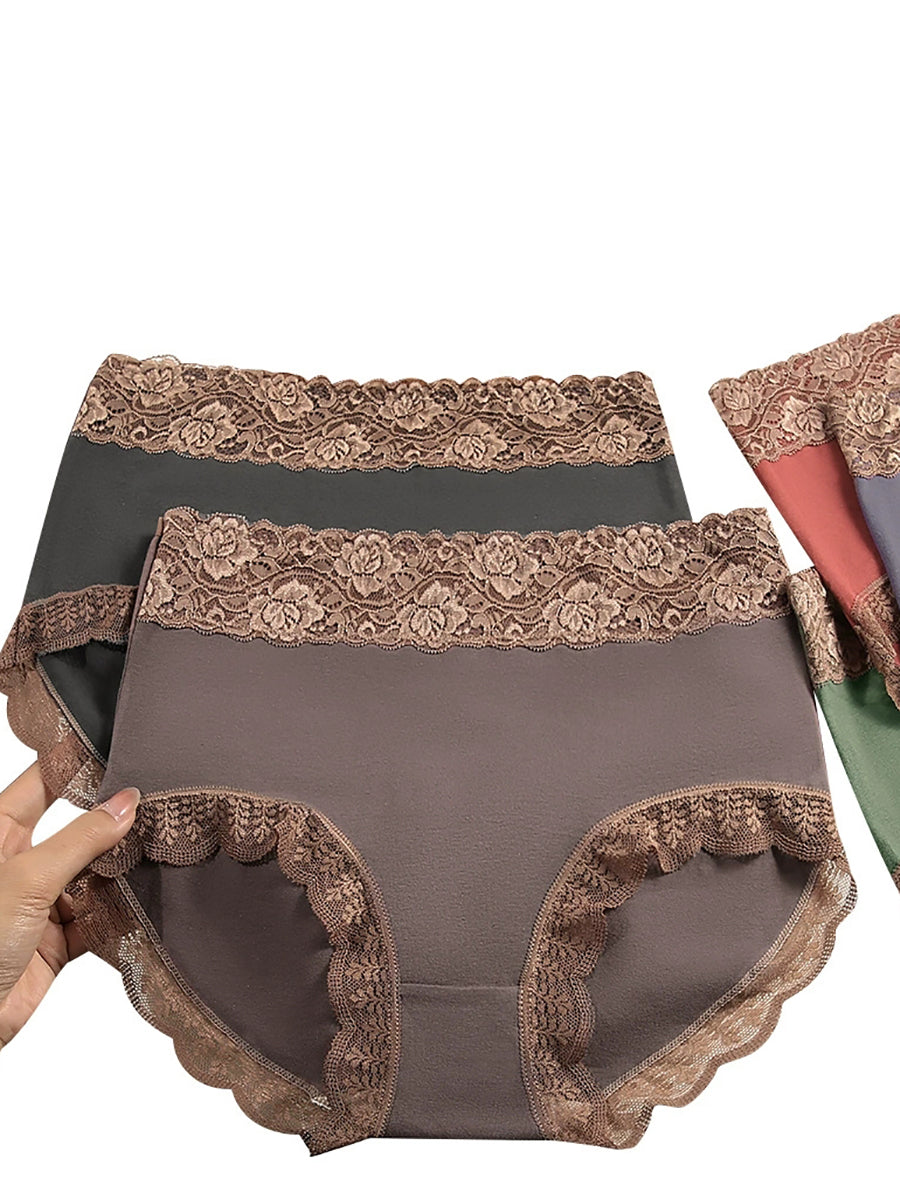 4 Pieces Women Artsy Lace Spliced High Waist Underwear