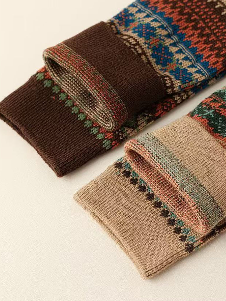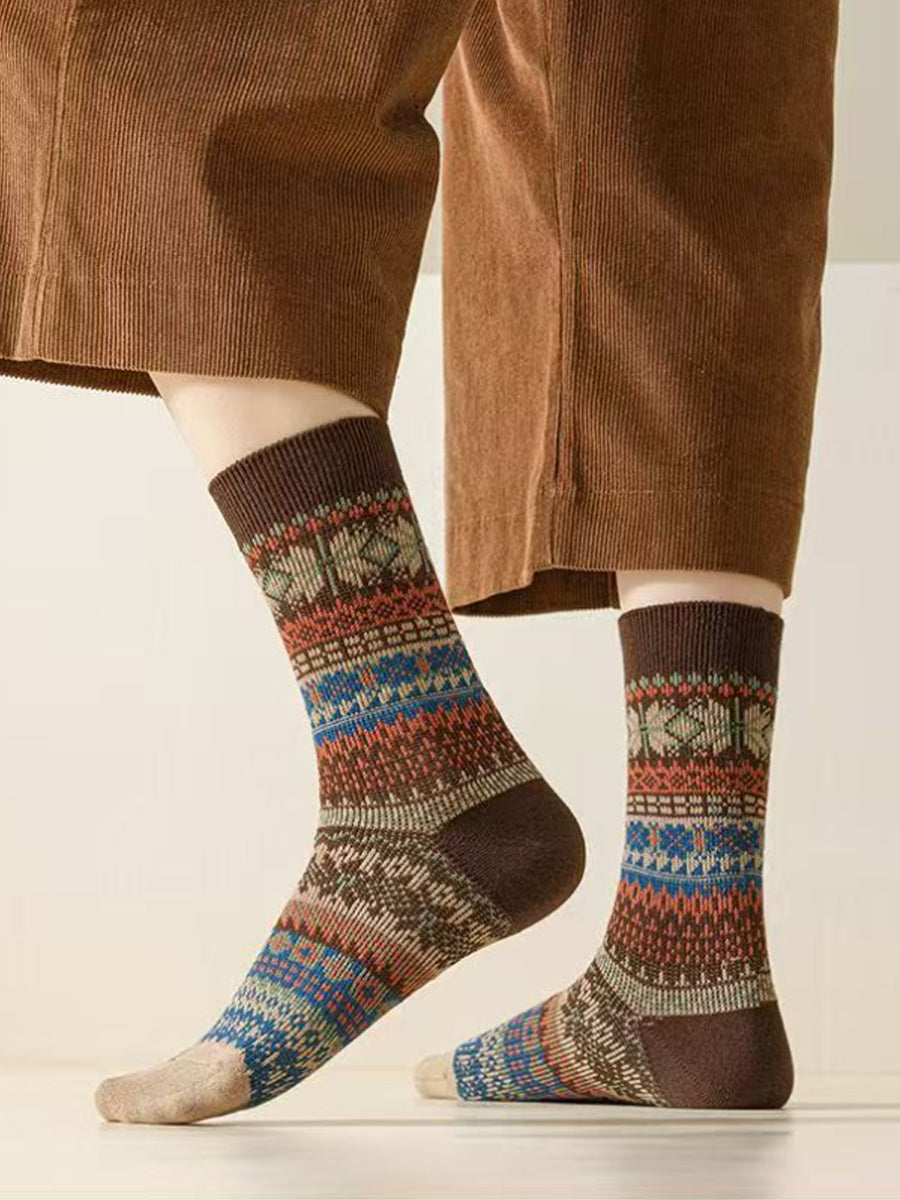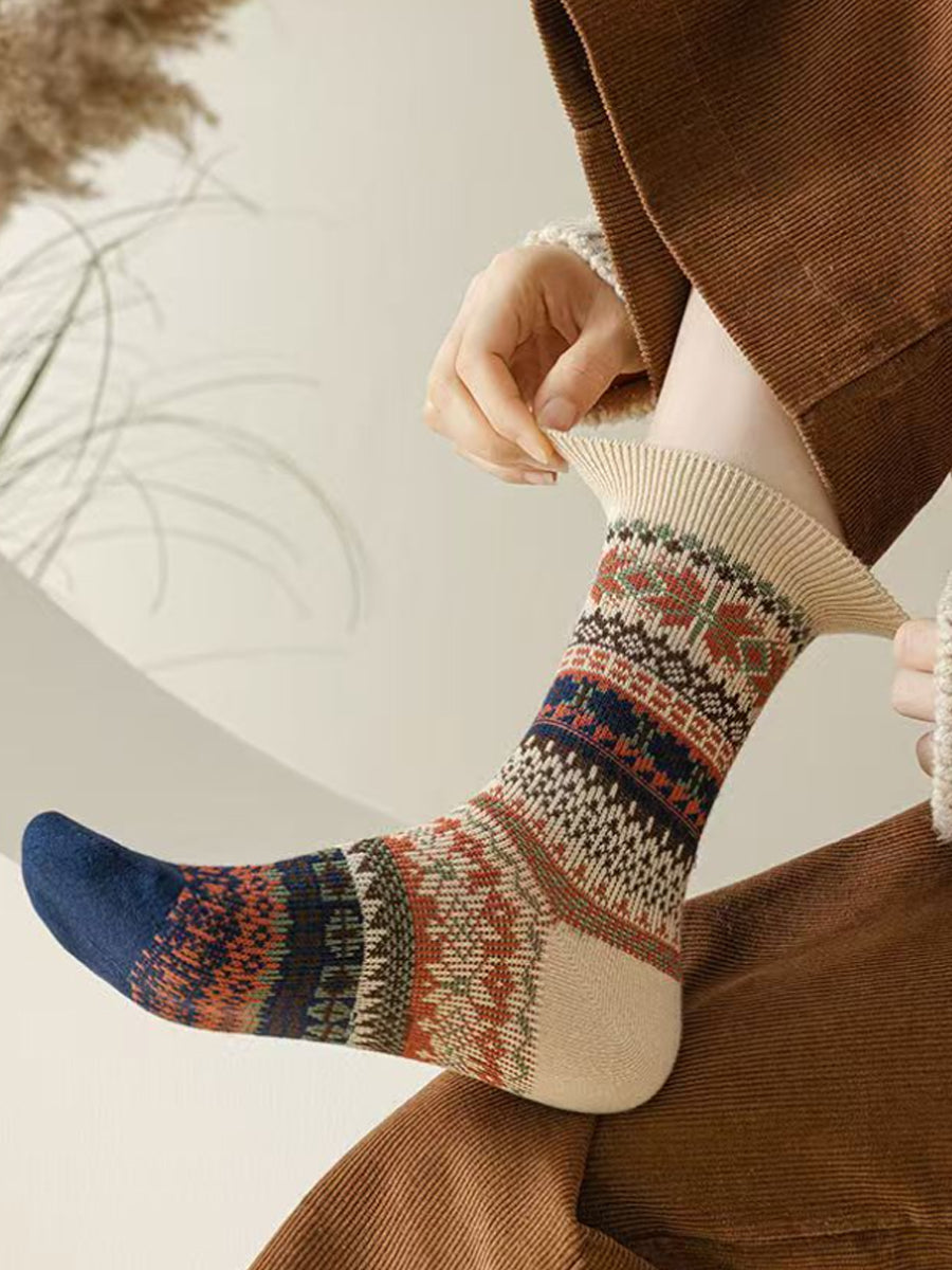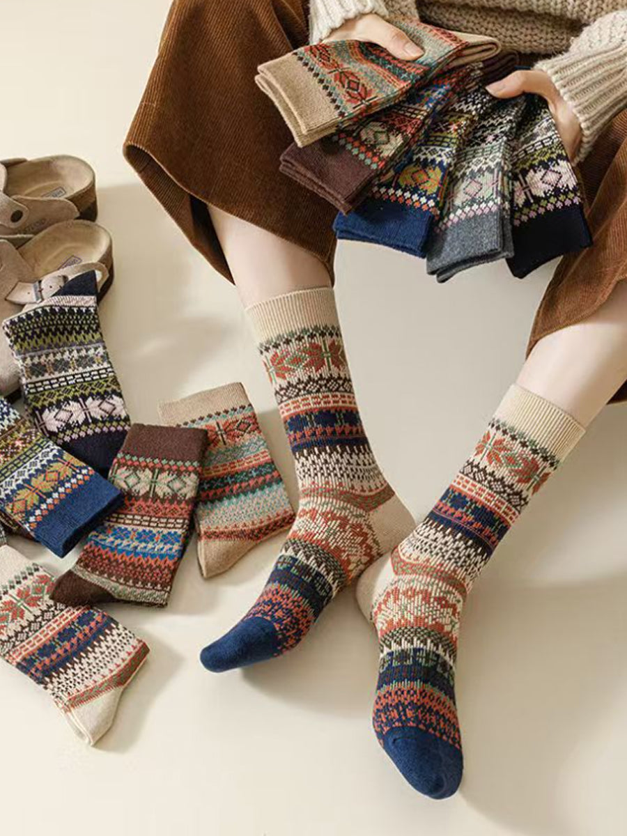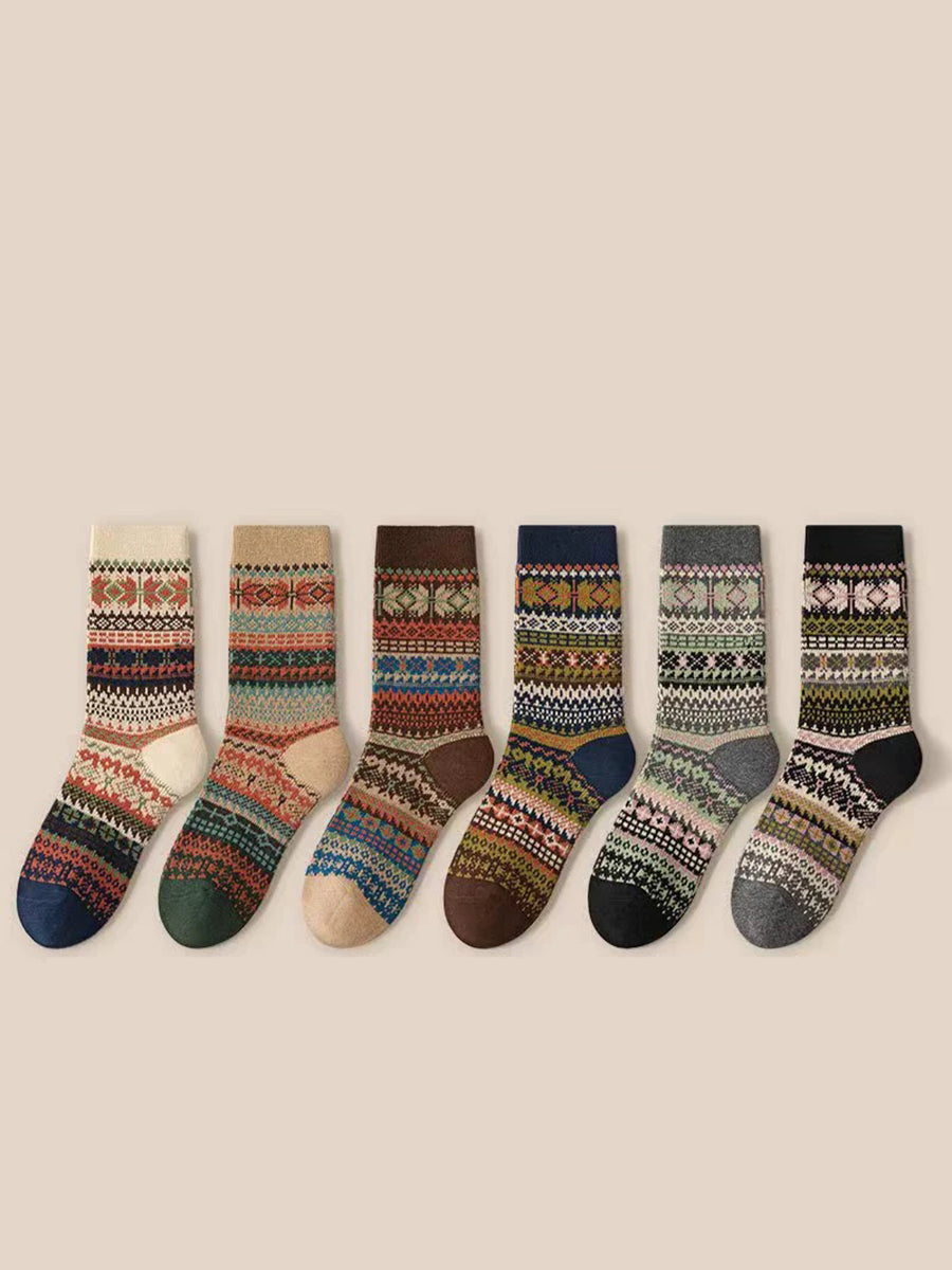 6 Pairs Women Vintage Winter Stripe Cotton Socks