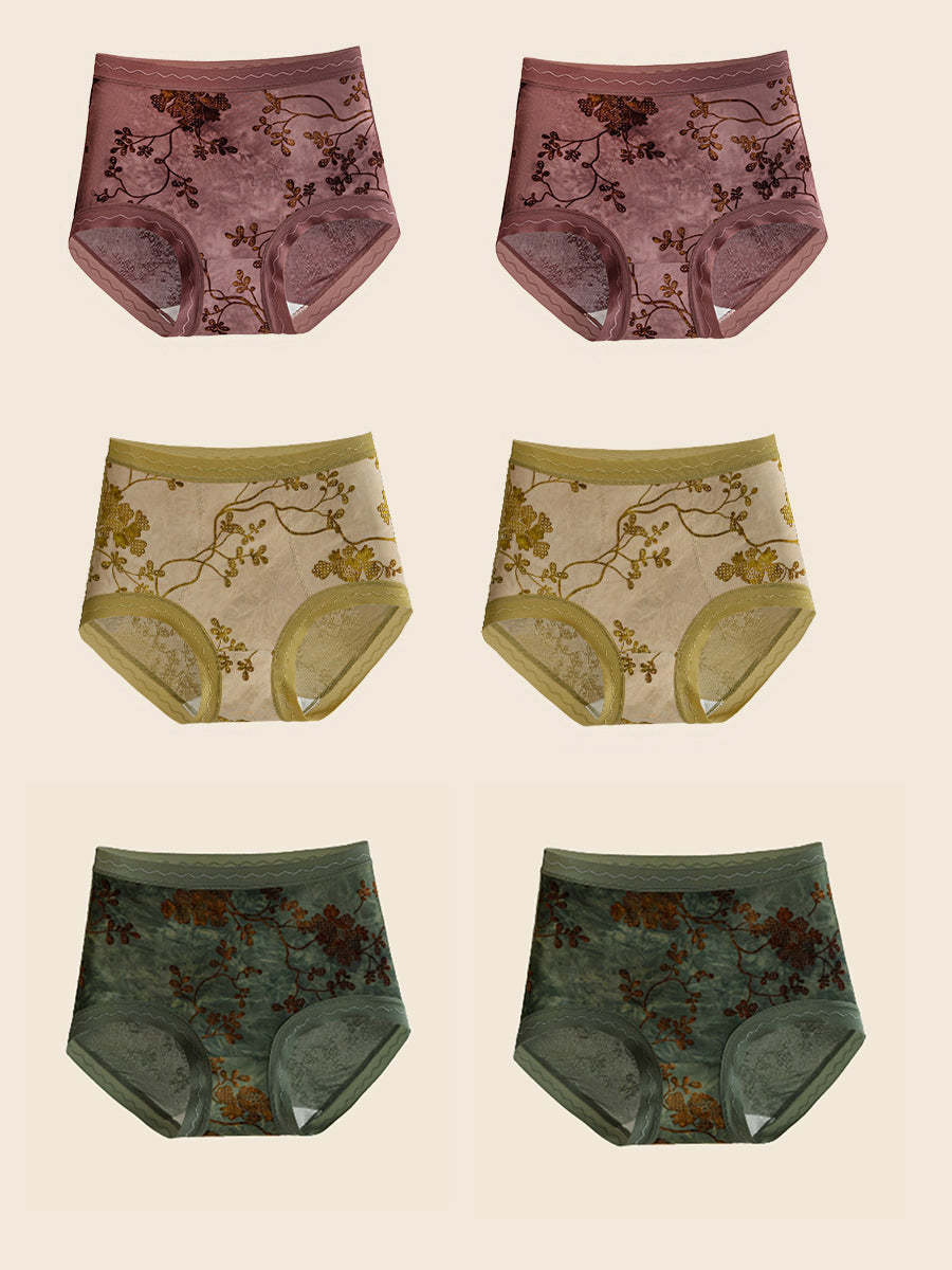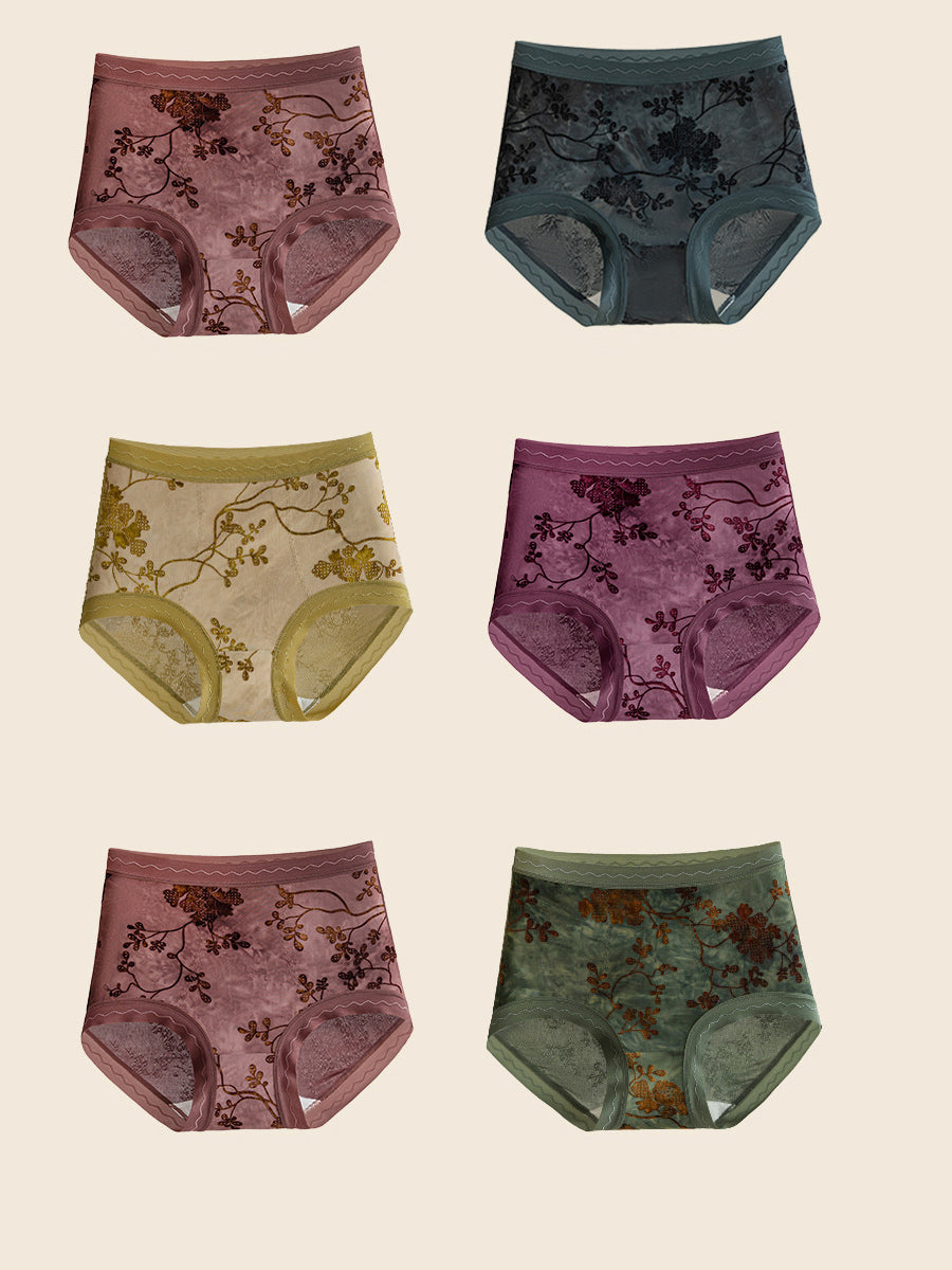 6 Pieces Women Flower Jacquard High Waist Underwear