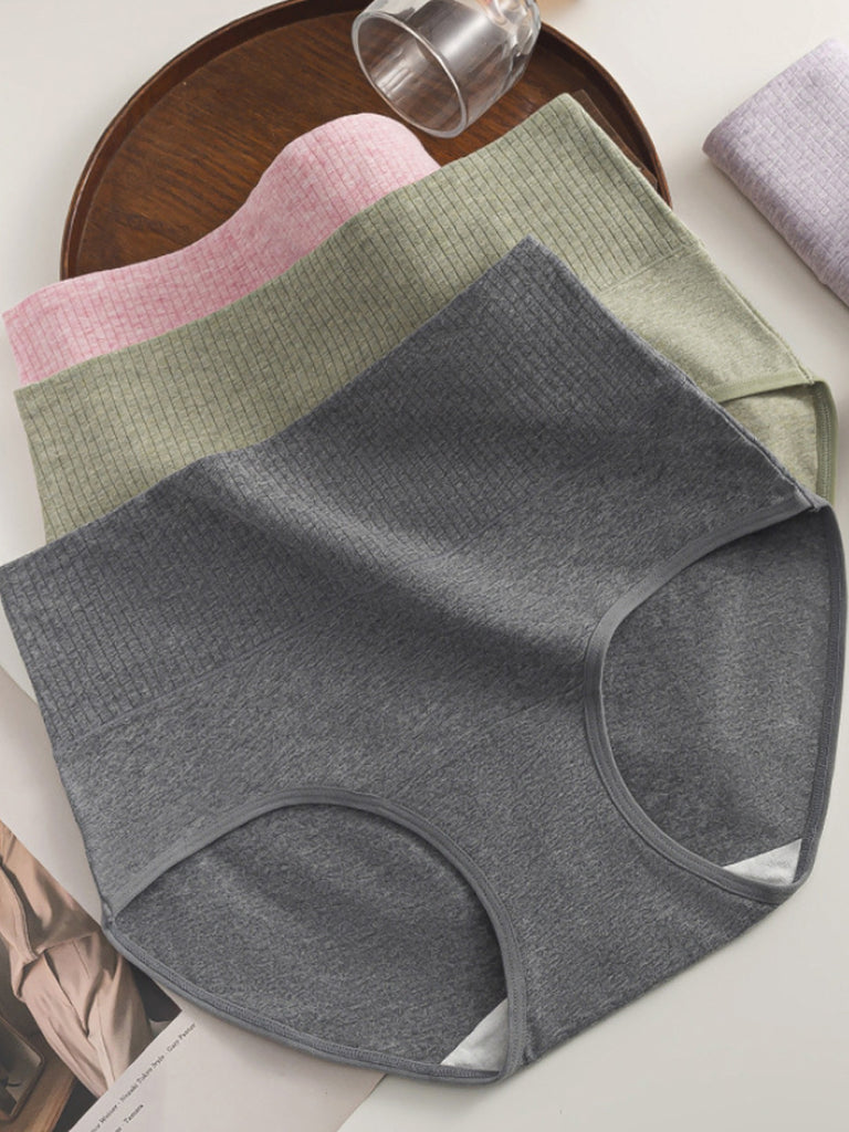 6 Pieces Women Winter Pure Color High Waist Underwear