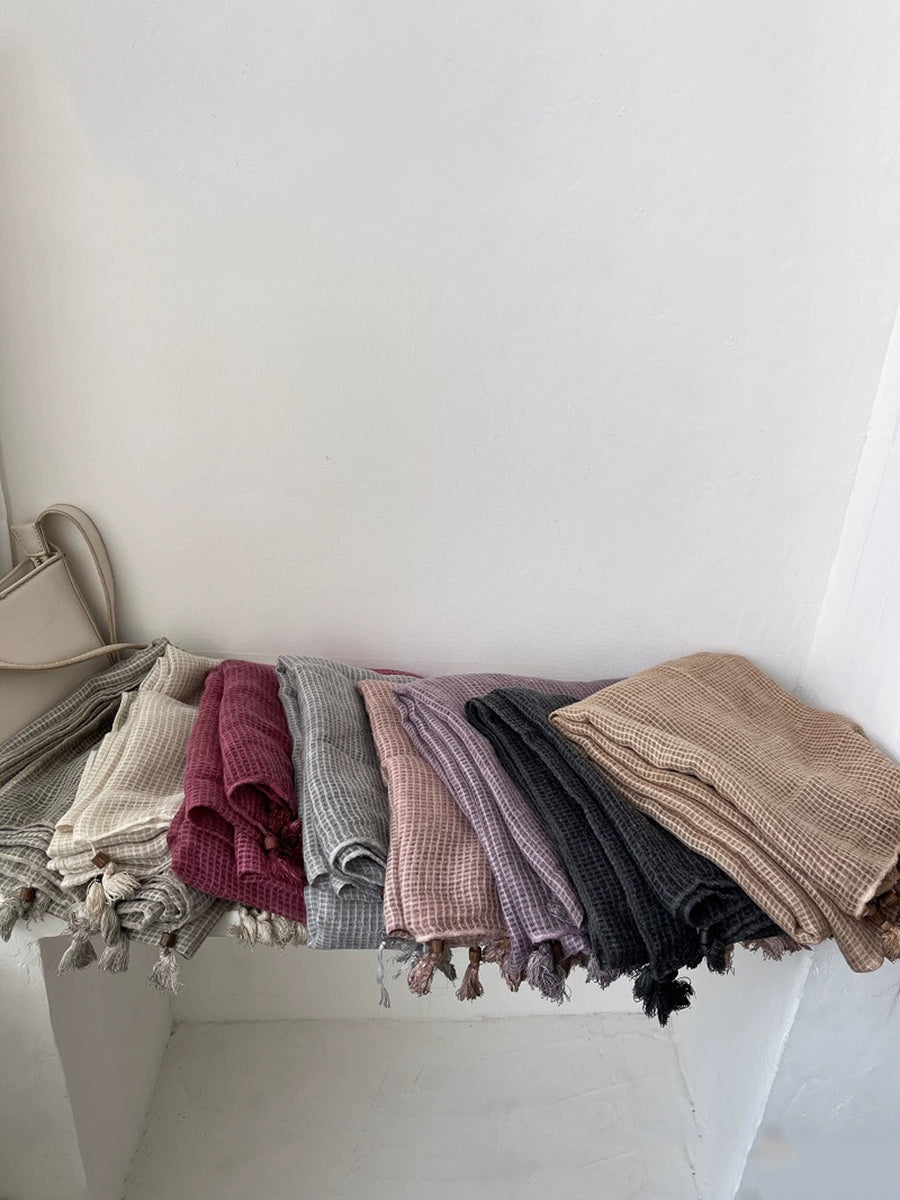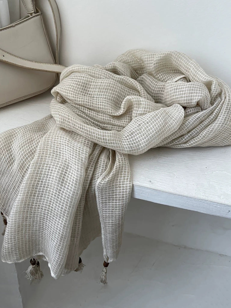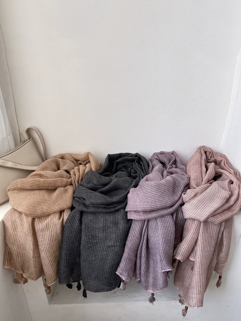 Artsy Plaid Cotton Tassel Shawl Scarf
