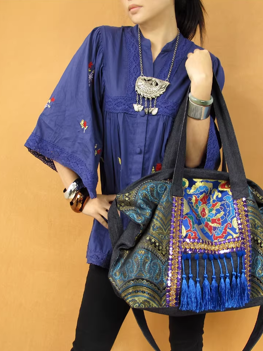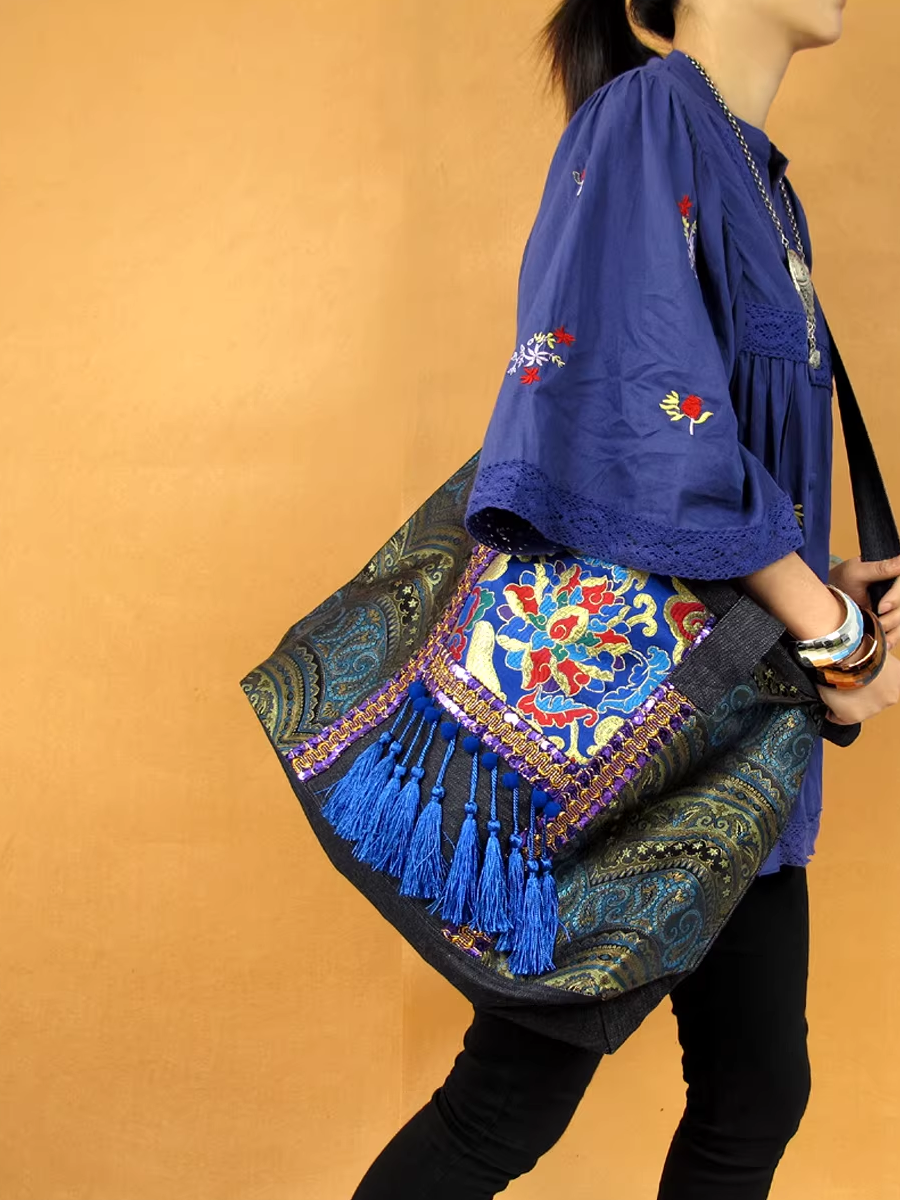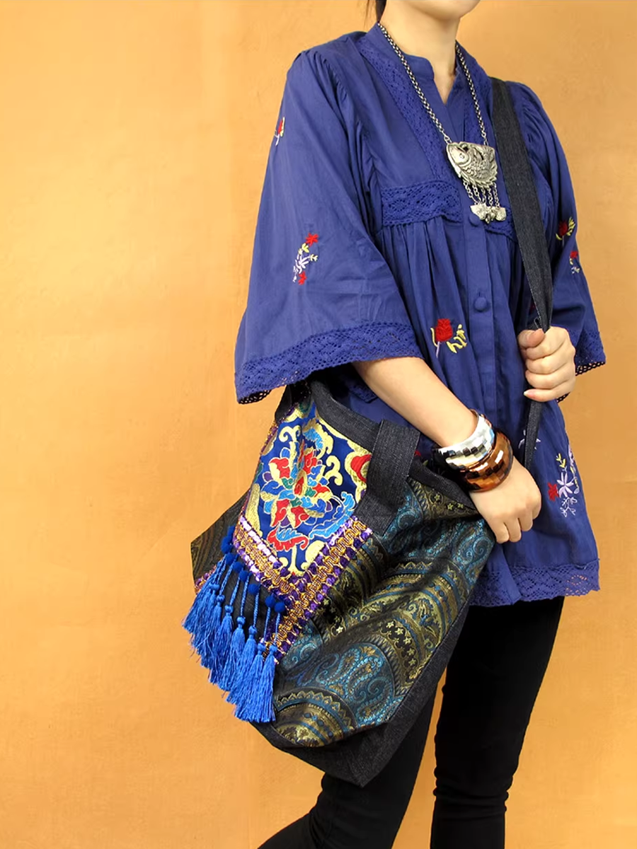 Ethnic Embroidered Tassel Shoulder Bag