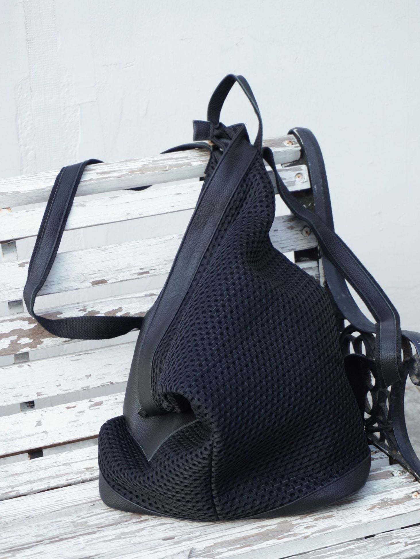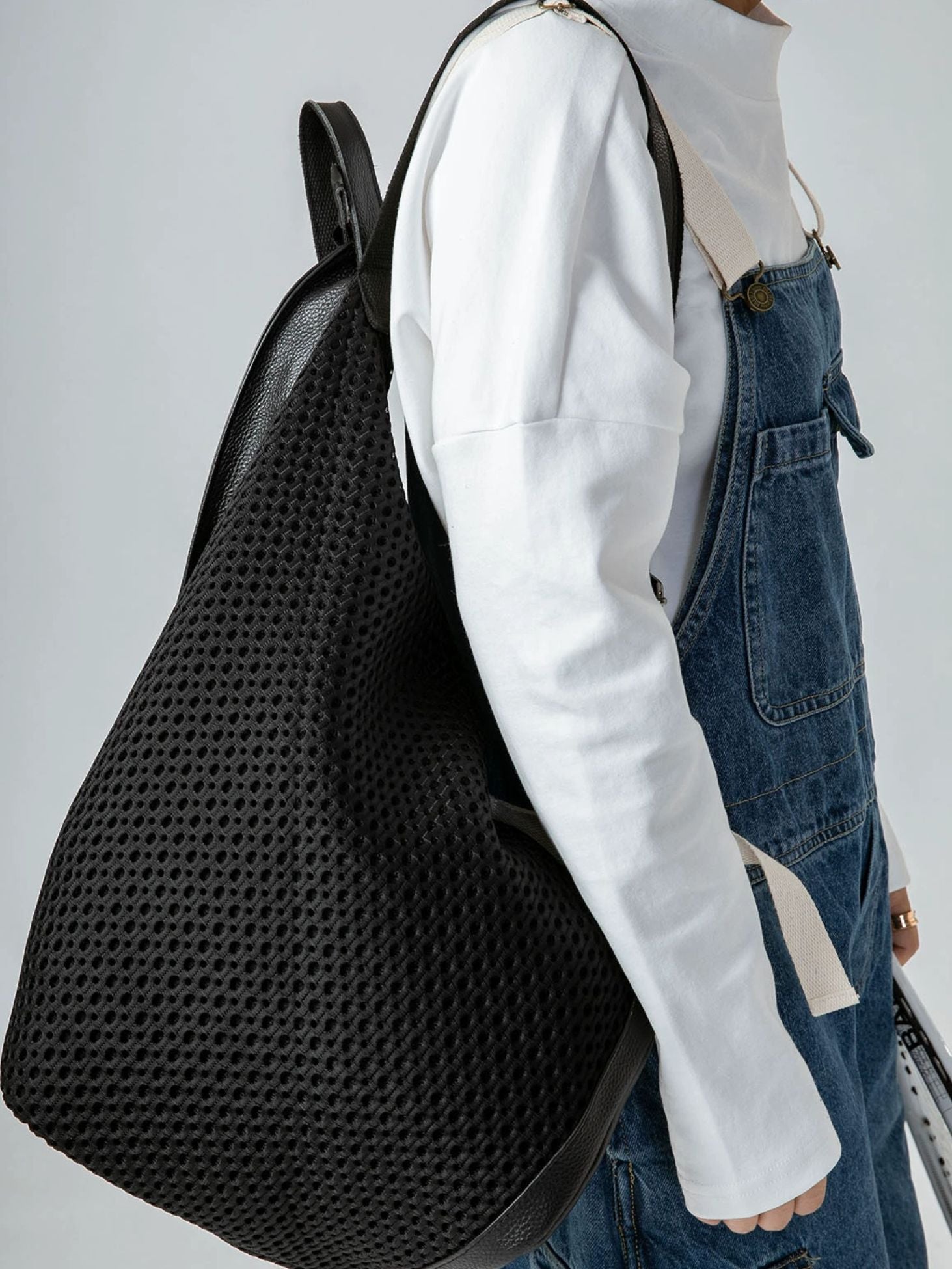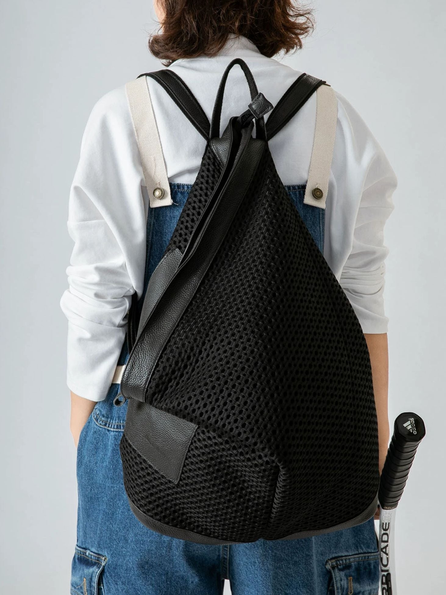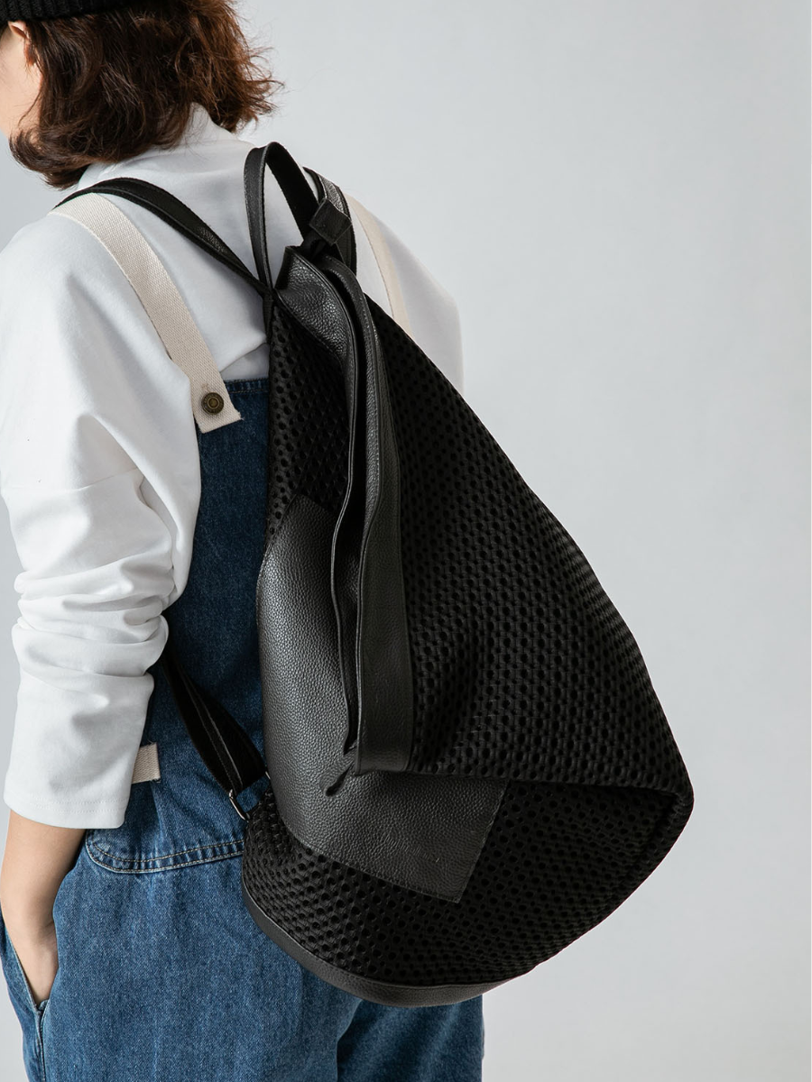 Modern Mesh Spliced Leather Backpack