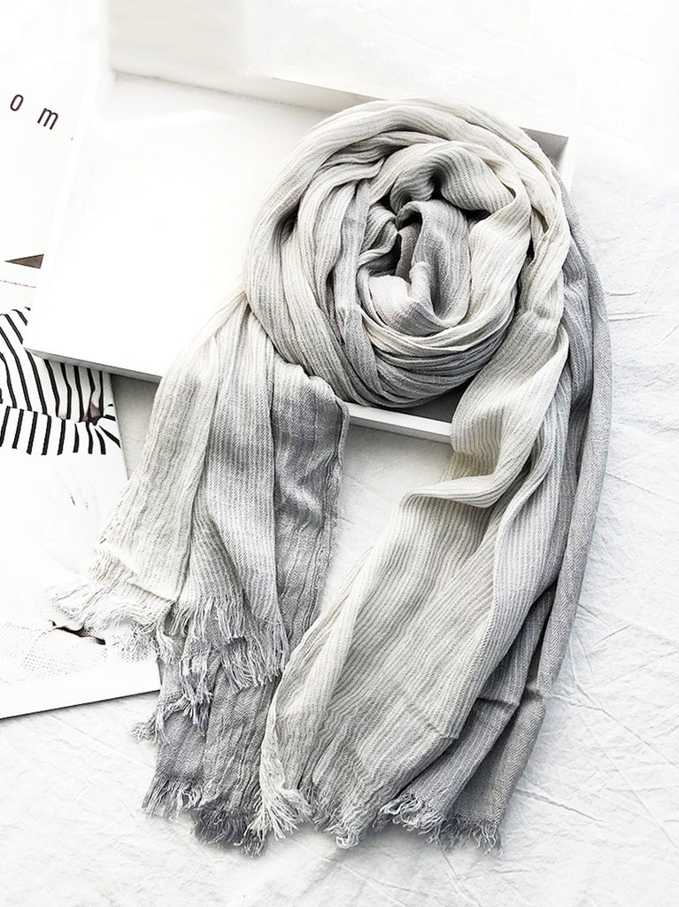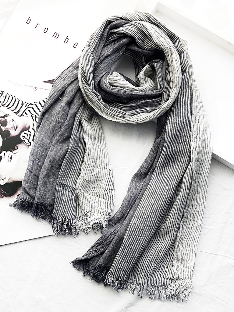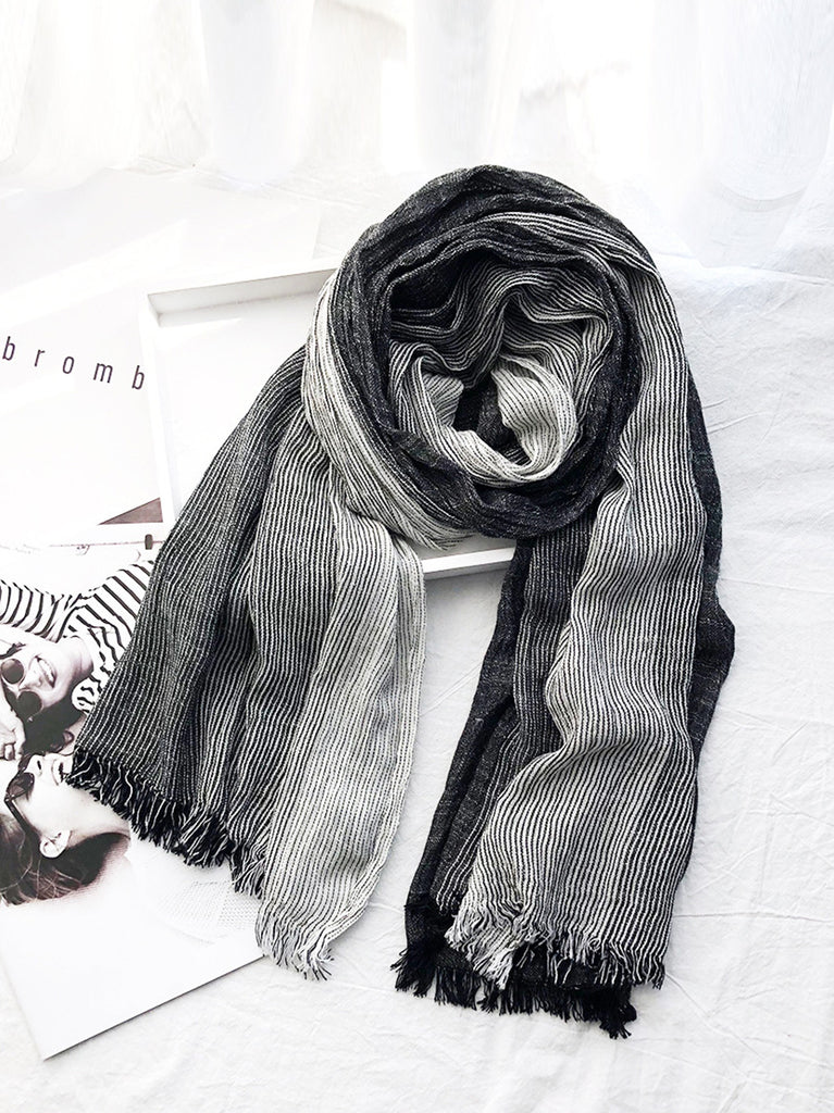 Spring Artsy Stripe Cotton Tassel Soft Scarf