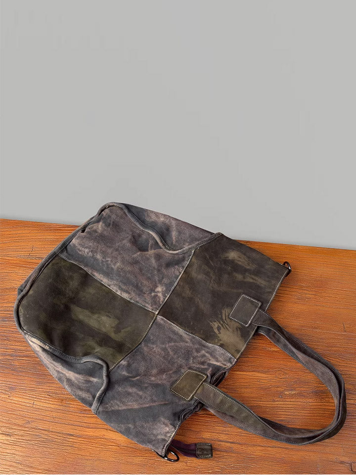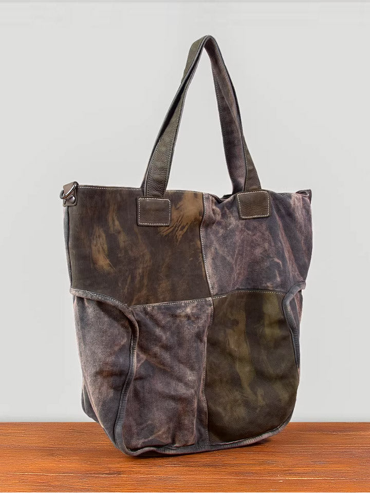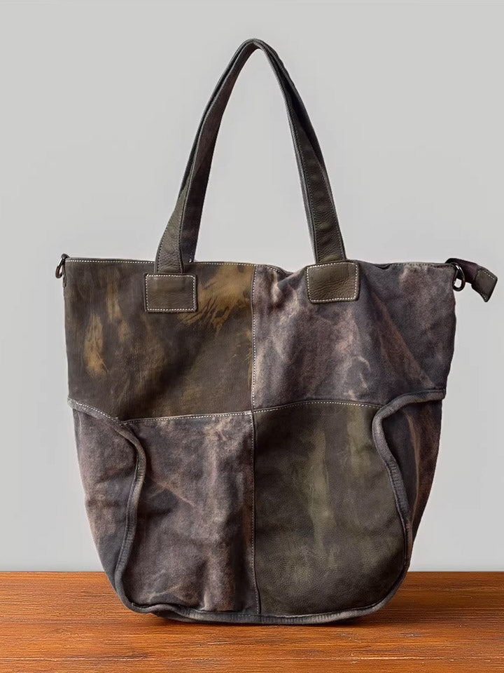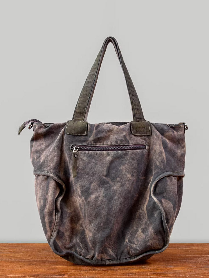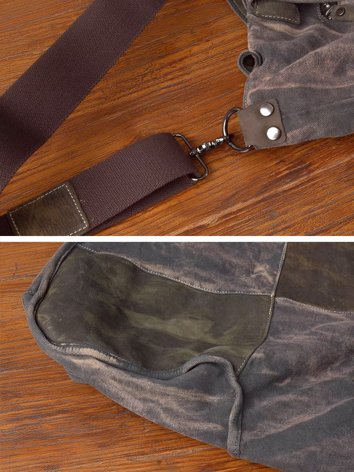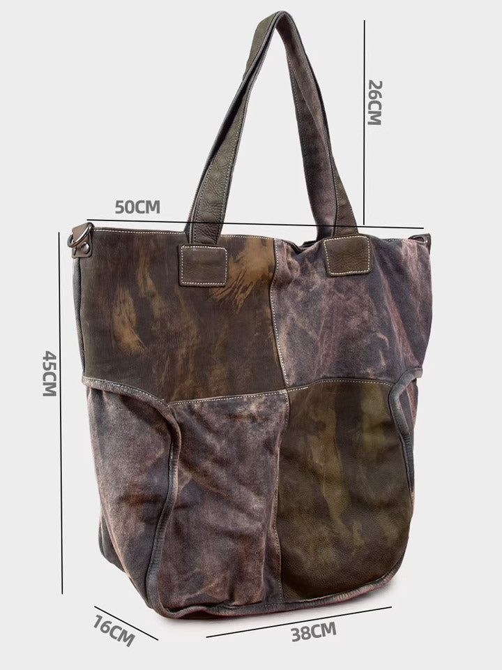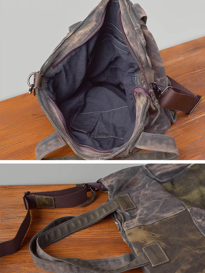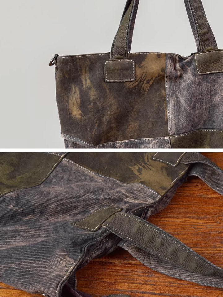 Vintage Canvas Spliced Leather Tote Bag