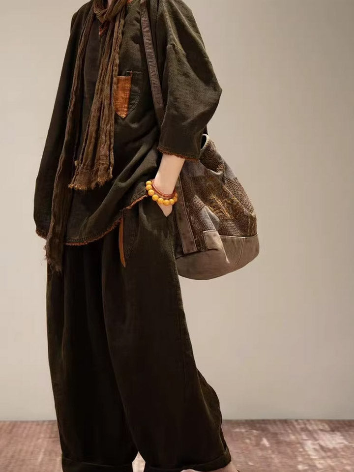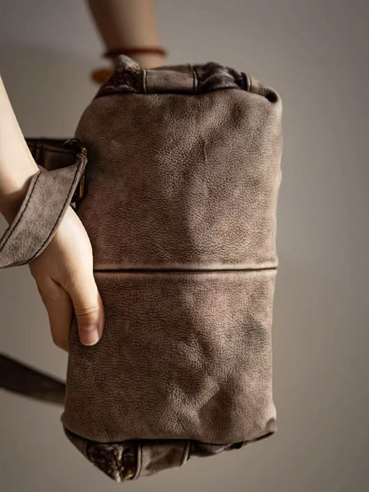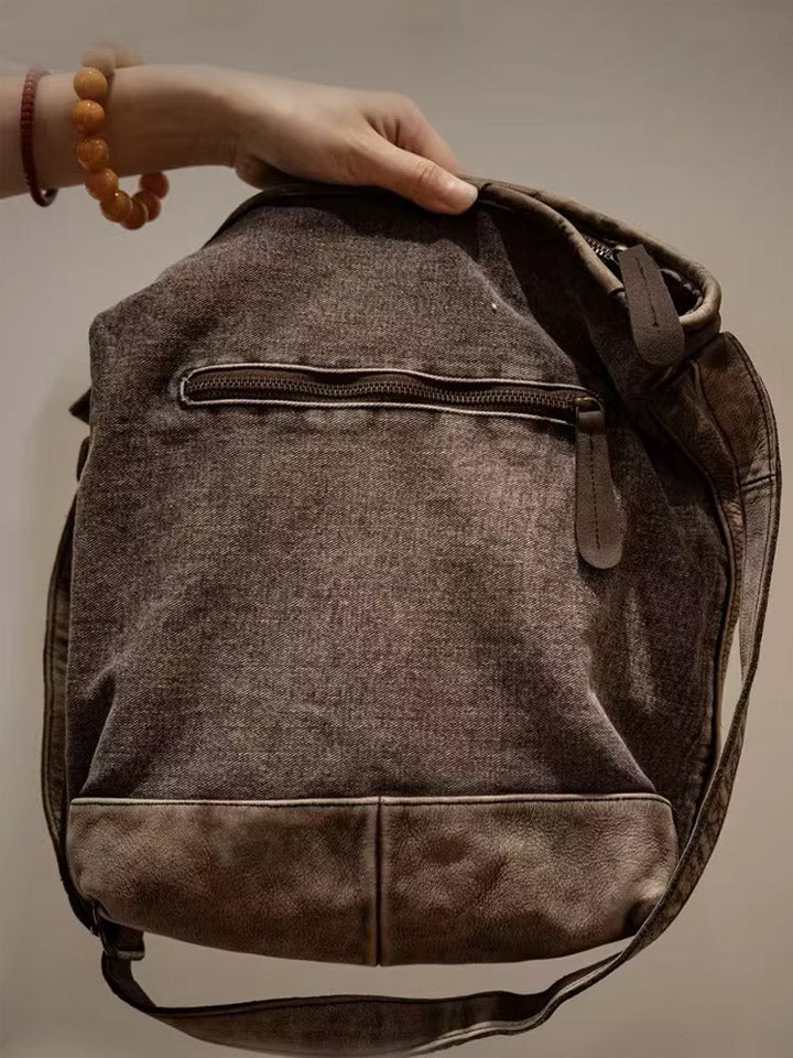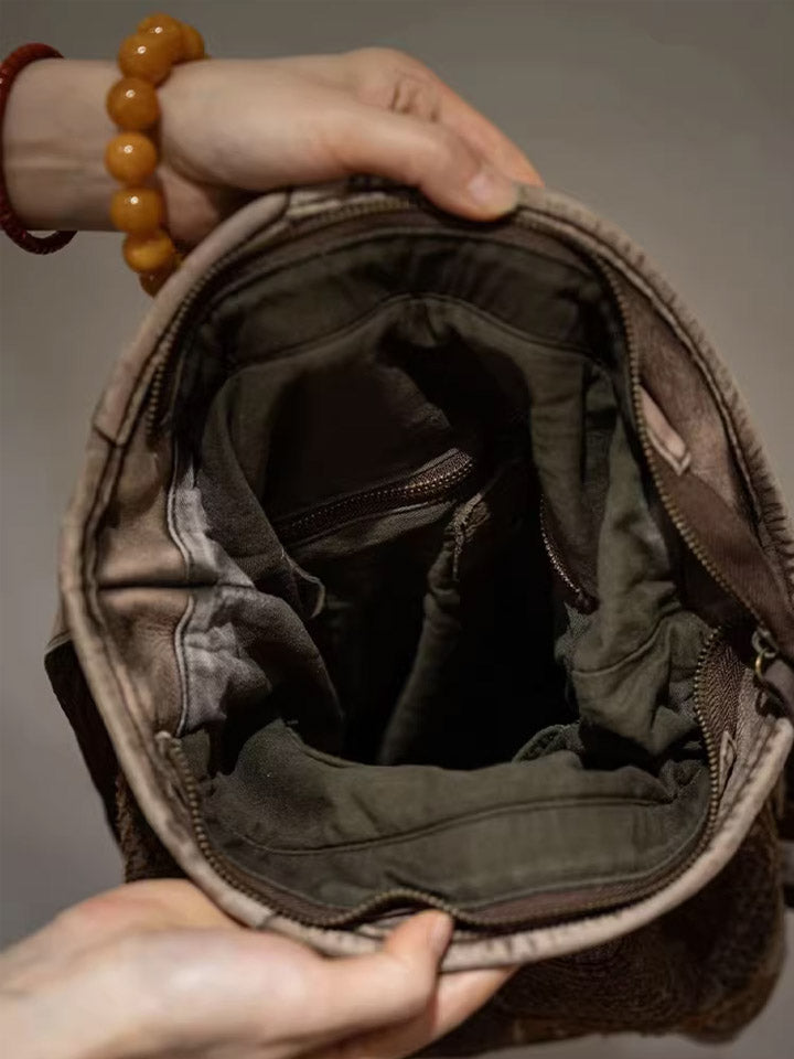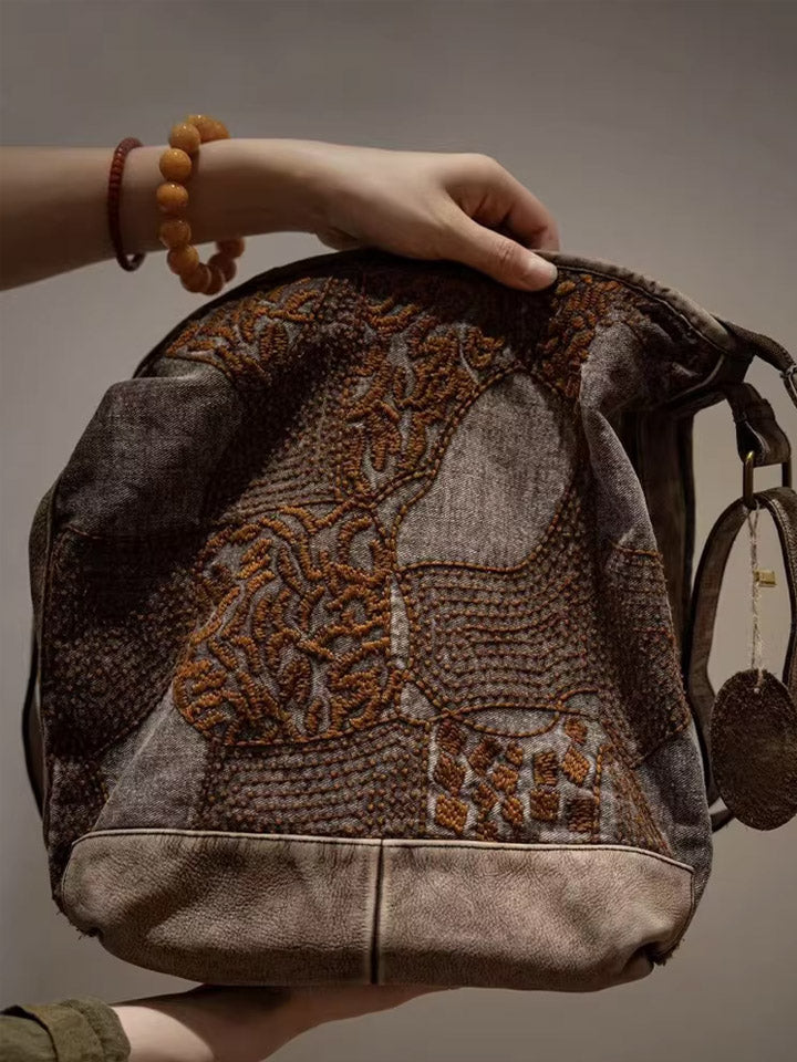 Vintage Embroidery Spliced Leather Crossbody Bag