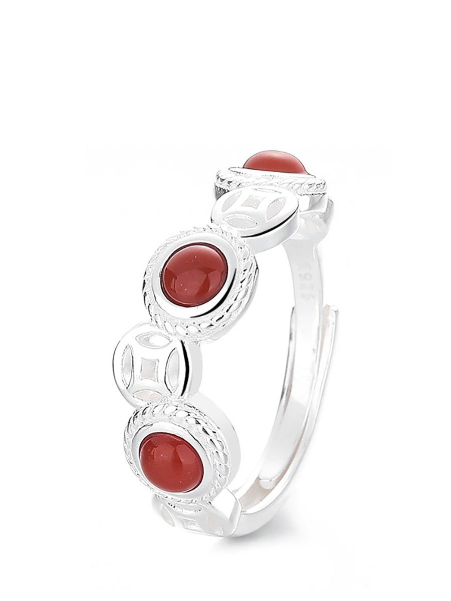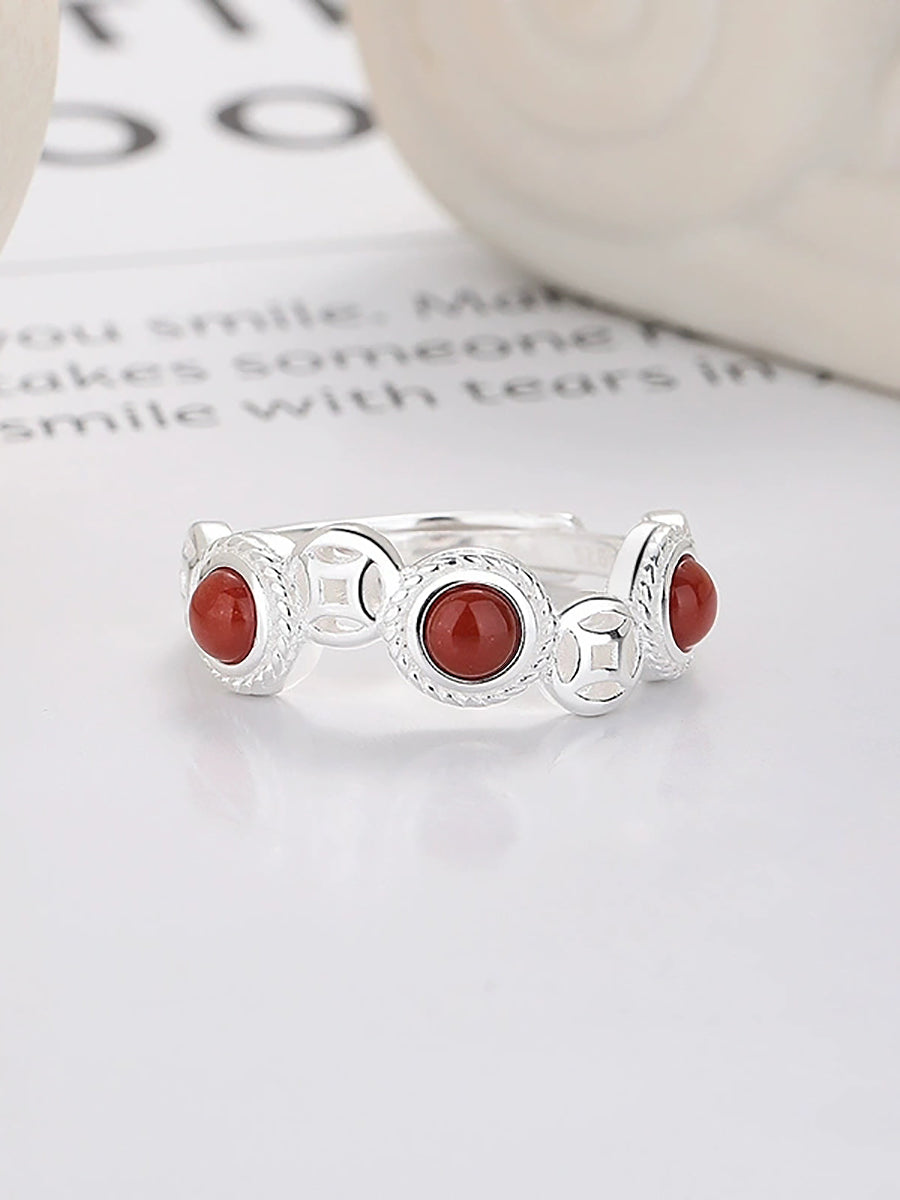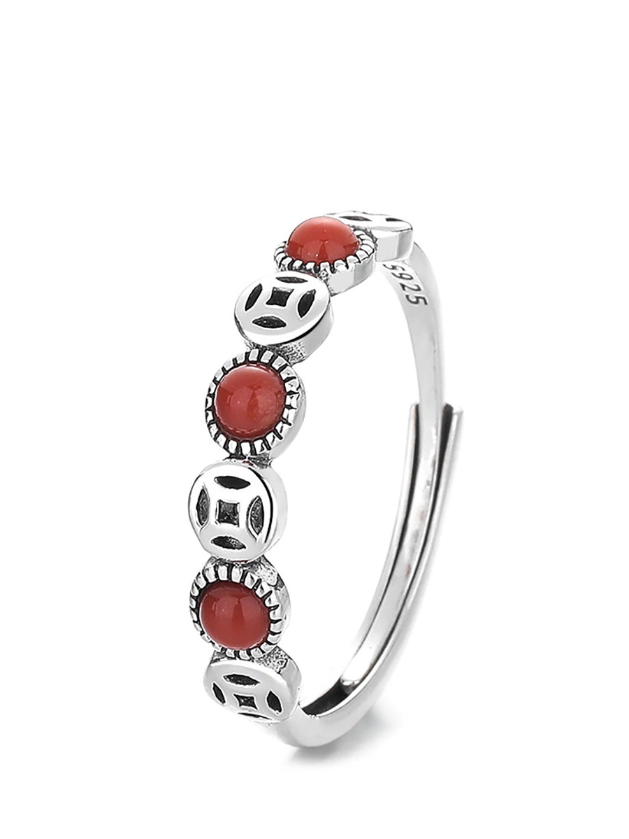 Vintage S925Silver Red Agate Adjustable Ring