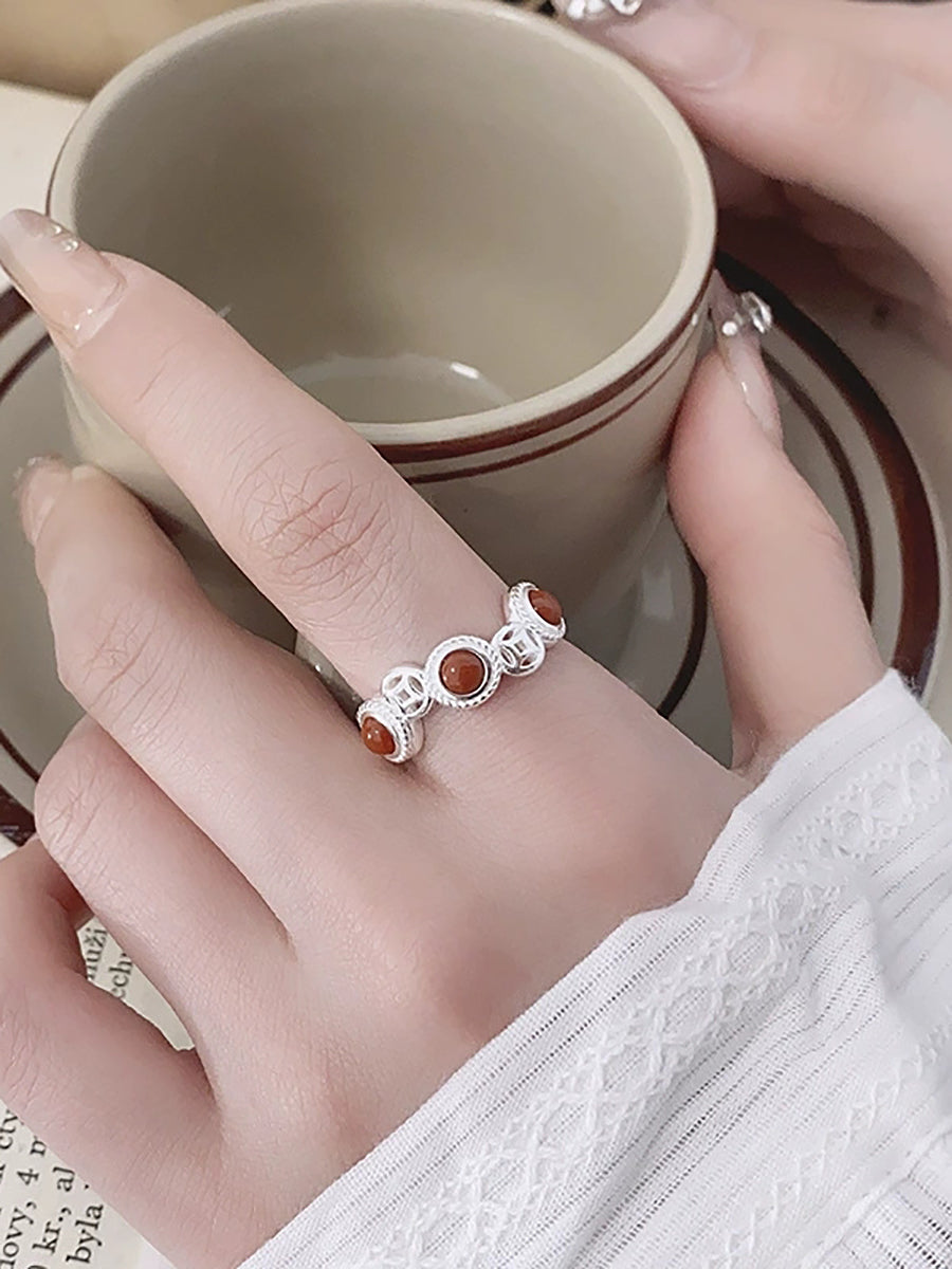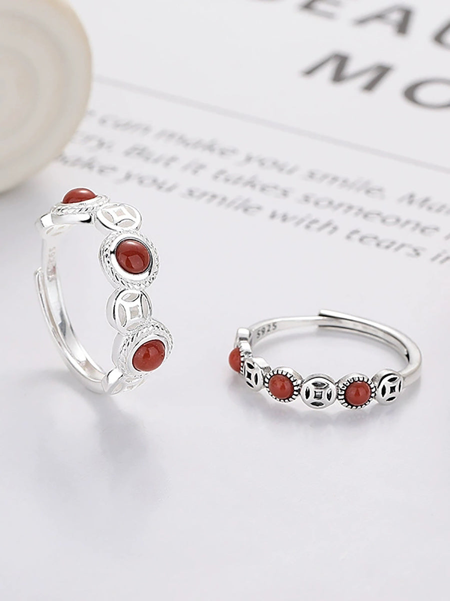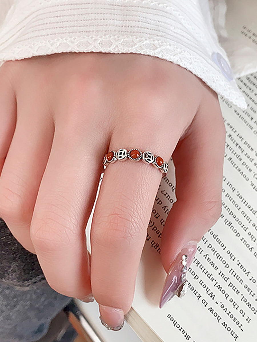 Vintage S925Silver Red Agate Adjustable Ring
