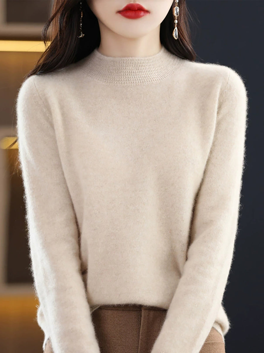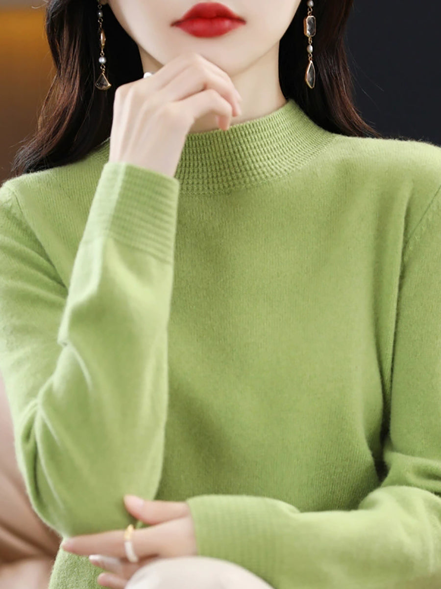 Women Artsy Spring Pure Color Half-Turtleneck Sweater