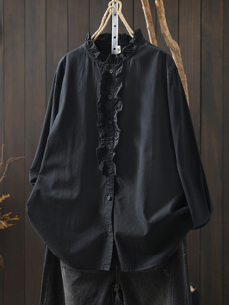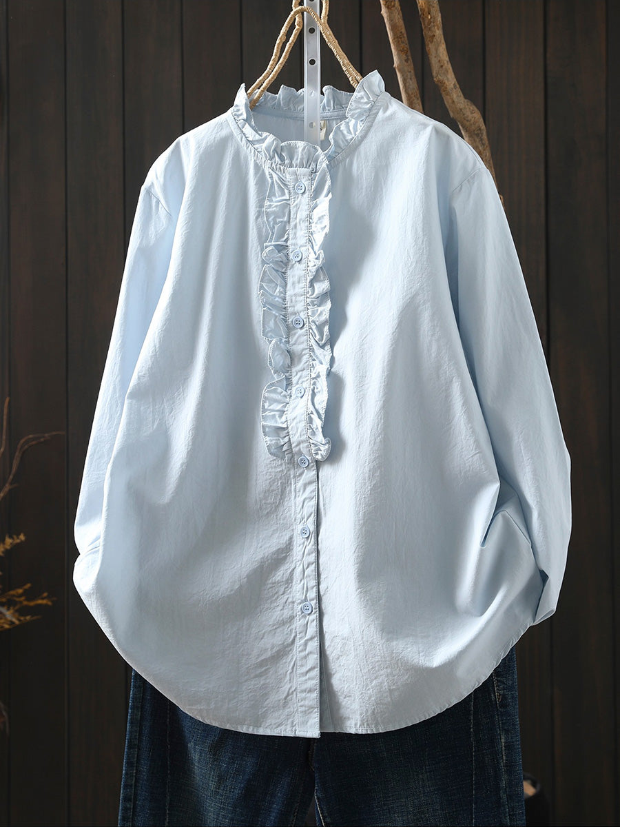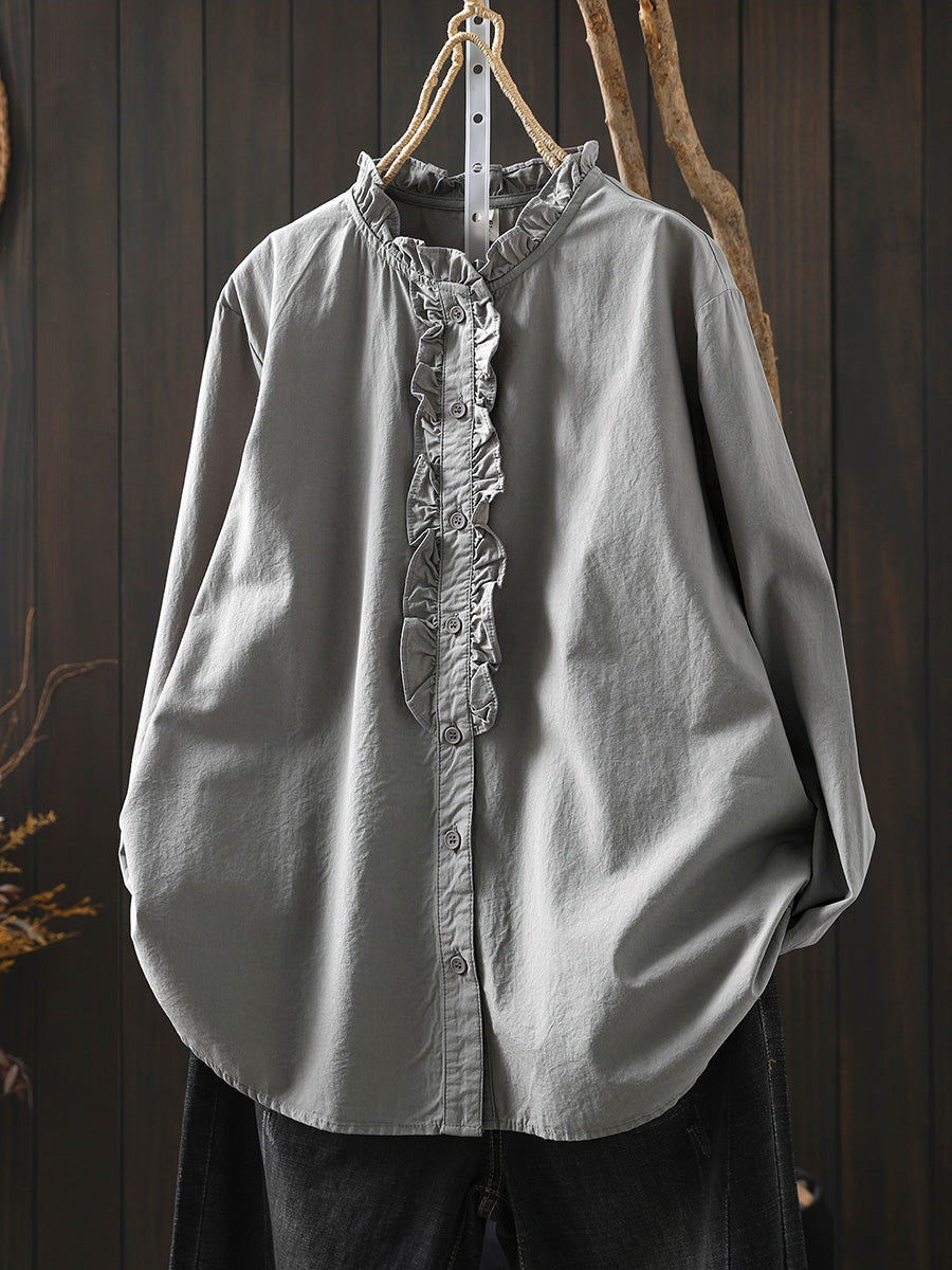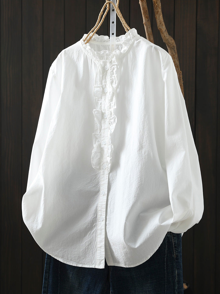 Women Artsy Spring Stand Collar 100%Cotton Shirt