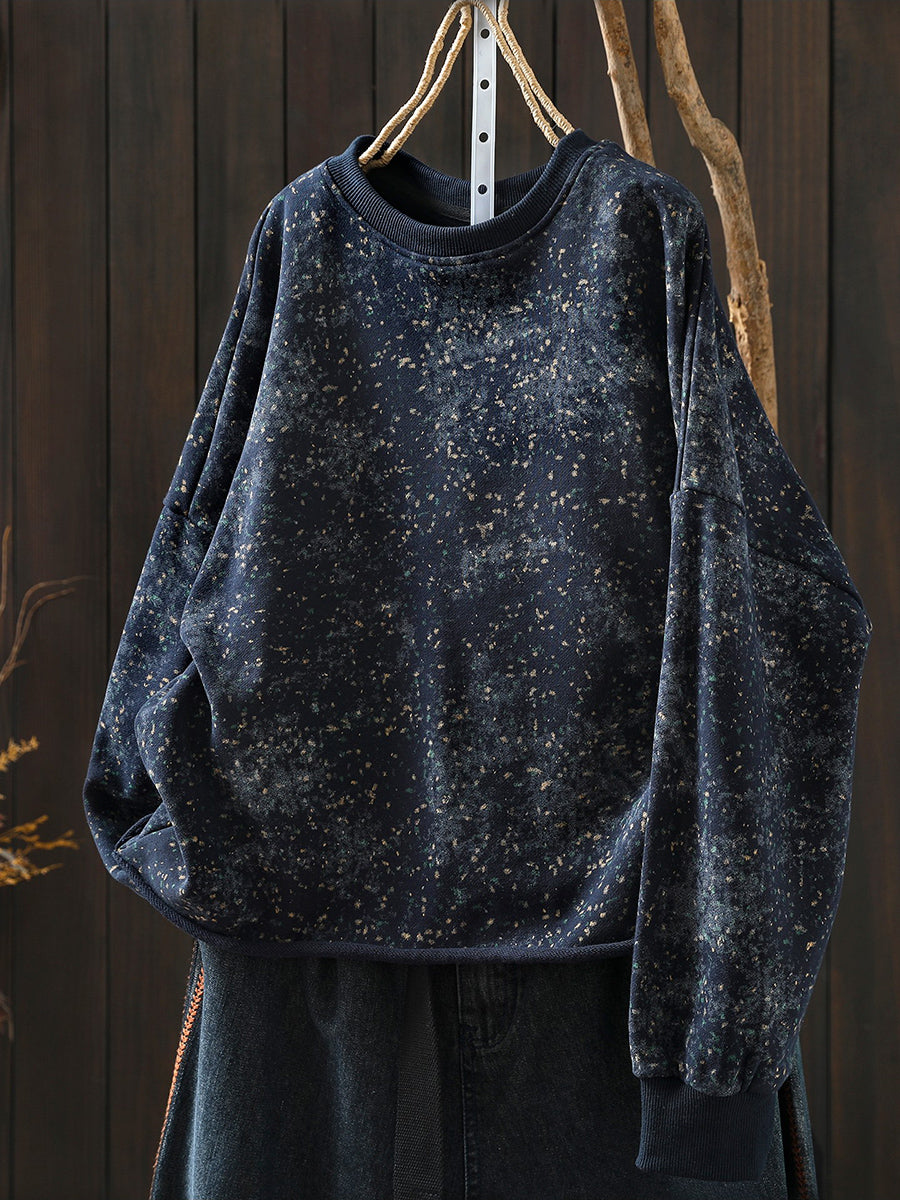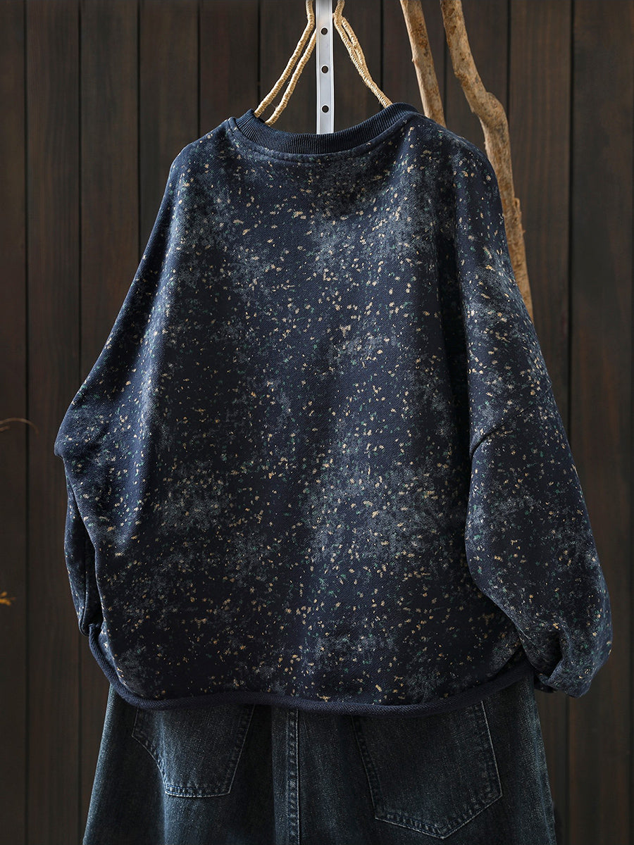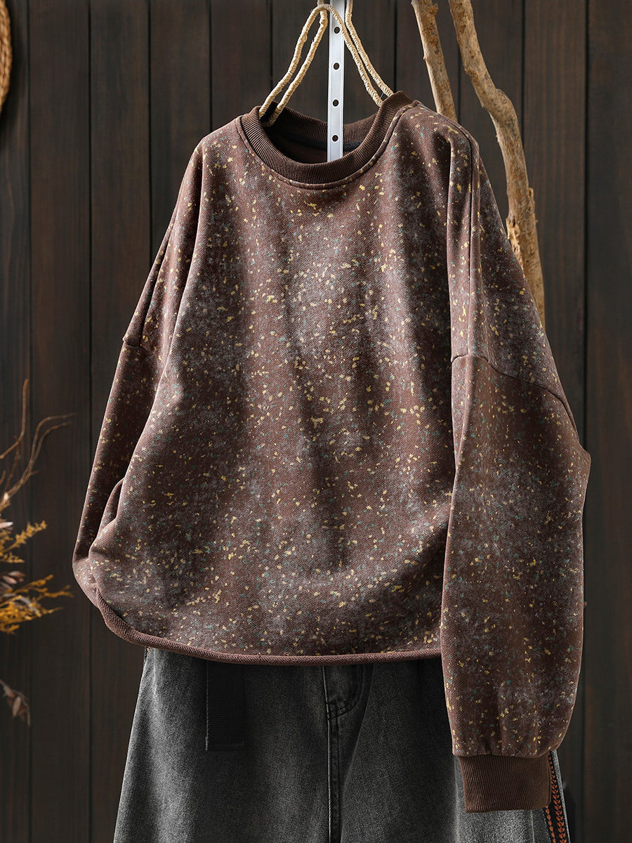 Women Artsy Spring Tie-dye 100%Cotton O-Neck Blouse