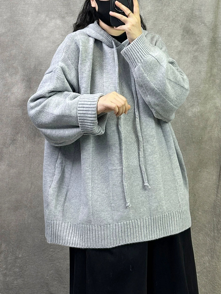 Women Autumn Artsy Pure Color Hooded Sweater