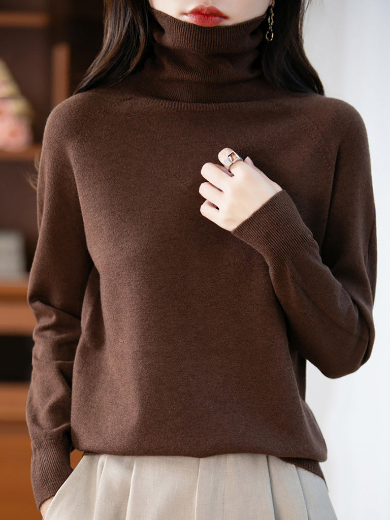 Women Autumn Artsy Pure Color Turtleneck Sweater